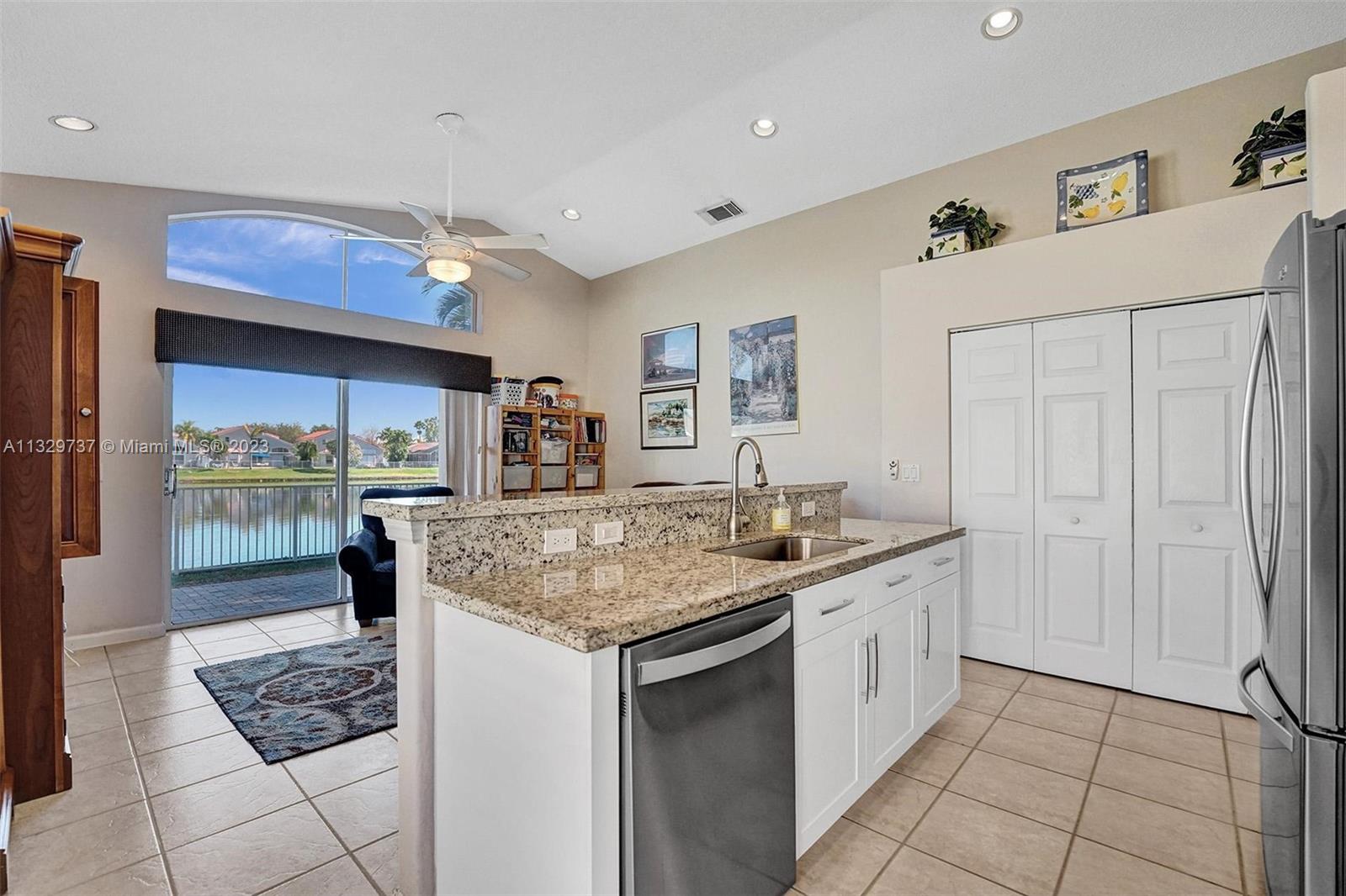 LOCATION...LOCATION...LOCATION! Stunning 3 bedroom 2 bathroom Redwood model, single-family home with 2 car garage located in a prime location on the lake, in the highly desirable community of OAKRIDGE! This neighborhood is centrally-located within minutes of all major highways, walking distance to houses of worship and shopping. Open and spacious floor plan with lots of windows, high ceilings and extra lighting! Tile floors in main living areas, remodeled kitchen with granite, new stainless appliances and incredible lake views! Exterior of house is recently painted. Inside laundry room. Same owner for more than 20 years. The community offers 24/7 guard gate security, tennis and basketball courts, and a kids playground. LOW HOA!! LOOK NO FURTHER, THIS HOME IS TURN-KEY AND A MUST SEE!!