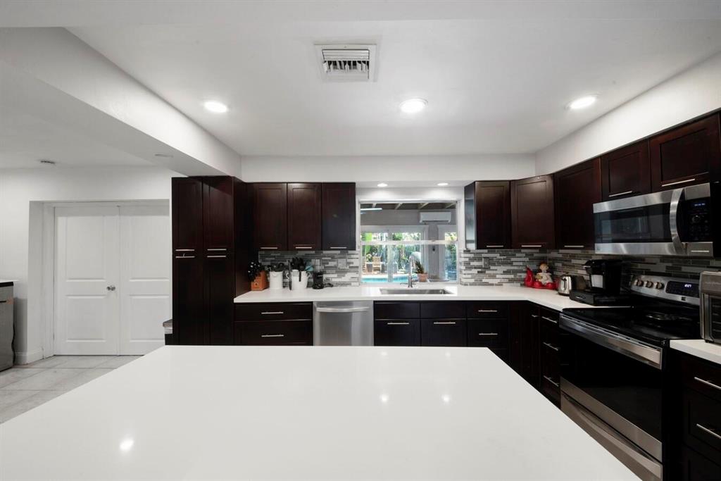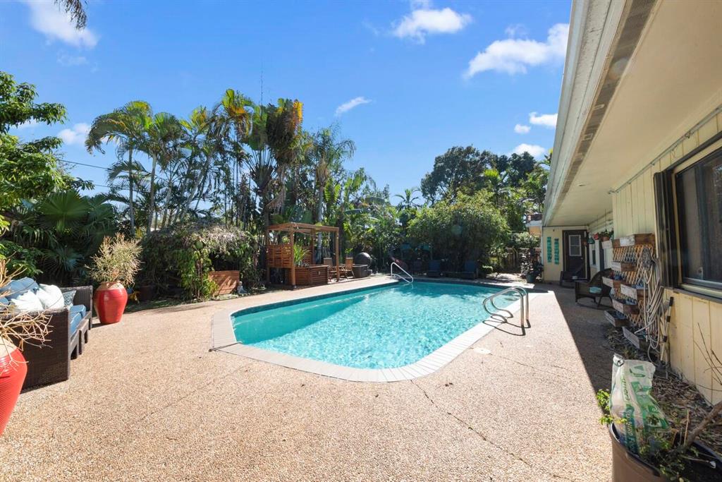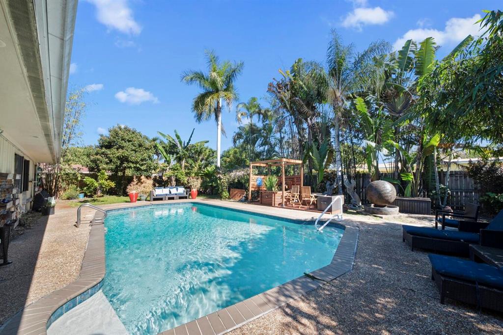 You will love this spectacular custom home with 5 bedrooms and 3 full baths. Updated dream kitchen features Quartz countertops, tiled backsplash, stainless steel appliances and a center island with a snack bar. Perfect floorplan to entertain with a living room, dining area, family room and a enclosed patio. This home boasts a new Generac generator, neutral flooring, high hat lighting, impact windows-accordion shutters and an abundance of natural light. Enjoy you own tropical paradise with a custom pool, Koi pond, fruit trees and lush tropical landscaping.