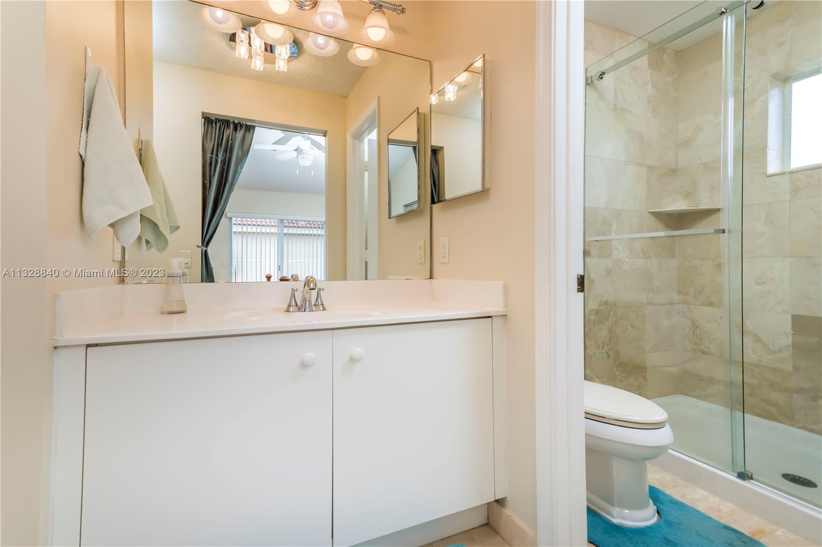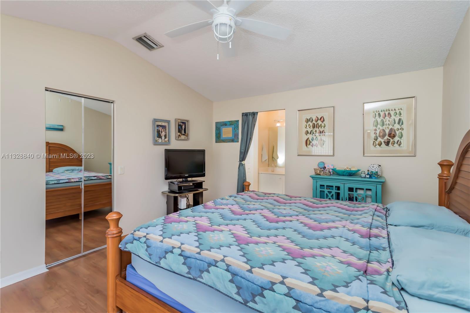 BRIGHT, OPEN FLOOR PLAN WITH VOLUME CEILINGS! KITCHEN FEATURES GRANITE COUNTERTOPS, STAINLESS STEEL APPLIANCES & UNDERMOUNT SINK WITH S/S FAUCET. FRESHLY PAINTED IN ALL MAIN ROOMS. TRAVERTINE FLOORS THROUGHOUT LIVING AREAS & WOOD FLOORS IN ALL BEDROOMS. CLOSETS ARE PROFESSIONALLY ORGANIZED. NEW SHOWER DOOR & MARBLE SHOWER WALLS IN PRIMARY BATH. FULLY FENCED YARD & ACCORDION SHUTTERS FOR EXTRA PROTECTION. 24 HOUR GATED COMMUNITY WITH CLUBHOUSE, SNACK CAFE, RESORT STYLE POOL, HEATED LAP POOL, KIDS WATERPARK, BASKETBALL COURT, HOCKEY RINK, MINI GOLF, SOCCER FIELD & MORE!