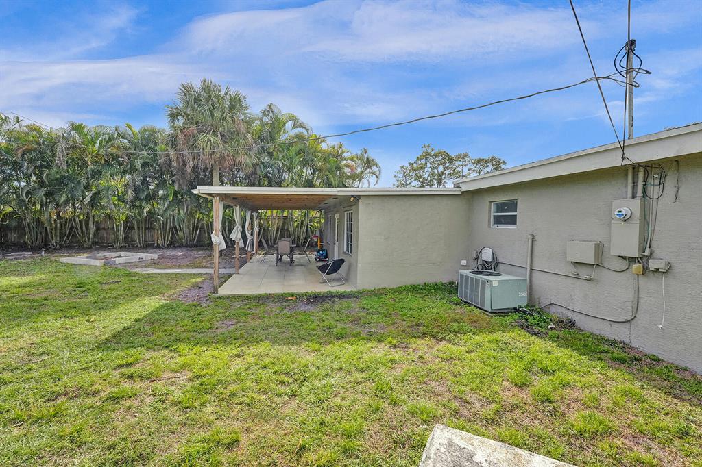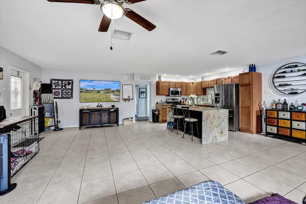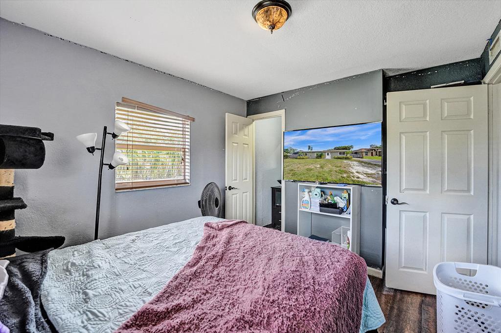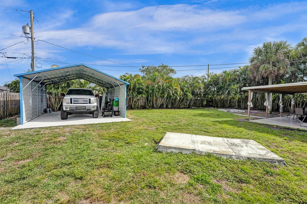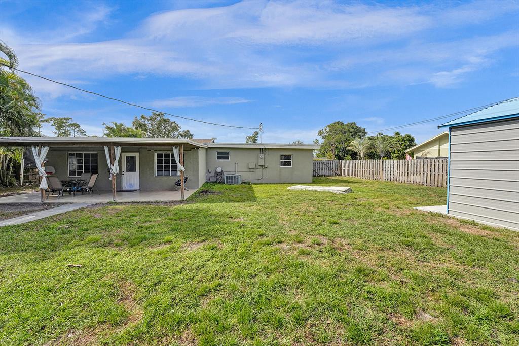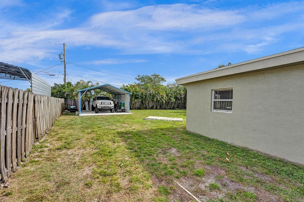Charming property on a quiet, dead end road surrounded by newly constructed homes. Roof is 7 years old, and window Hurricane shutters included. Lots of privacy, fully fenced in back yard! Property sits on just under 1/4 acre. Wood laminate flooring in bedrooms and hallway and tile throughout kitchen and living room.Huge Galvanized metal carport on concrete slab in the back yard perfect for a car/truck/boat. Fire Pit. Covered patio. Both sides of wooden gate open allowing for additional parking on both sides of the property with plenty of room for a Boat 4x4, Buggy, or trailers. Fully updated kitchen lots of storage space and beautiful granite countertops with waterfall effect. Freshly painted interior. Open concept floor plan in the living/kitchen/dining area. Best of all, NO HOA!