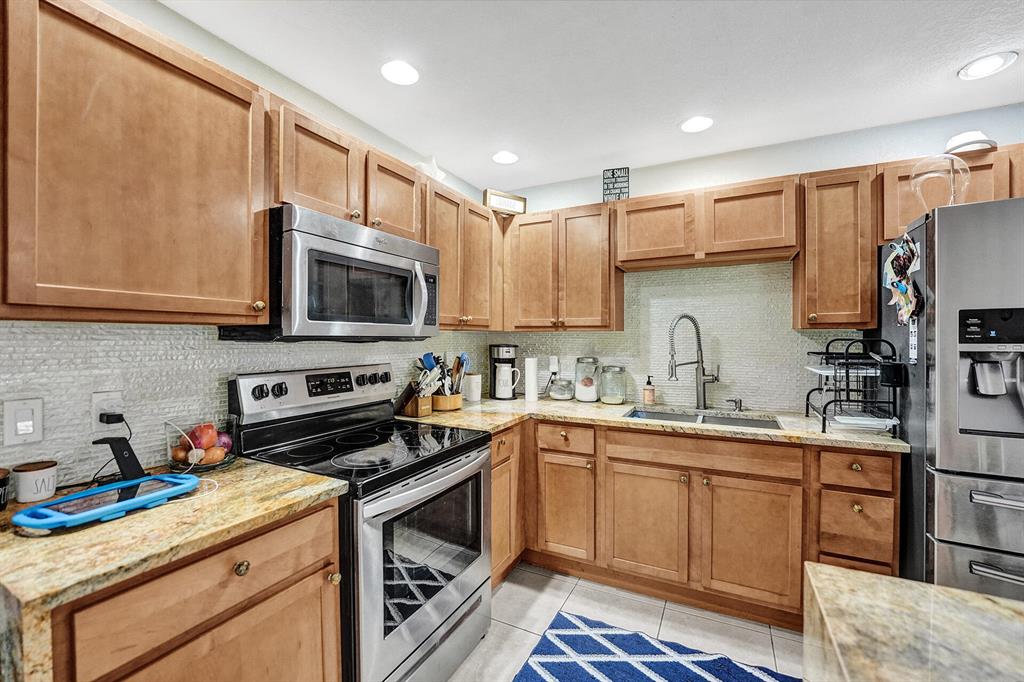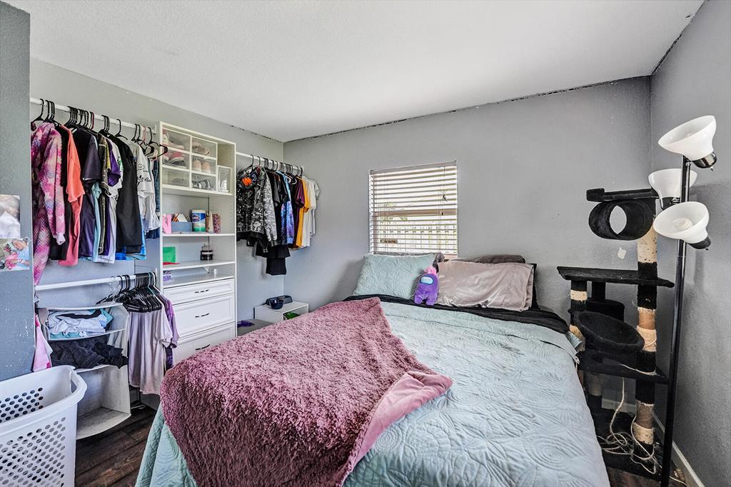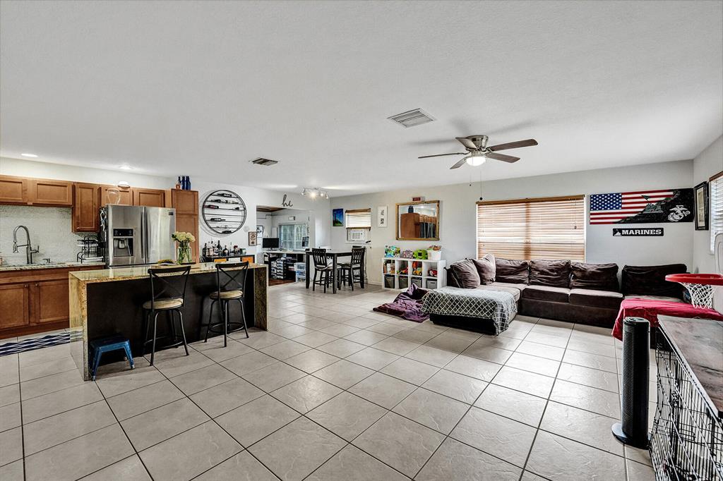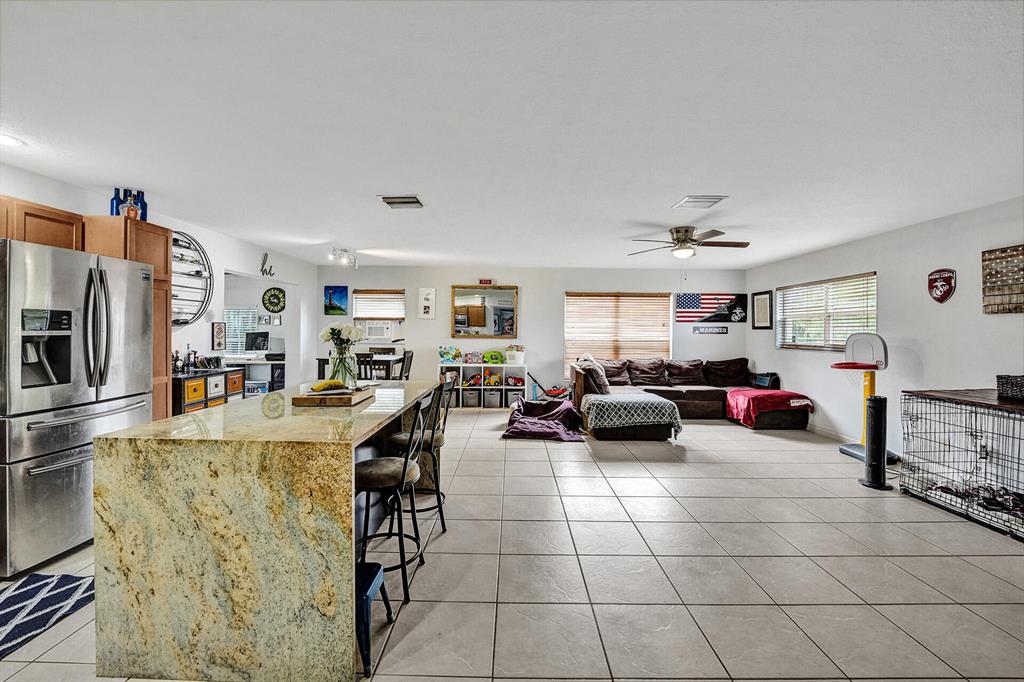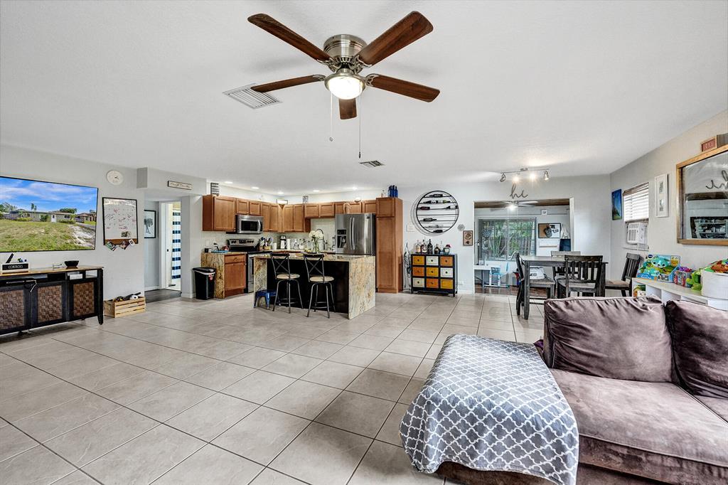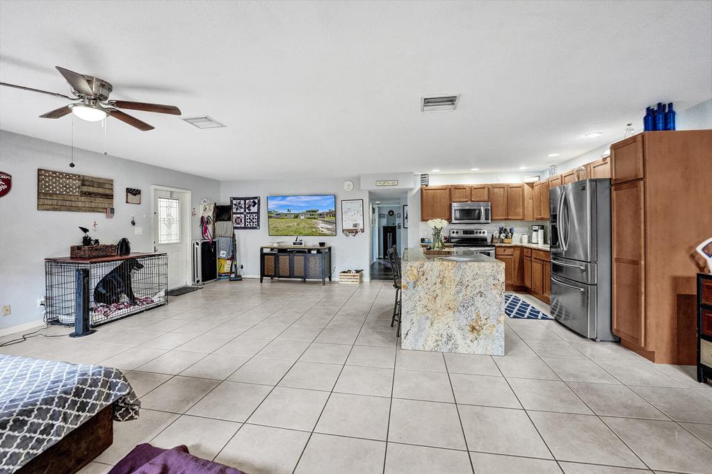 Charming property on a quiet, dead end road surrounded by newly constructed homes. Roof is 7 years old, and window Hurricane shutters included. Lots of privacy, fully fenced in back yard! Property sits on just under 1/4 acre. Wood laminate flooring in bedrooms and hallway and tile throughout kitchen and living room.Huge Galvanized metal carport on concrete slab in the back yard perfect for a car/truck/boat. Fire Pit. Covered patio. Both sides of wooden gate open allowing for additional parking on both sides of the property with plenty of room for a Boat 4x4, Buggy, or trailers. Fully updated kitchen lots of storage space and beautiful granite countertops with waterfall effect. Freshly painted interior. Open concept floor plan in the living/kitchen/dining area. Best of all, NO HOA!