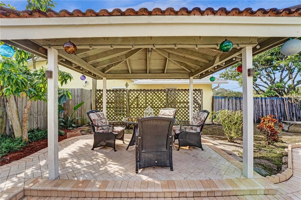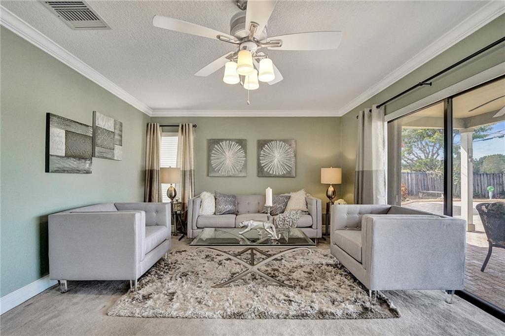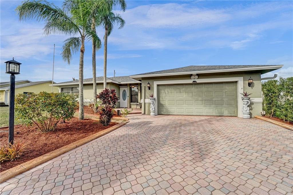 You will be amazed! Fabulous home sitting pretty on quiet cul-de-sac. Charming French doors overlooking a huge pavered patio, open pool, outdoor kitchen, gazebo. Great for easy entertaining with Florida flair. Valuable upgrades including white molded kitchen cabinets, lots of granite counters, crown molding, updated bathrooms, tiled social areas. Double glass sliding doors from large living room to patio. Family room fits a big screen. Formal dining space adjacent to kitchen. Popular split bedrooms. Accordion shutters & panels. Roof 2022. A/C 2016. Pavered driveway, 2-car garage, built-in storage, laundry area. Fenced. Auto sprinkler. Conveniently close to universities, medical, casino, shops, minutes to highways and the beaches. No HOA. Well priced. Take a look. Make it yours!