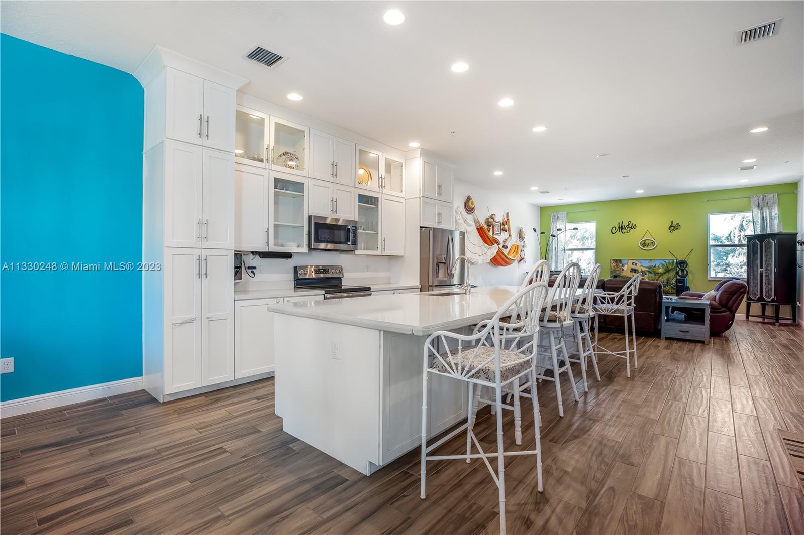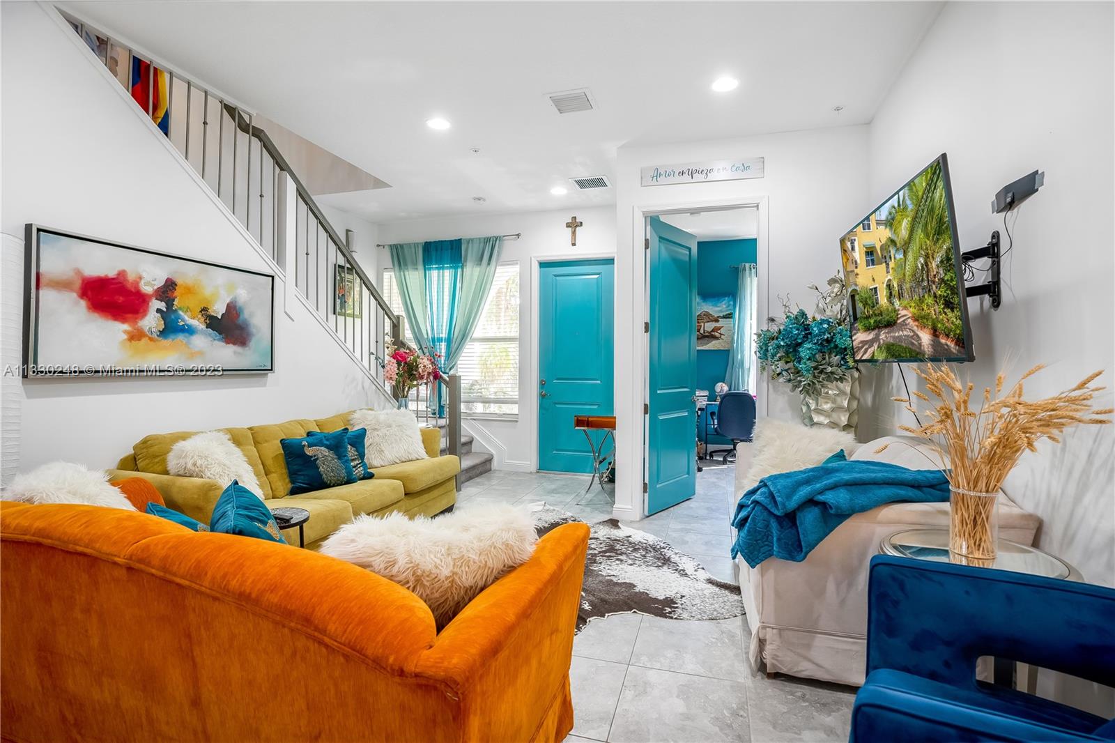 This stunning corner-unit townhome is sure to impress! Boasting over 3,000 square feet of living space & 10 ft ceilings on every level. From impact windows & doors, fire sprinkler system, security system, tons of closet space, and a 2-car garage. A flexible 1st-floor layout offers multiple possibilities with a living room complete with a kitchenette plus a bedroom and full bathroom ideal for multigenerational living or even an office with its own a/c unit. The open concept 2nd floor will be your favorite place to entertain friends as you prepare meals in the upgraded kitchen with a half bath. On the 3rd floor, you'll find 3 bedrooms plus 2 bathrooms & full-size laundry room. Enjoy all that this upscale gated community has to offer including a fitness center, heated pool & jacuzzi