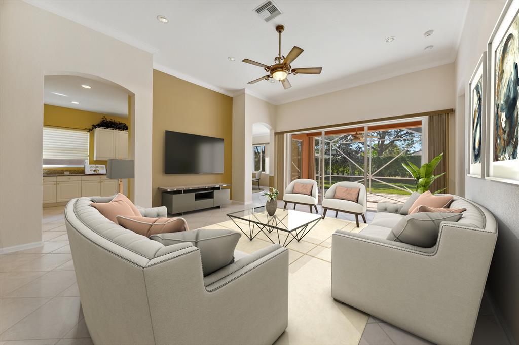 This is your opportunity to own this beautiful home in a fabulous resort-style community. 2 bedrooms, office, 2 baths, dining room, living room 2 car garage over 2000sq ft of air-conditioned space. The home is well maintained, exterior painted a year ago, accordion shutters on all openings, screened entry, extended screened covered lanai. The interior is just lovely, high ceilings, chair rails, tiled throughout on the diagonal except for carpet in owner's suite and guest bedroom. Main bathroom has Jacuzzi jet tub. A chef's delight kitchen with granite counter tops, Bosch dishwasher. AC and hot water tank 6/2021. Baywinds offer lots of amenities such as 2 heated swimming pools, 1 aqua-trac pool, hot tub, 6 ...More