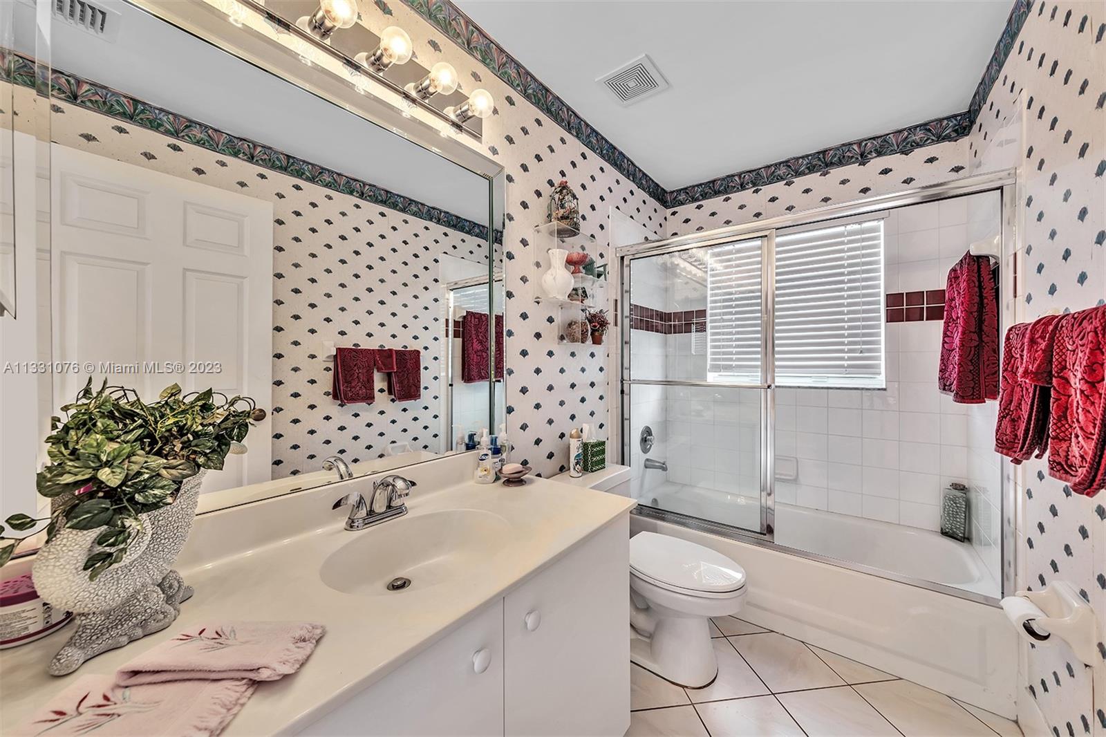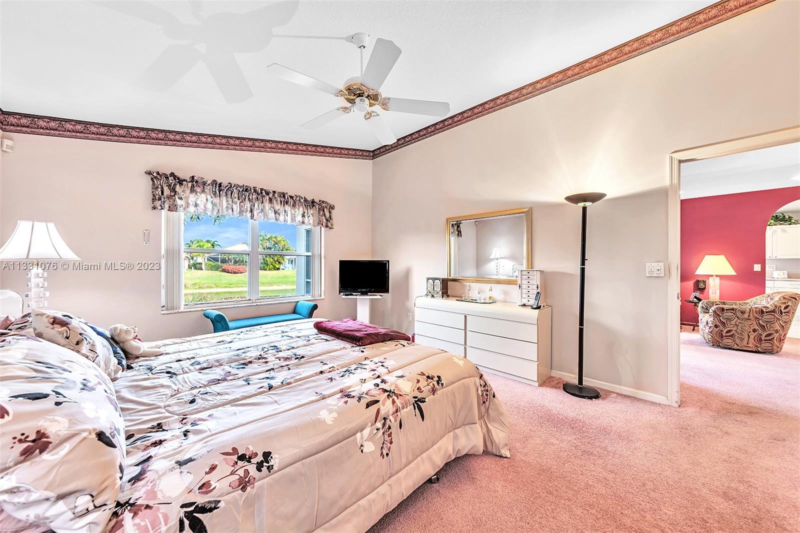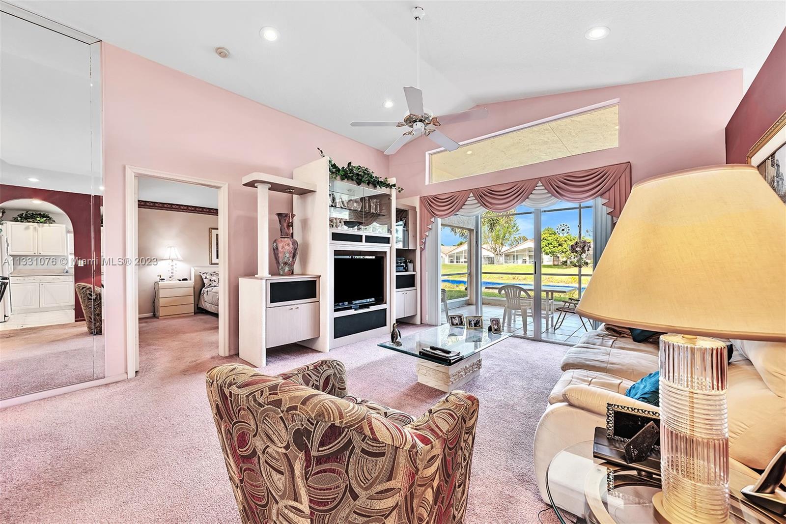 This lovely home now priced $25K back of value to reflect the fact owner knows some might not like pink carpet and paint (Joke) but seriously the house is lovely, wonderfully located on the lake. Home features open floor plan w/vaulted ceilings. Watch the ducks swim by in your oversized screened-in patio for hours of relaxation and family fun! Master suite features 2 walk-in closets and master bath features dual sinks, Roman tub w/separate shower. Immaculate clubhouse features heated pool & spa, clay tennis courts, gym, guard gate, lawn care and cable TV in one of the best managed HOA’s in Boca with great reserves. Near dining, shopping, parks, houses of worship and top rated Boca school district. Make this house yours before it goes under contract!