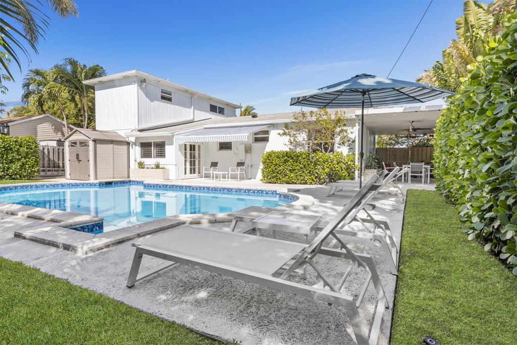 Newly Renovated and remodeled 3 Bed / 3 Bath South Florida Oasis in the coveted SOSO neighborhood of West Palm Beach with over 1,600sq.ft. living space! This open layout with a redesigned floorplan offers two first floor bedrooms with two full baths, and a private upstairs owners suite including a walk-in closet and new bath with dual vanity sinks. The ultra private and lushly landscaped backyard features an extra large swimming pool and covered lanai for true South Florida living. Just minutes to PBI, Palm Beach Island, the brand new public golf course, and Brightline Train Station. Furniture is negotiable making this your perfect and easy move!