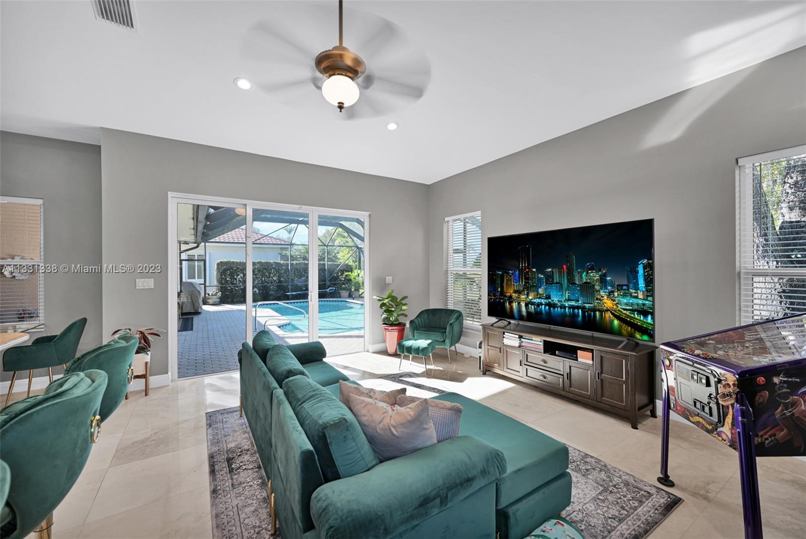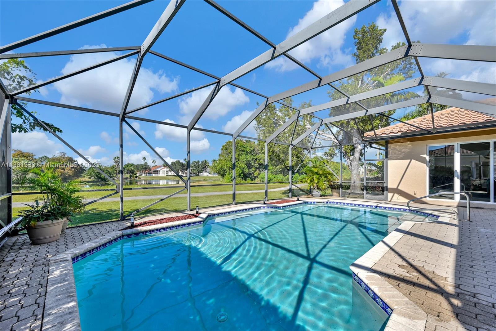 GORGEOUS TURNKEY 4 BED 3 BATH POOL HOME OFFERS BREATHTAKING WATER AND GOLF COURSE VIEWS IN EXCEPTIONAL MANNED GATED COMMUNITY OF GRAND PALMS. ELEGANT DOUBLE DOOR ENTRY WELCOMES INTO AN IMPRESSIVE FOYER W STUNNING TILE MOSAIC. OPEN FLOOR PLAN BOASTS 2,538 SQ FT OF LIVING AREA & SOARING CEILINGS. ENJOY SPACIOUS SOCIAL AREAS EACH WITH ACCESS TO THE POOL & PATIO. KITCHEN OFFERS WOOD CABINETS, GRANITE COUNTERS & BRAND NEW SS APPLIANCES. SPACIOUS PRIMARY SUITE HAS DIRECT ACCESS TO PATIO & POOL & LOTS OF CLOSET SPACE. ENSUITE CABANA BATH W GARDEN TUB & SEPARATE SHOWER. CONVENIENT JACK & JILL BATH. IMPACT WINDOWS. INDULGE IN SUNSET VIEWS WHILE DINING POOLSIDE ON THE LANAI. DEDICATED LAUNDRY ROOM W STORAGE & LAUNDRY SINK. ENJOY PROXIMITY TO SHOPS, GOLF, RESTAURANTS & CONVENIENT ACCESS TO I-75.