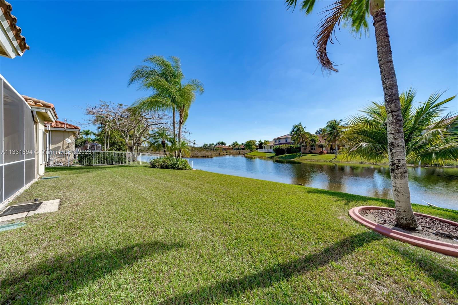 Incredible large 3 bedroom and 2 bathroom 1 story with high ceilings home with water front lake and well located community in the west of Pembroke Pines. 2 car garage, freshly painted, new carpet, tile on common area, formal dining, large living space, spacious kitchen with breakfast area and family room all facing the stunning lake front and with lots of green spaces and yard around the property. Community was the nicest construction. Immaculate home, just bring your tooth brush and move in. Complex has tennis court less than 1 block away and pool in community close to Pembroke Pines Blvd entrance. Community offers gated pool area, restrooms, playground, more tennis courts and basket ball 1/2 court.