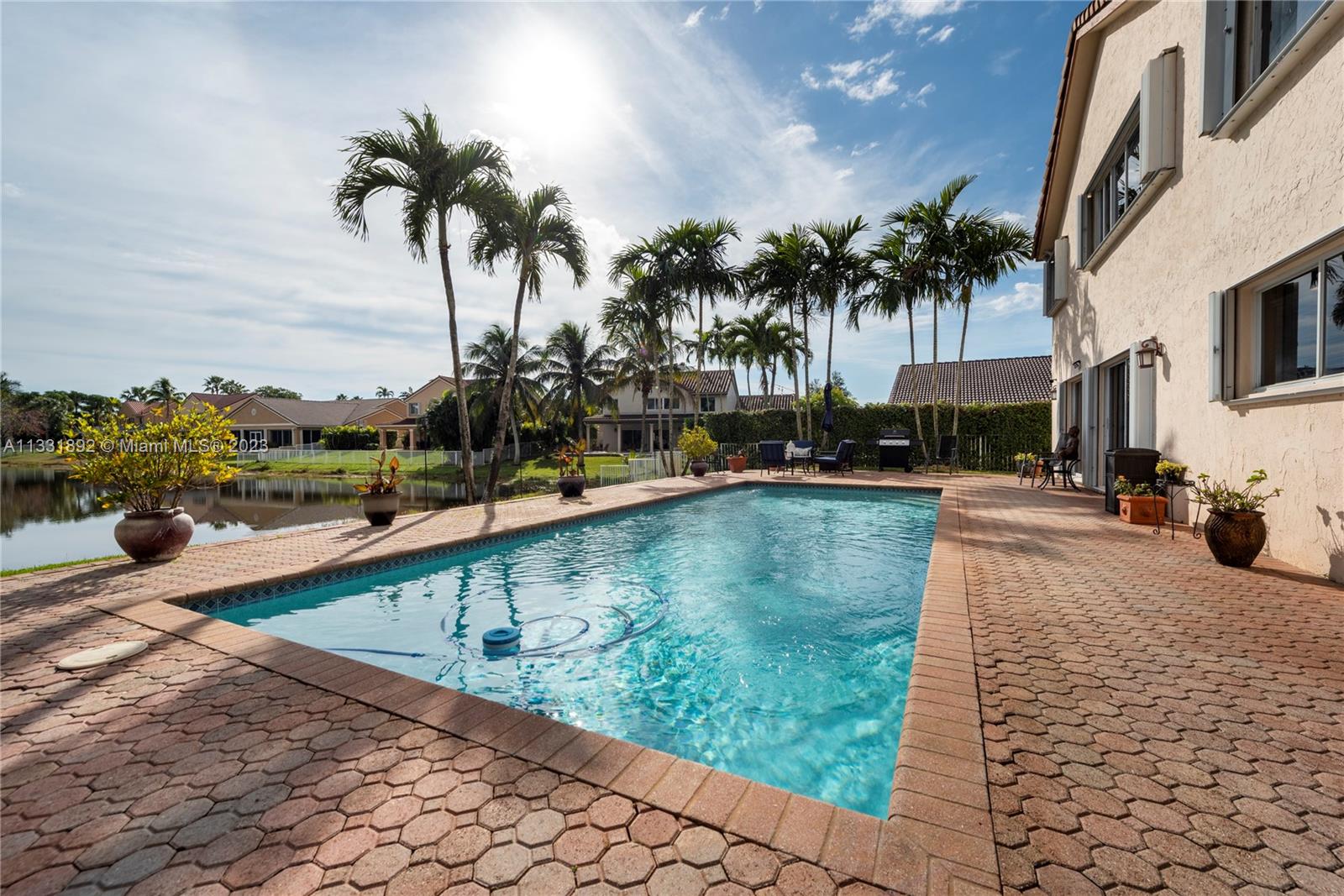 Breathtaking lake views from the second you walk in the gorgeous custom entry doors of this spectacular estate! As one of the most in demand floor plans, this home has it all! Huge updated kitchen w/ granite counters, stainless steel appliances, walk-in pantry, & a large island opens into the expansive family room *Wet bar w/ wine fridge off the family room is perfect for entertaining *Oversized pool overlooking peaceful lakeview *Spacious rooms *Luxurious remodeled master bath w/ jetted tub & custom glass door *1 bedroom/full bathroom downstairs *Tile/vinyl floors throughout *Accordian shutters & upgraded garage doors *Dual zone AC's both replaced 2019 & 2021 *3 car garage w/ storage built-ins *Gated community *Association fees include cable & internet Master: $450/Q Sub: $120/Q