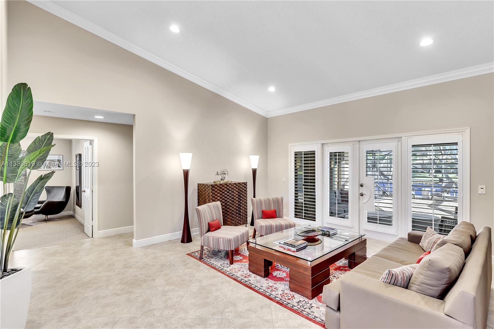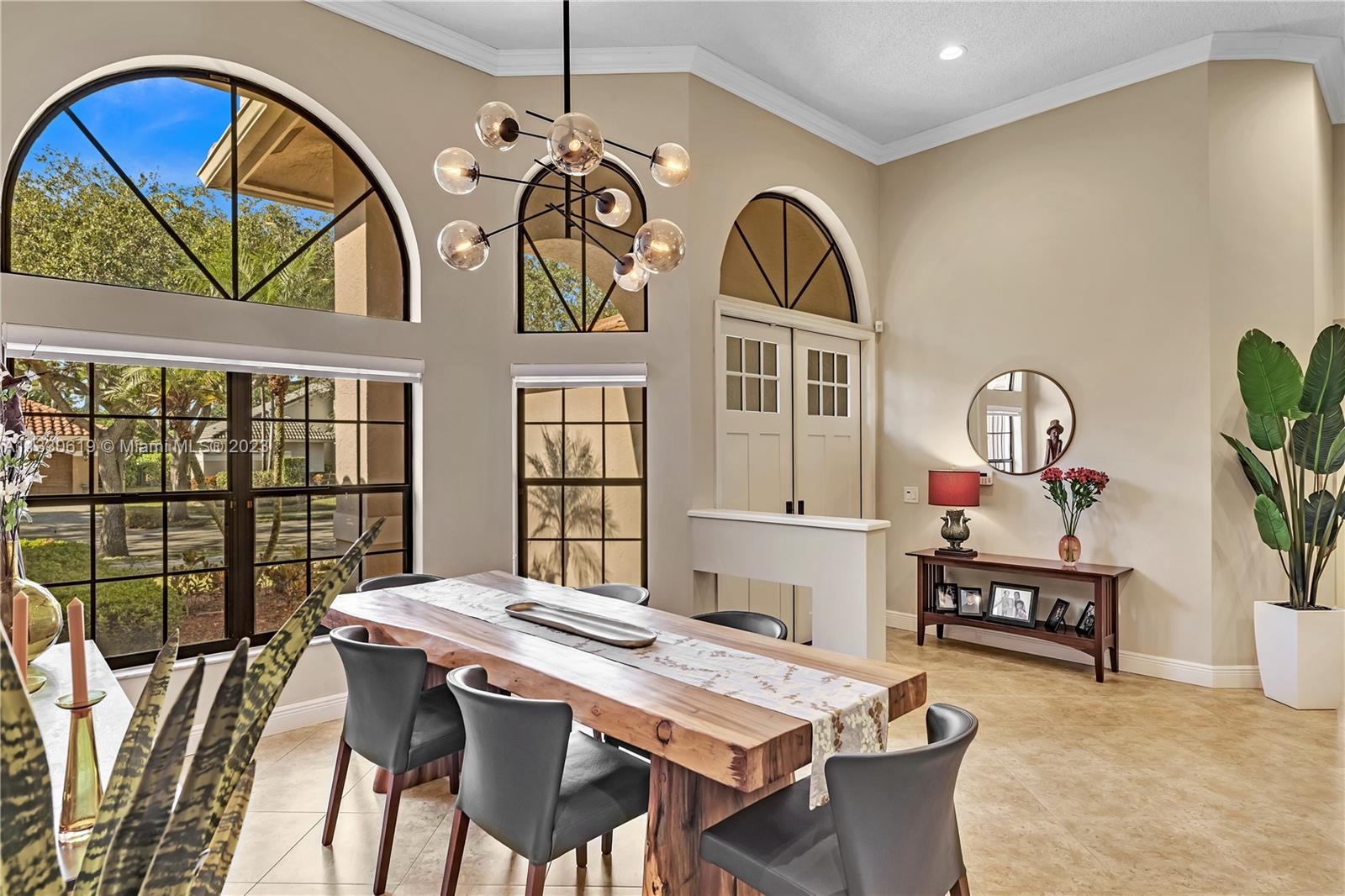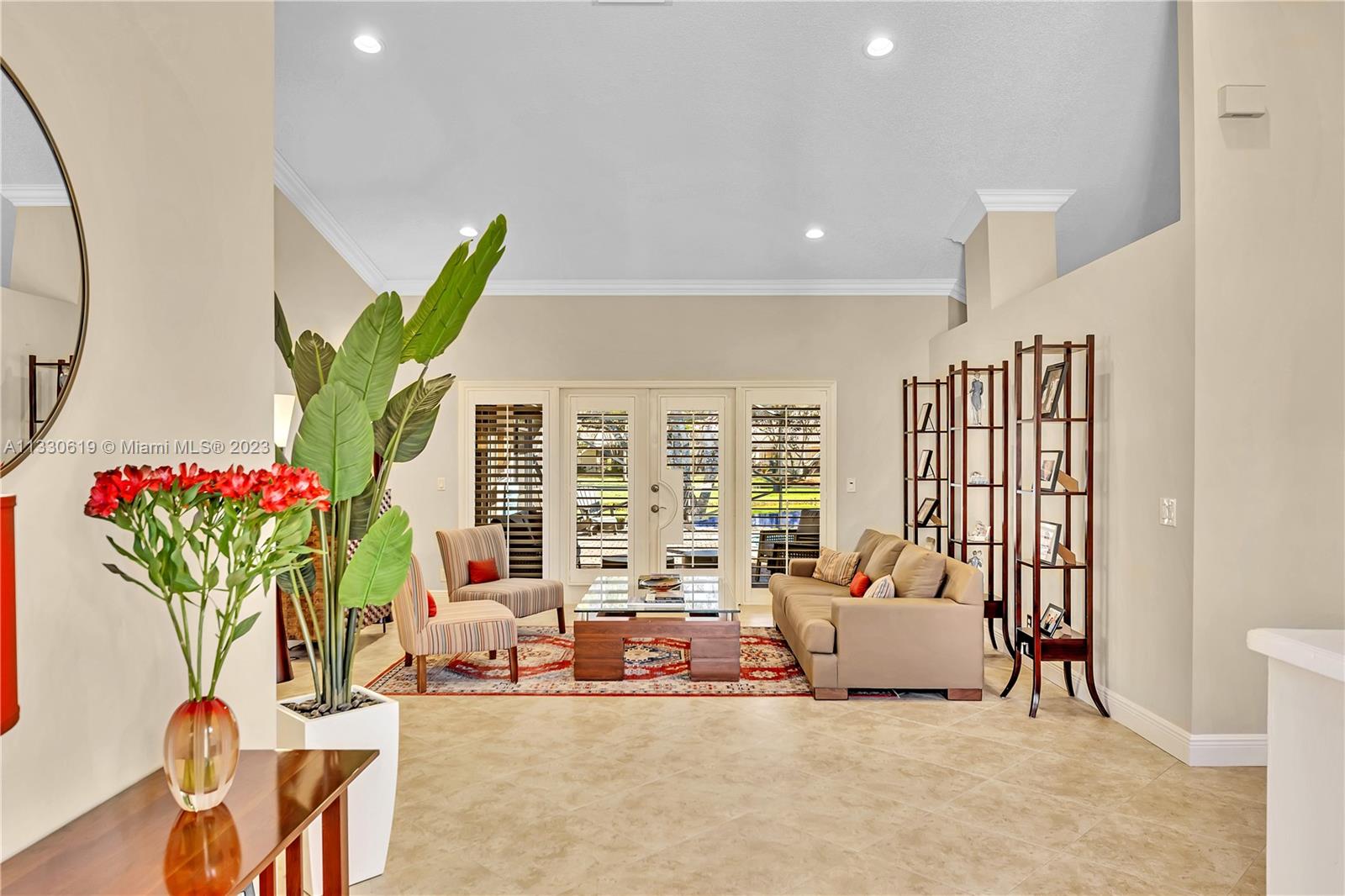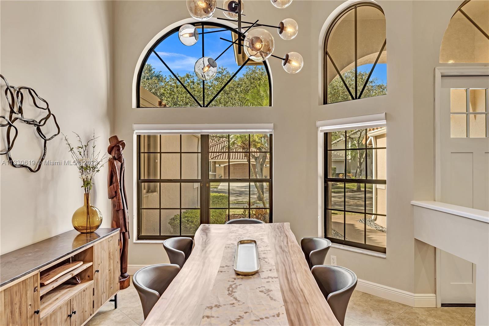 This graciously updated one story 5 bed/3 bath home is executed with a transitional flair, completed w/fine taste and attention to detail! Nestled in the exclusive guard gated tree-lined Weston community of Tequesta, the property sits on a private waterfront lot. Chef's kitchen, w/custom cabinetry, top of the line GE appliances, double oven, unique tile backsplash, quartz counter tops and wine cooler, overlooks the breakfast area and spacious family room. Spa-like master bathroom exudes a zen-like feel. Additional features include Plantation shutters, custom closets and split bedroom plan. Step onto the screened and paver patio and lounge in the pool while enjoying the view, perfect for outdoor lifestyle. Accordion shutters, Roof 2017, pool resurfaced, enclosure re-screened 2020 and more!