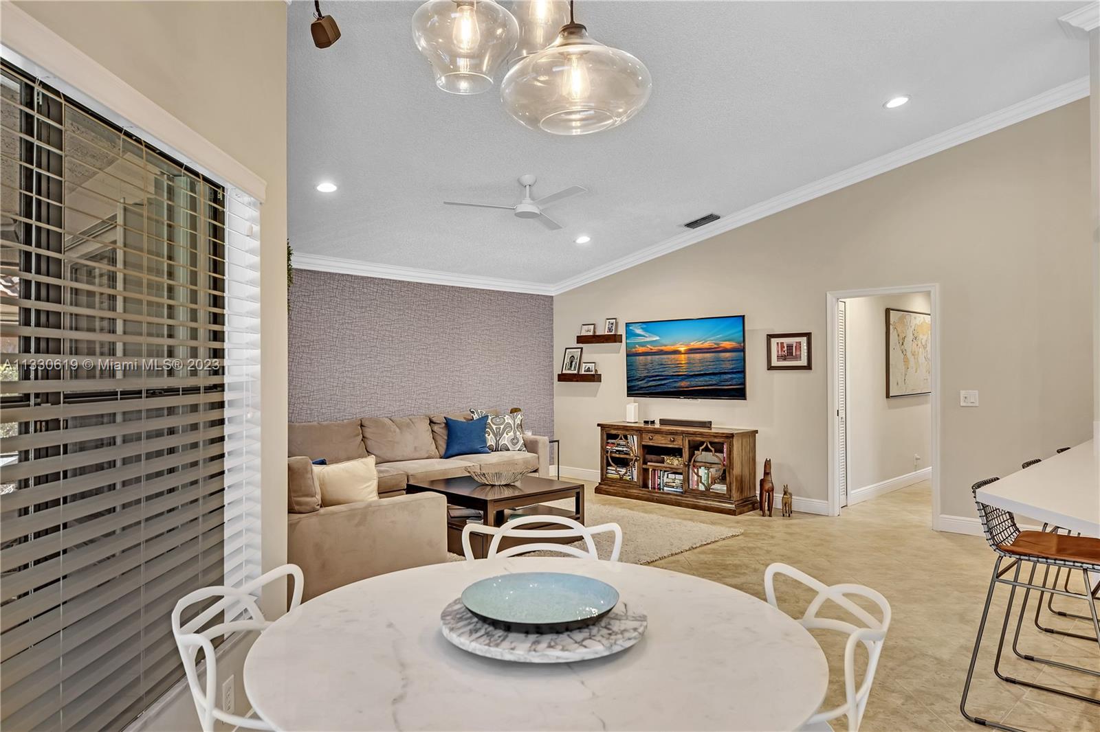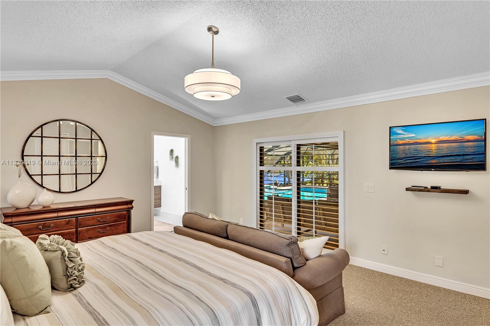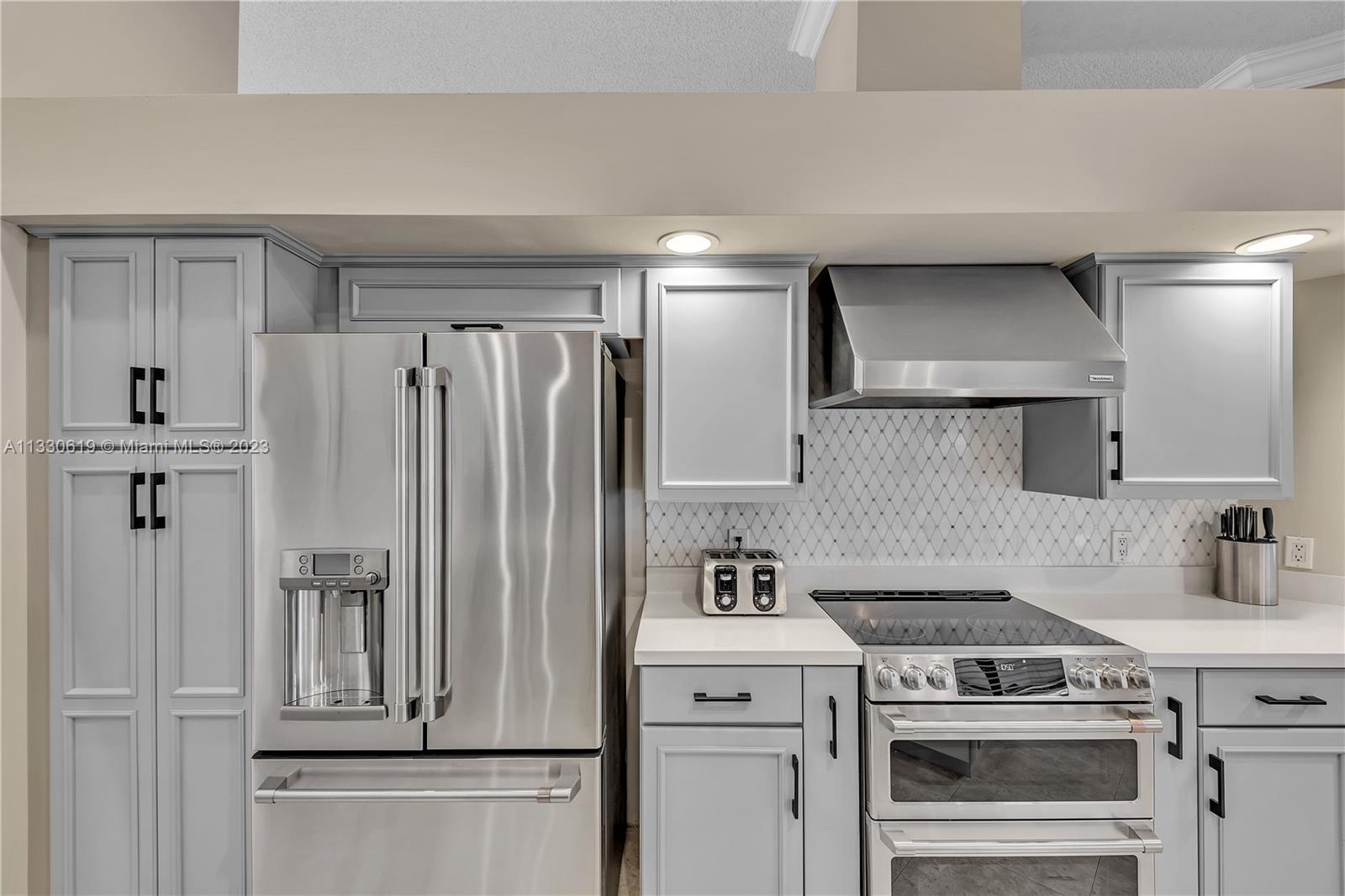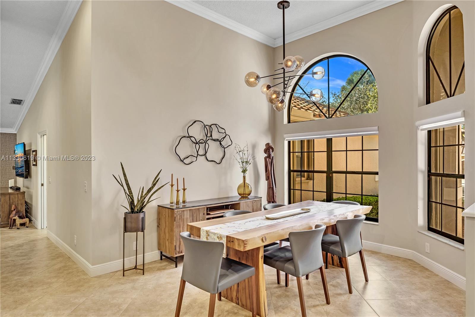 This graciously updated one story 5 bed/3 bath home is executed with a transitional flair, completed w/fine taste and attention to detail! Nestled in the exclusive guard gated tree-lined Weston community of Tequesta, the property sits on a private waterfront lot. Chef's kitchen, w/custom cabinetry, top of the line GE appliances, double oven, unique tile backsplash, quartz counter tops and wine cooler, overlooks the breakfast area and spacious family room. Spa-like master bathroom exudes a zen-like feel. Additional features include Plantation shutters, custom closets and split bedroom plan. Step onto the screened and paver patio and lounge in the pool while enjoying the view, perfect for outdoor lifestyle. Accordion shutters, Roof 2017, pool resurfaced, enclosure re-screened 2020 and more!