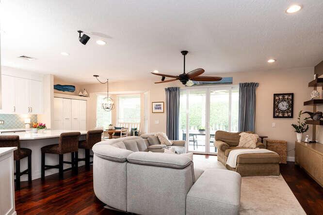 Stunning TURN-KEY home with 5 bedrooms, loft, 3 full bathrooms plus half bath, and 3 car garage on a quiet cul-de-sac. Fully fenced, very private spacious backyard. Enjoy the tranquil swimming pool and screened lanai with friends and family all year round with the new wirelessly controlled heater/chiller. NEW ROOF just replaced in 2021. Storm protection throughout, and new 2022 high end ACs on upper and lower levels! Newly renovated kitchen with custom kitchen cabinetry and stainless steel appliances. All bathrooms are beautifully renovated! Outstanding layout with the master suite downstairs and all other bedrooms upstairs. A perfect guest room with its own en suite bathroom! This home also features custom built-ins in the living room and the spacious loft.