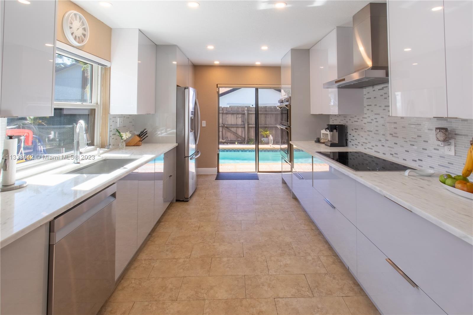 Renovated single-family home in the Pembroke Lakes neighborhood. This 3 beds, 2 baths home features a pool, a newly renovated kitchen with oversized cabinets, stainless steel appliances, wall oven, induction cooktop, and vented range hood. Other renovations include impact windows, bathrooms, the laundry room, a new tankless water heater, new attic insulation, the air conditioner replaced in 2019, and the roof was replaced in 2011. There are also many smart features throughout the house such as light switches, thermostat, doorlock, appliaces, doorbell, and leak detection sensors. Located within minutes of great schools, two malls, restaurants, supermarkets, and a huge variety of major department stores.