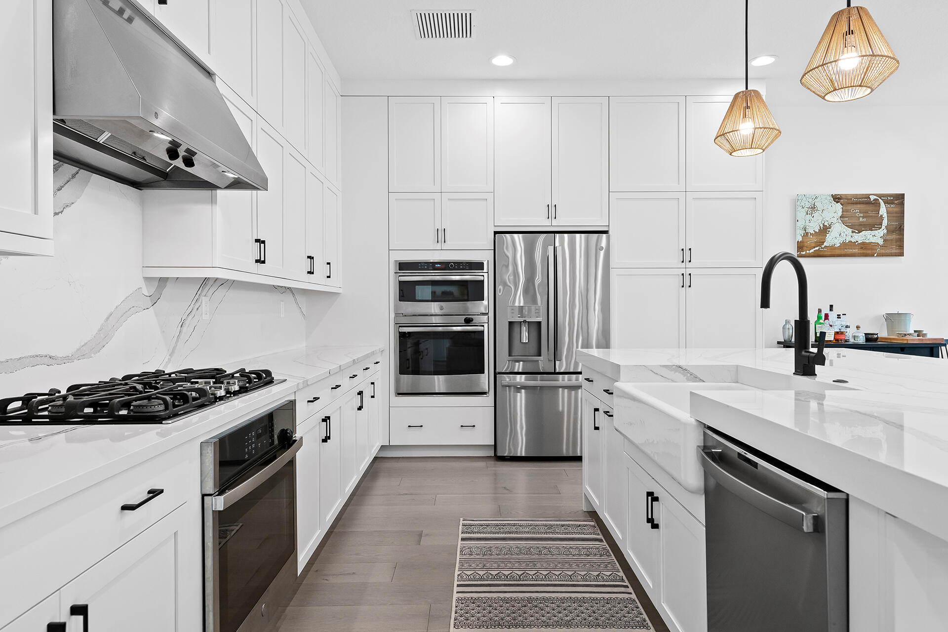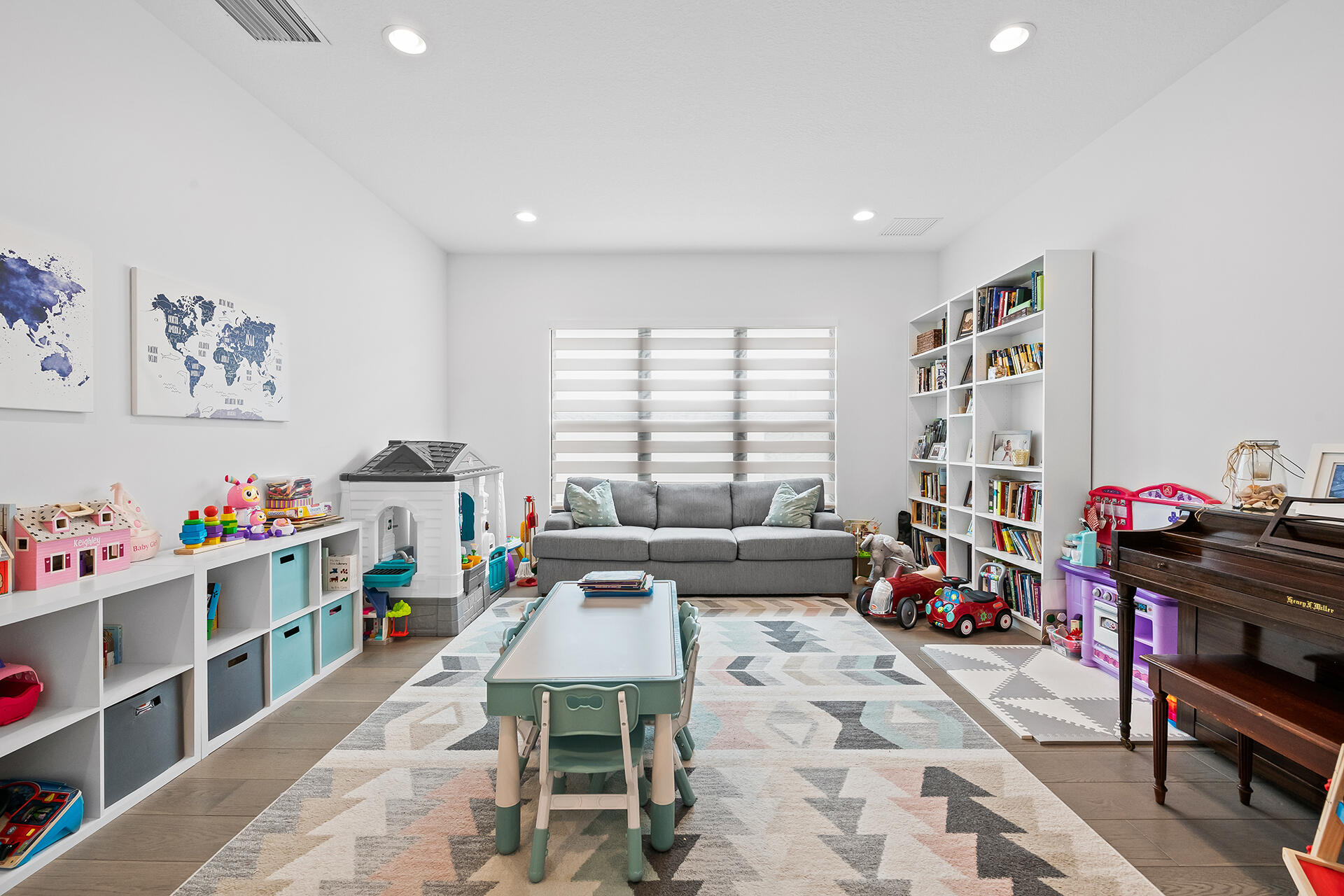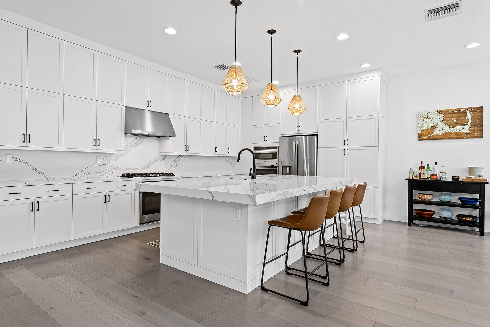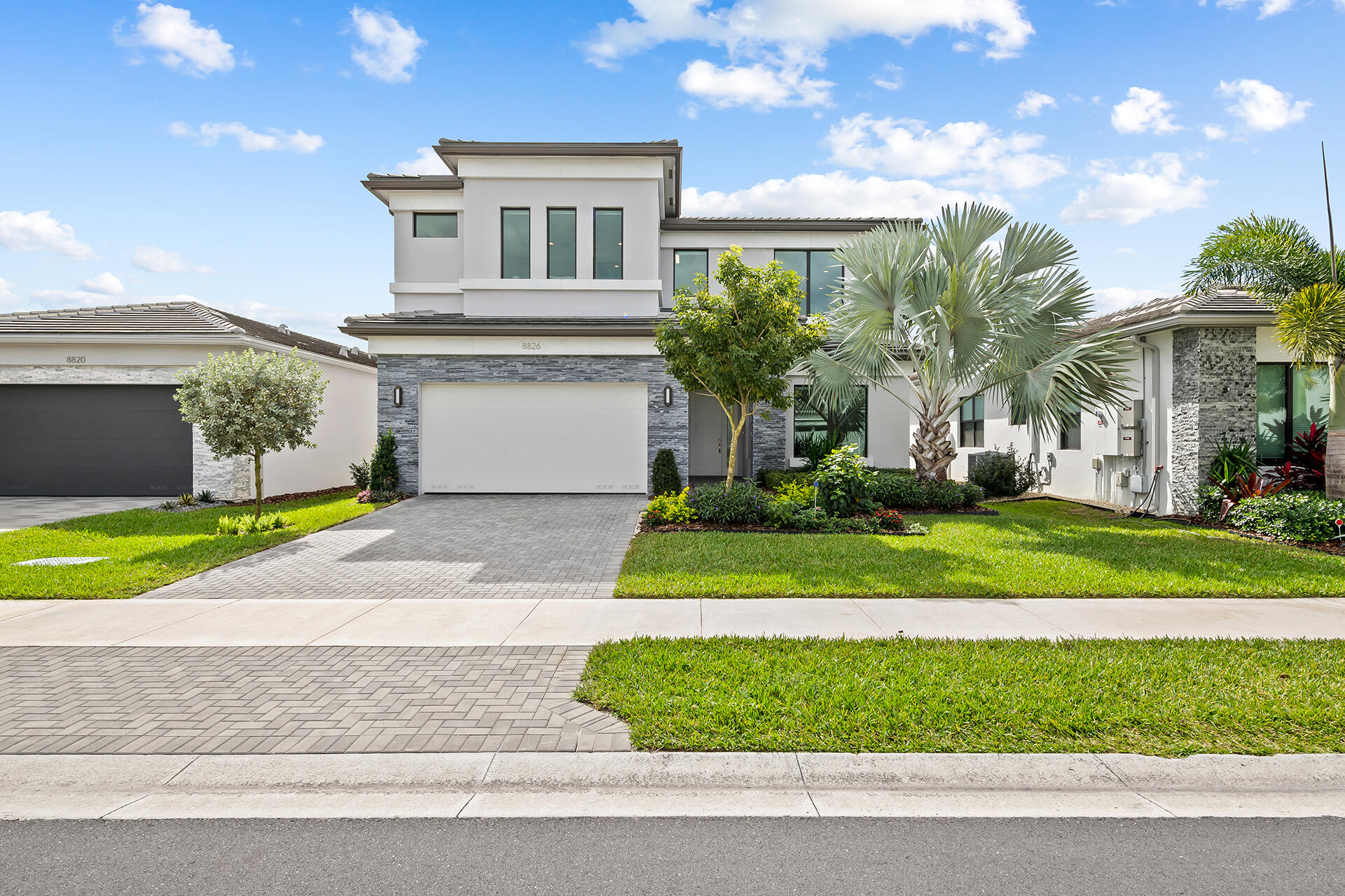 Welcome home to the sought after model, The Mariana, offering 5 bedrooms and 5 full baths. Home features chef island kitchen with white cabinets, quartz countertops, double ovens, oversized bedrooms with walk-in closets, hardwood floors, volume ceilings and impact windows and doors throughout. Lotus offers world class amenities which include a stunning clubhouse lounge, restaurant, fitness center, sports complex, game room, resort pool, lap pool, clay tennis courts, pickleball courts, playground and splash pad. Maintenance fee includes lawn service, 24 hour gated entrance, alarm monitoring, clubhouse and common areas.