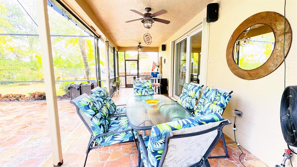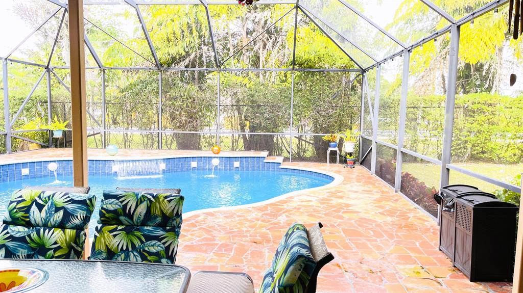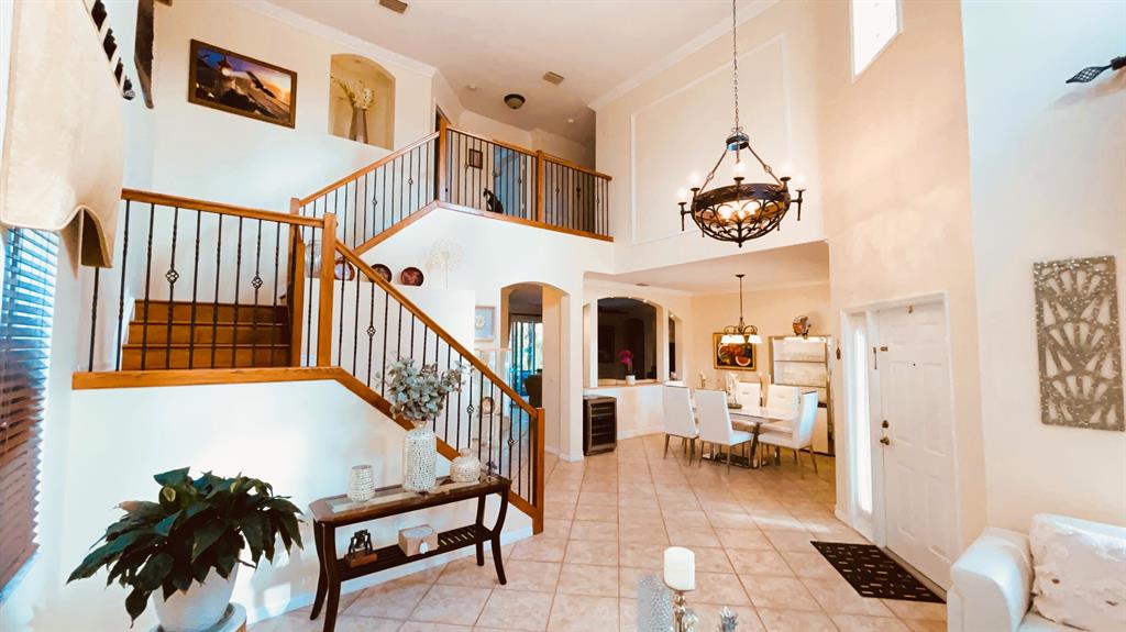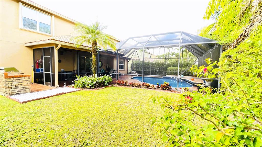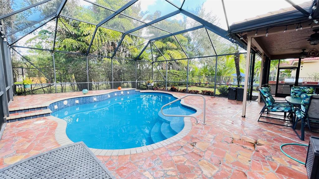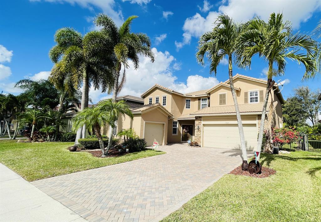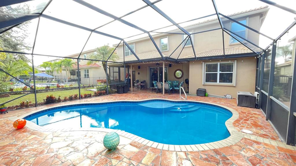 This wonderful 5 bedroom, 3 bath home with private pool and 3 car garage sits on one of the largest lots in the desirable community of Stonehaven. The cook's kitchen features LG stainless steel SMART appliances, Corian countertops with inlays. Among the many designer finishes are diagonal Porcelain flooring downstairs, iron railings, real wood upstairs and Hunter Douglas blinds. Impact glass and accordion hurricane shutters for storm protection. Other SMART Home features include programmable garage doors (to close if left open), Nest Thermostat, Ring Doorbell, Smart light switches, and ADT Alarm Keypads at Master Bedroom, front door, and garage. New water heater in 2023. The gorgeous, oversized backyard features a screened-in salt chlorinated pool with heater, outdoor sound system,