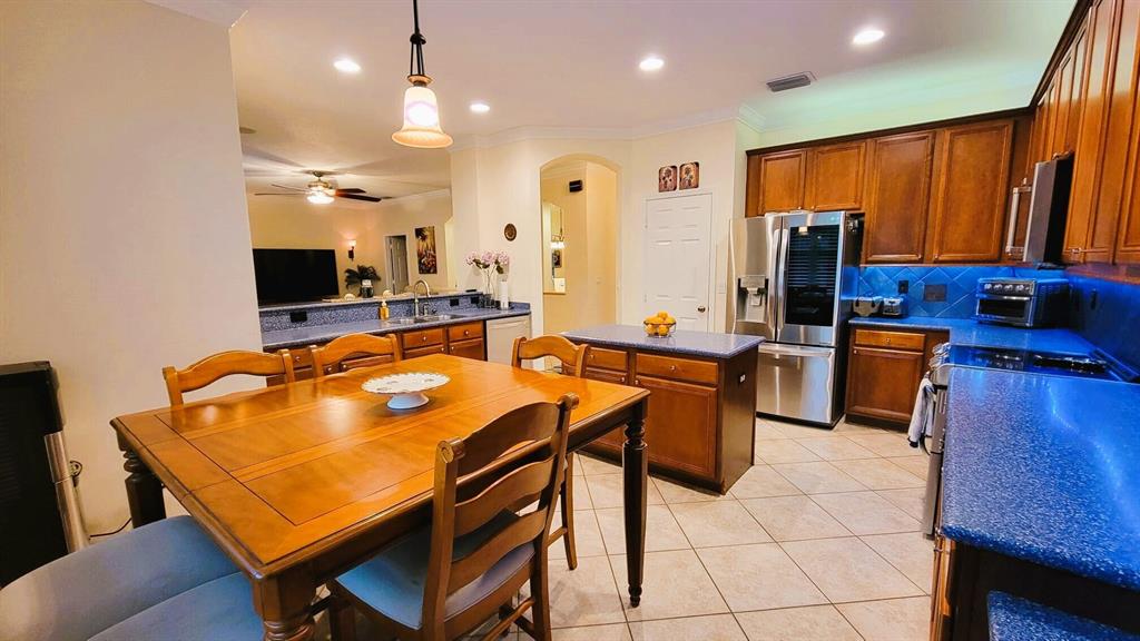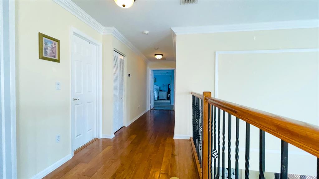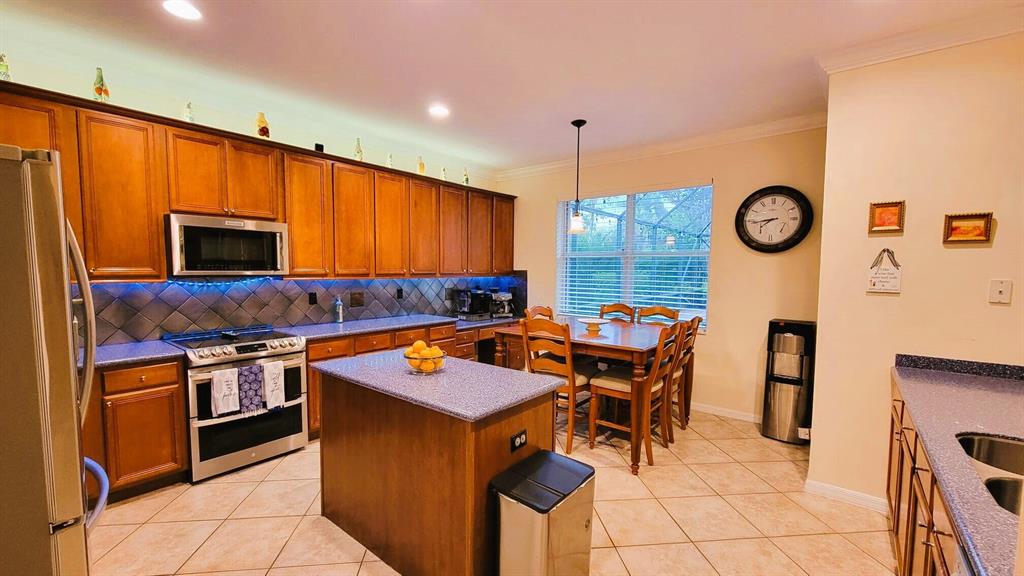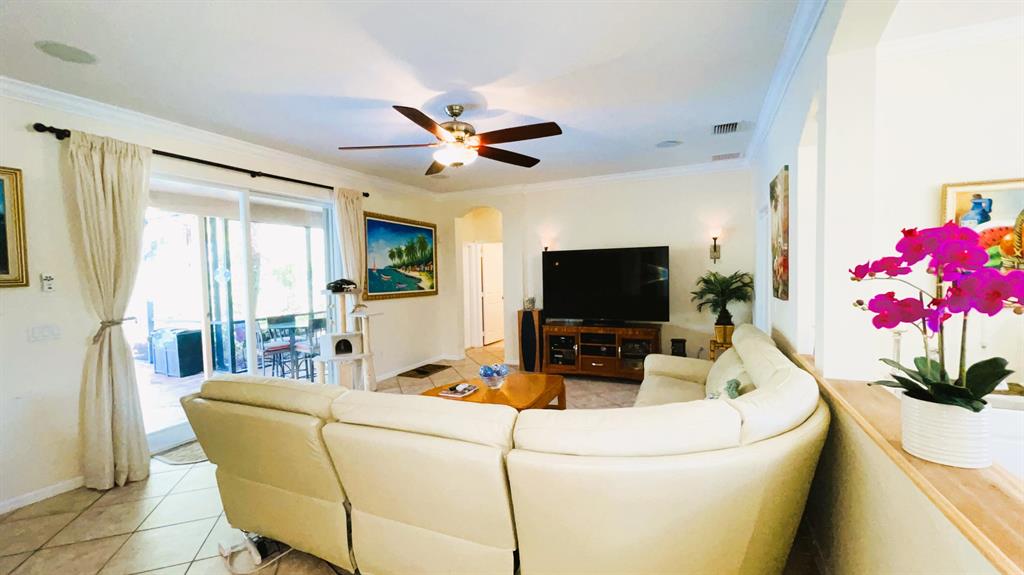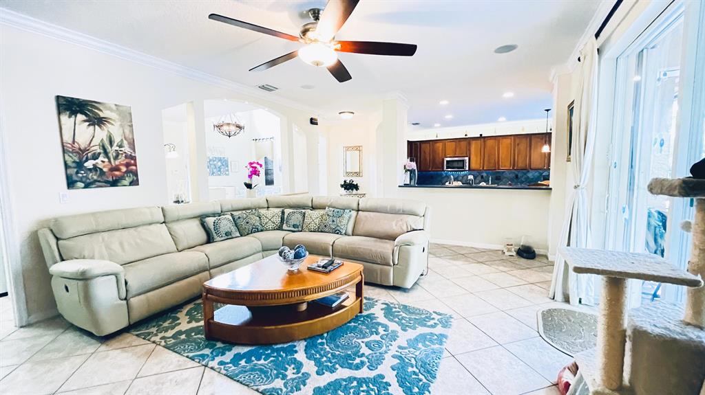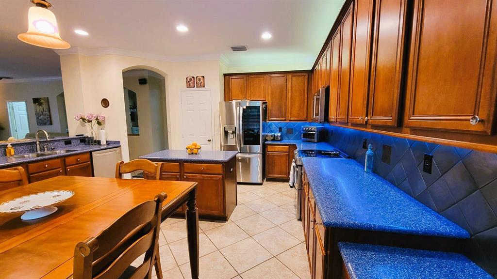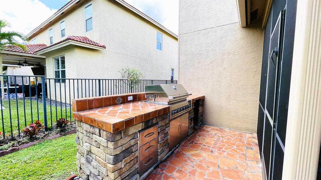 This wonderful 5 bedroom, 3 bath home with private pool and 3 car garage sits on one of the largest lots in the desirable community of Stonehaven. The cook's kitchen features LG stainless steel SMART appliances, Corian countertops with inlays. Among the many designer finishes are diagonal Porcelain flooring downstairs, iron railings, real wood upstairs and Hunter Douglas blinds. Impact glass and accordion hurricane shutters for storm protection. Other SMART Home features include programmable garage doors (to close if left open), Nest Thermostat, Ring Doorbell, Smart light switches, and ADT Alarm Keypads at Master Bedroom, front door, and garage. New water heater in 2023. The gorgeous, oversized backyard features a screened-in salt chlorinated pool with heater, outdoor sound system,