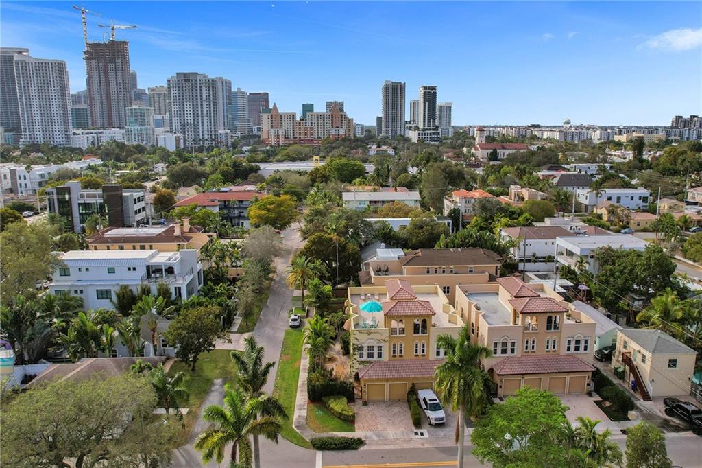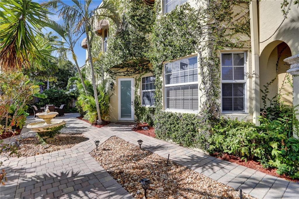 Located on one of the most desirable streets in Victoria Park & 5 blocks to Las Olas Blvd. A corner lot offering an abundance of outdoor space truly makes this home unique & feel like a SFH. A private gate leads to a serene wrap-around garden area with room for a pool. Open kitchen features a breakfast nook & custom wood-top bar. 2nd floor offers double door entry to grand master suite with sitting area, newly updated bath, 2 guest suites, & laundry with new washer/dryer. 3rd floor 1200sf rooftop terrace overlooks downtown with endless design opportunities. Home features include volume ceilings throughout, ample storage including large walk in storage room, new 2 zone AC's, newly sealed flat roof, new refrigerator, new Hunter Douglas shades throughout, Fee Simple, ample guest parking