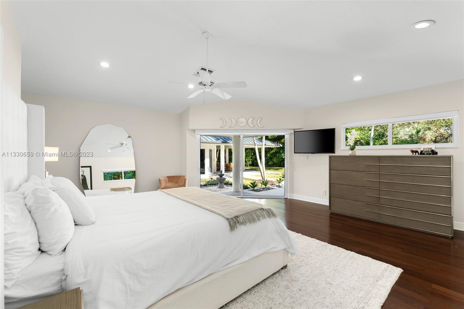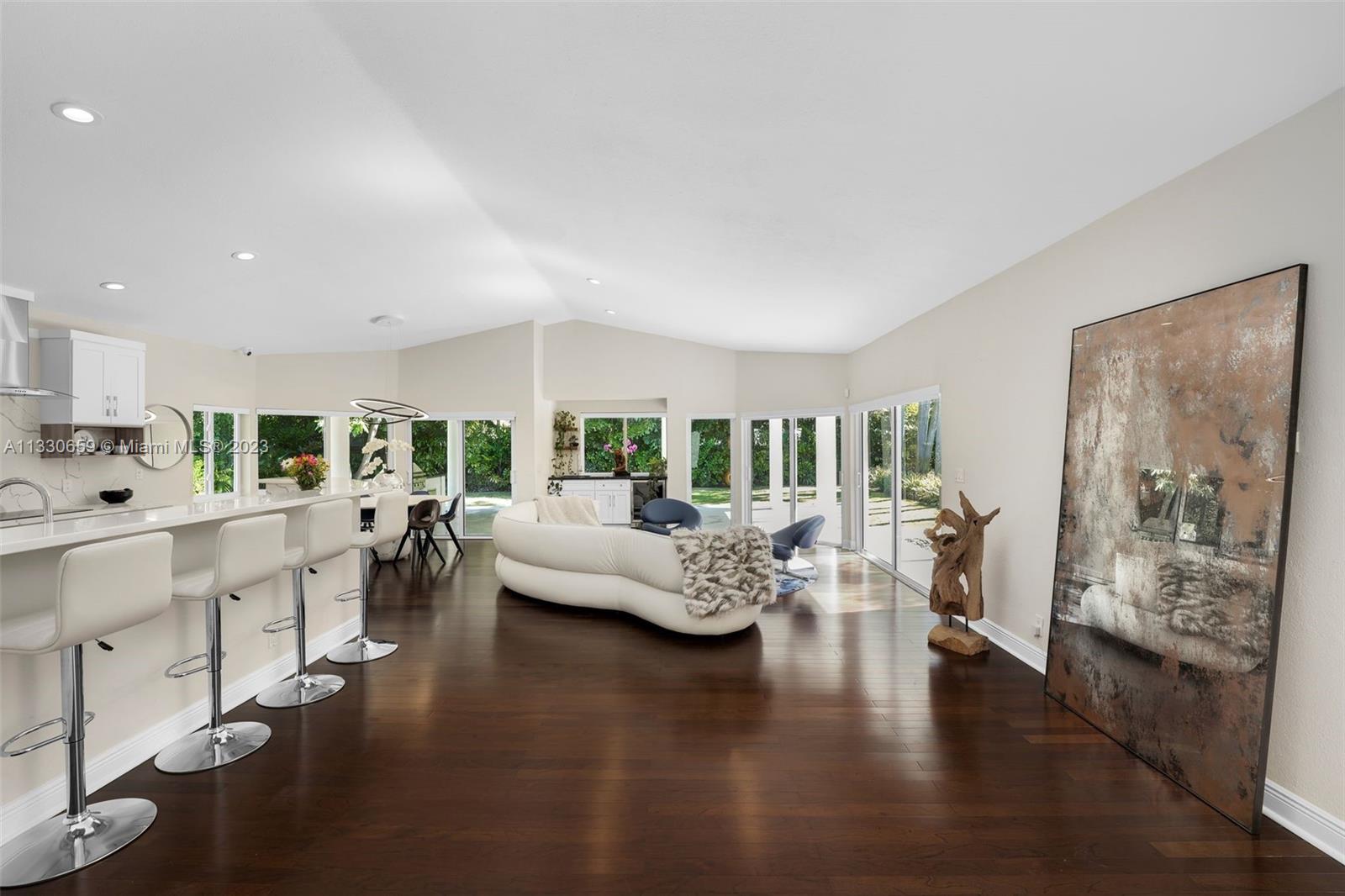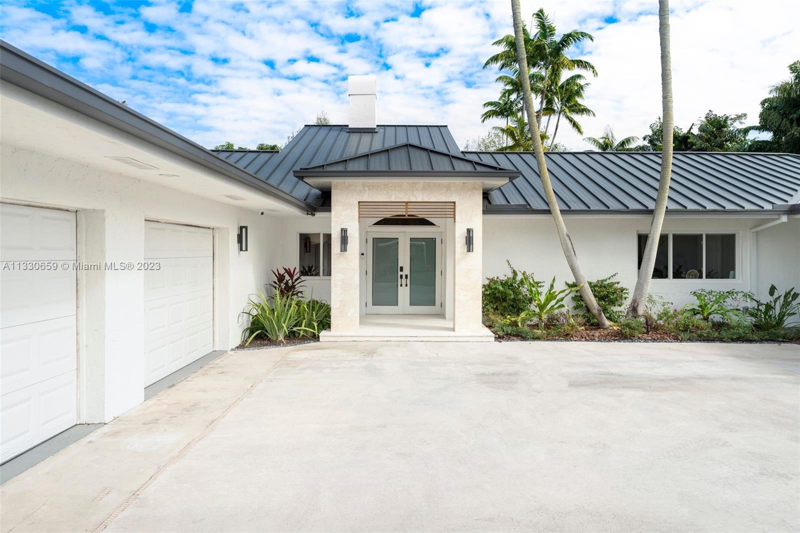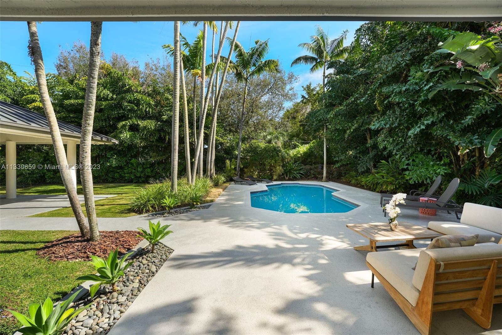 Stunning and sophisticated home located on a quiet street of Pinecrest. Extensive 2021 renovations, this home sits on a 20,000 SF lot offering privacy, tranquility, and luxury with a lush tropical patio & pool area, zen garden and fruit trees. Spacious 5 bed, 4.5 bath home with open floor plan, high ceilings and tons of natural light. Living & dining all open & overlooking the lovely pool & deck that was newly resurfaced, perfect for those that like to entertain. Additionally, home features a modern kitchen,new appliances,cabinets & quartz counters;wine cooler/bar, summer kitchen, wood floors; new impact windows/doors; all new wifi controlled AC units, new metal roof & a pristine 3-car garage. Excellent location close to several parks & top private schools.Perfect for raising a family!
