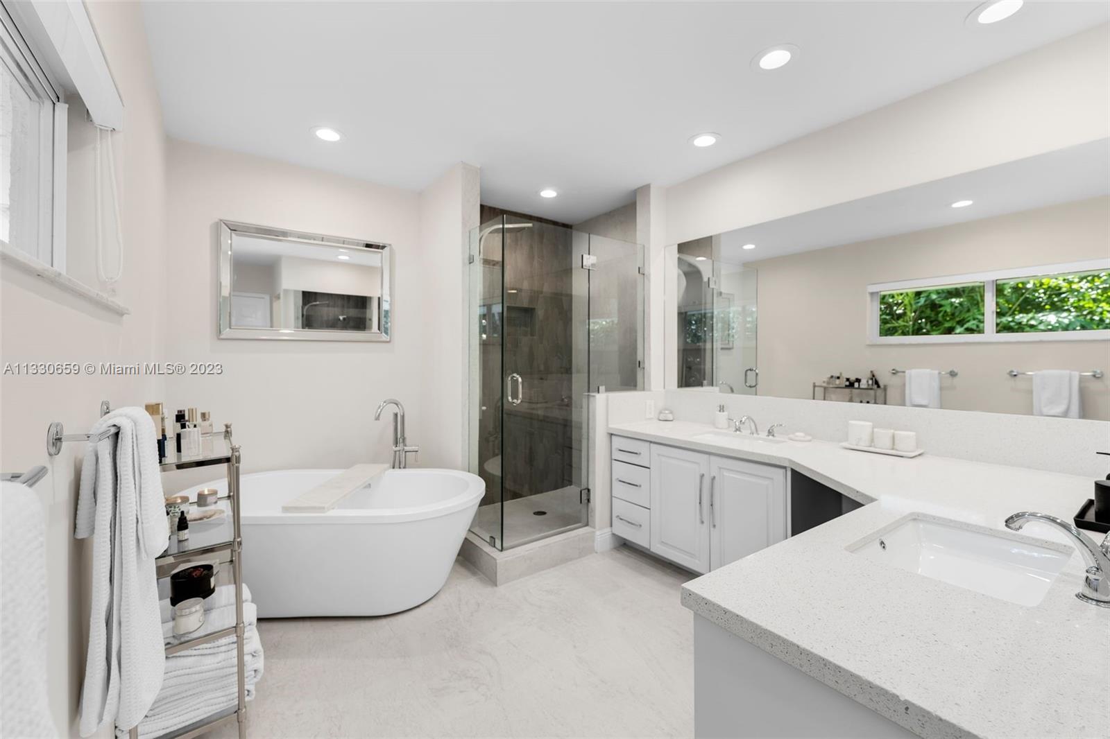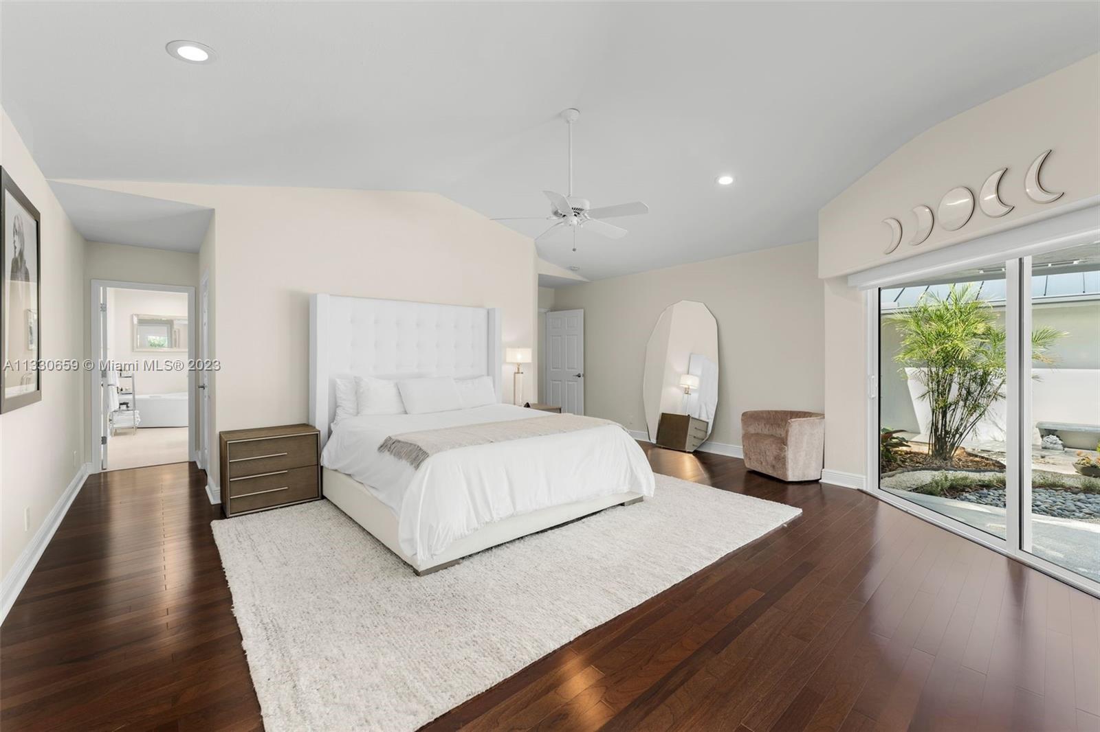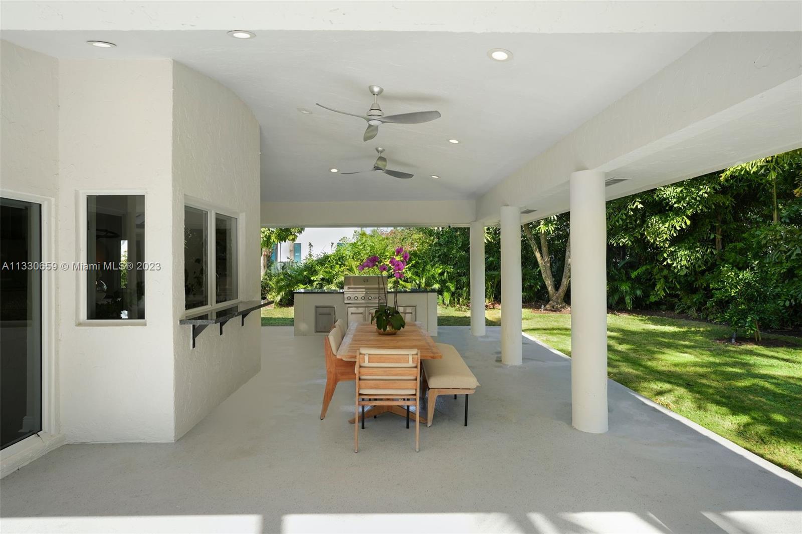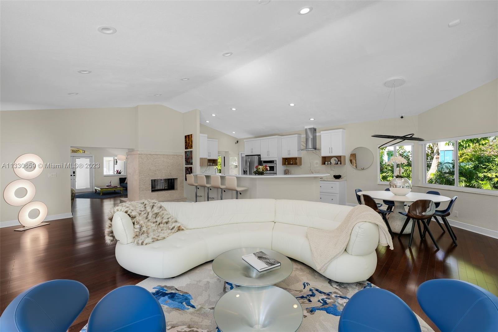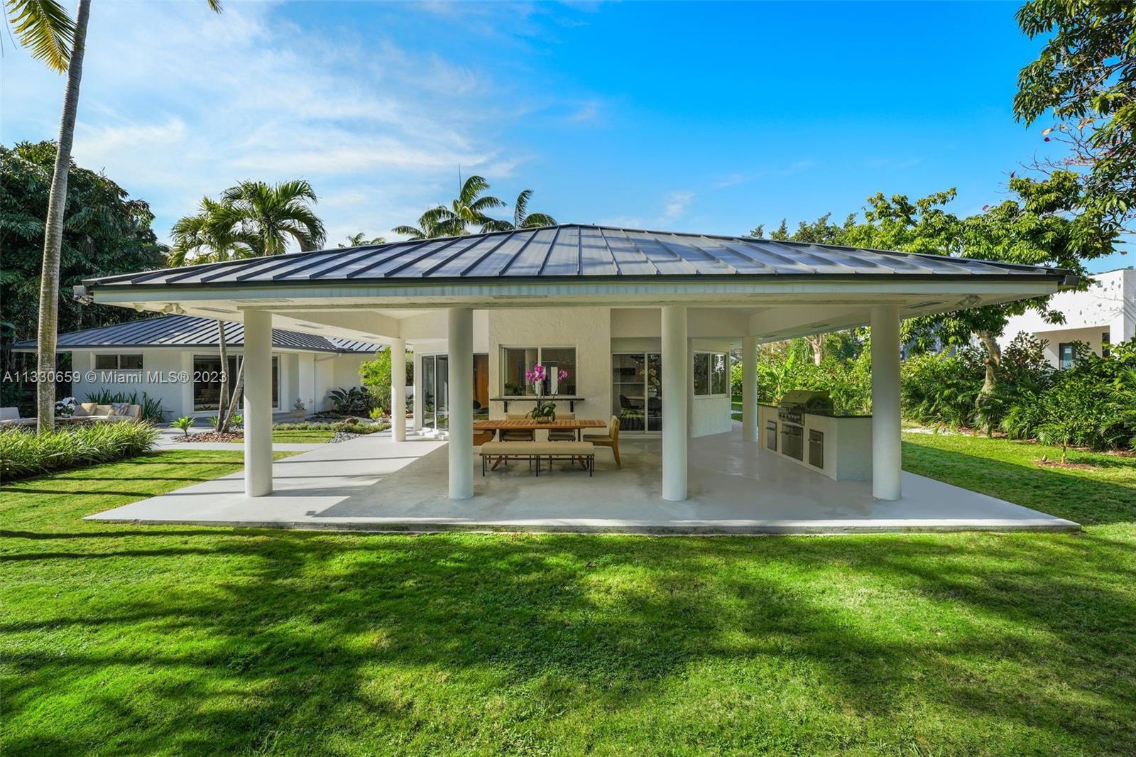 Stunning and sophisticated home located on a quiet street of Pinecrest. Extensive 2021 renovations, this home sits on a 20,000 SF lot offering privacy, tranquility, and luxury with a lush tropical patio & pool area, zen garden and fruit trees. Spacious 5 bed, 4.5 bath home with open floor plan, high ceilings and tons of natural light. Living & dining all open & overlooking the lovely pool & deck that was newly resurfaced, perfect for those that like to entertain. Additionally, home features a modern kitchen,new appliances,cabinets & quartz counters;wine cooler/bar, summer kitchen, wood floors; new impact windows/doors; all new wifi controlled AC units, new metal roof & a pristine 3-car garage. Excellent location close to several parks & top private schools.Perfect for raising a family!