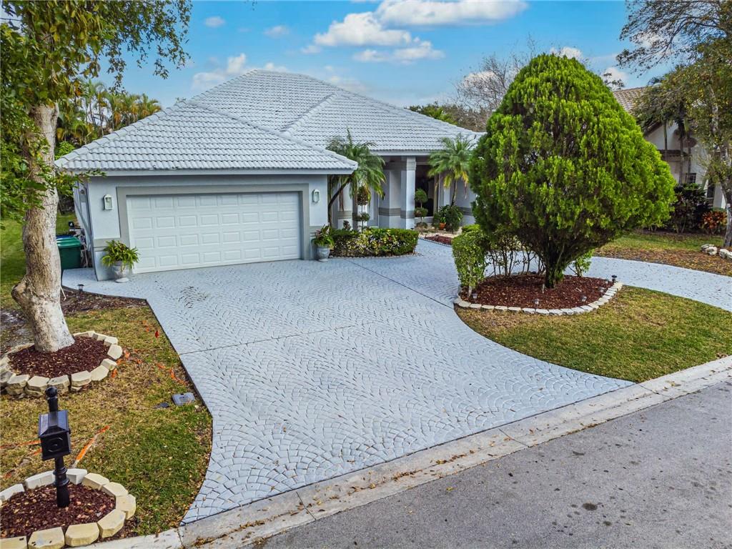 Beautiful One Story Home Located in the Prestigious Gated Community of Eagle Trace! This Property will require some updating. The seller is motivated - make an offer! 5 Beds / 3 Baths, Converted 2 Car Garage with 34" Porcelain Tile Flooring, Central Air Conditioning, Use for an office, media room, or Man Cave. 3,232' Living Area, Double Sided Fireplace, Screened In Pool. Triple Split Floor Plan, Cabana Bath for Easy Pool Access, Large Laundry Room with Storage and Sink, Renovated Quartz Counter Kitchen, New Appliances, Quartz Island & Countertop Dining. Eagle Trace offers the following Amenities: Tennis, Pickleball, Basketball, Tot Lot, Community Pool, 24 Hour Security and The Former PGA Golf Course. Close to Sawgrass Expressway, shopping, Restaurants & Schools.-