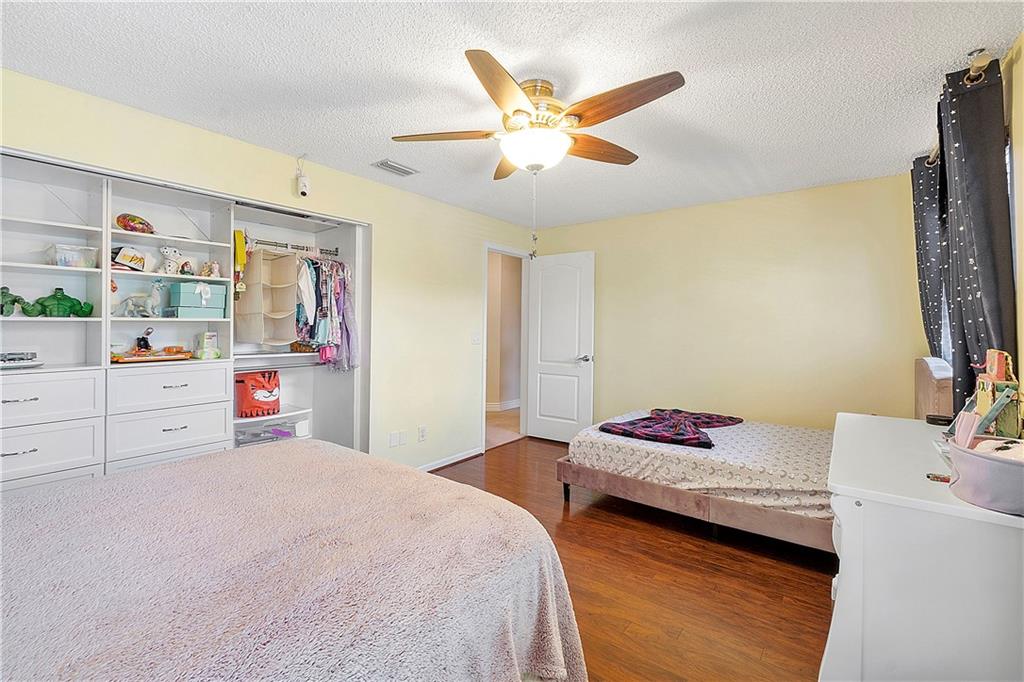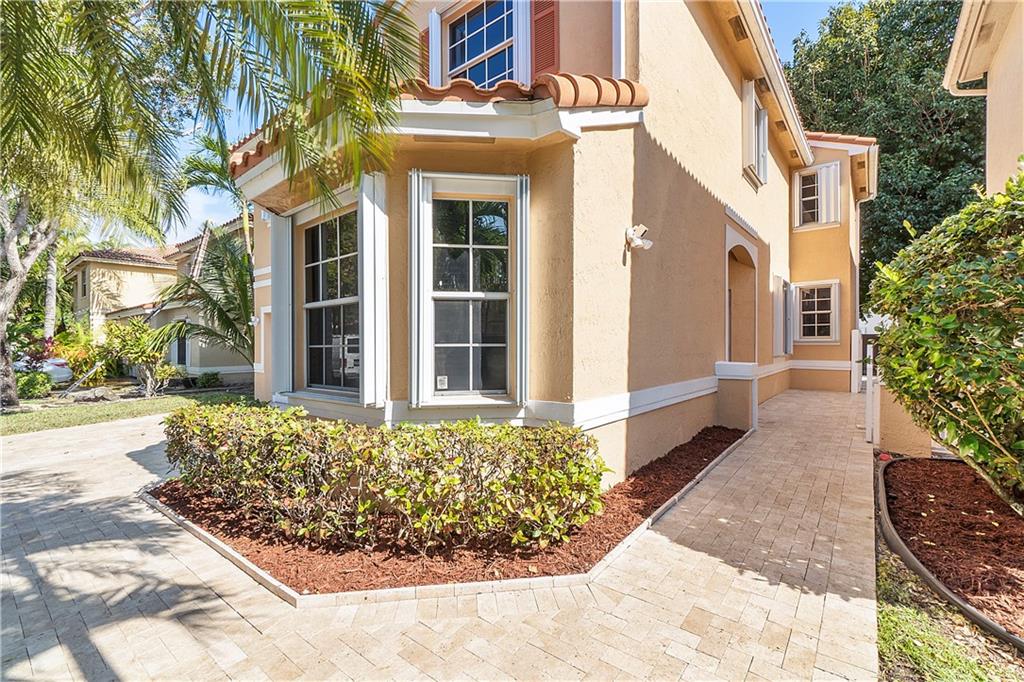 Introducing a beautiful open floor plan! 4 bedroom 2.5 bathrooms located in the desirable gated community of Kensington Green. New Roof (2017) , Travertine pavers for an expanded driveway, walkway, & patio. Impact windows & doors/accordion shutters,insulated garage door, plus a 5 ton AC(2020). Recently painted inside and out. This home boasts a fenced-in backyard for privacy. One bedroom/office on 1st floor. All rooms have high-speed internet & network jacks. Wood laminate floors in all bedrooms. The great room has high ceilings & wired for surround sound. The kitchen boasts granite counters & SS appliances/pot filler. Large trees in the backyard provide privacy. The home is equipped with a fully functional cloud recording alarm system. Low HOA, close to top schools, shops & highways.