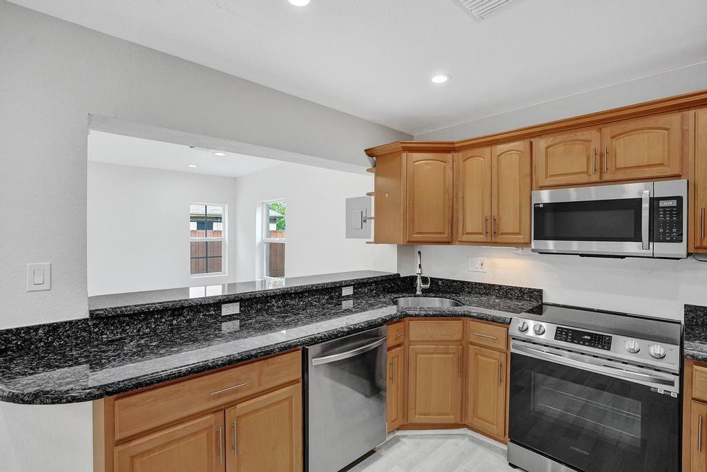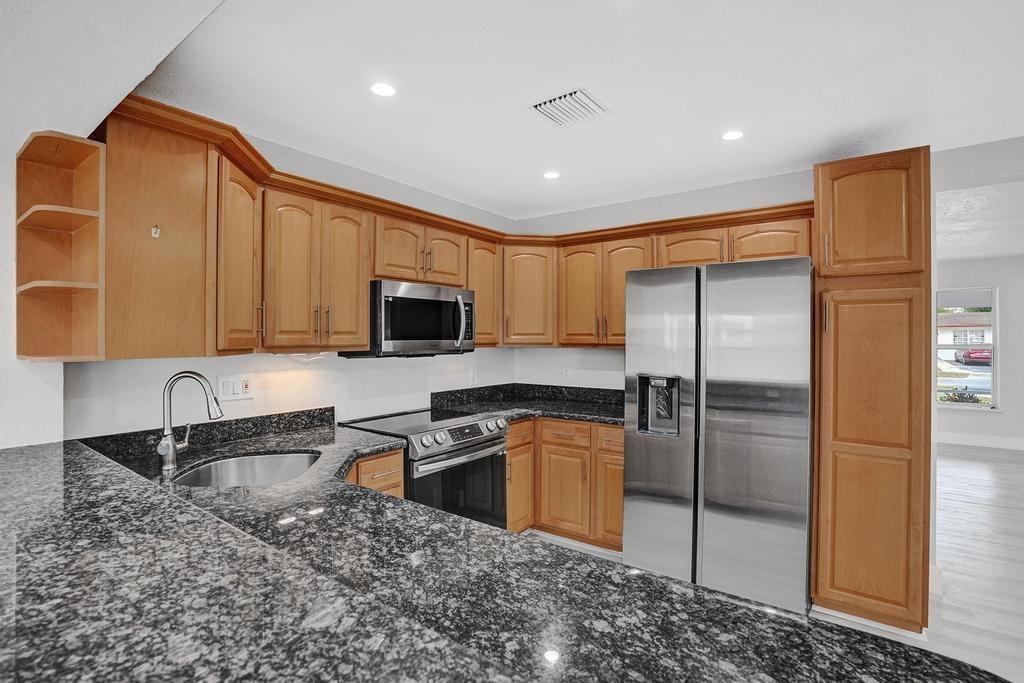 4 Bedroom 2 Bath with 1 Car Garage in Riverland Section of Ft. Lauderdale. The Open Floor plan property has an upgraded kitchen with granite countertops, Samsung Stainless Steel Appliance Set, New Roof, New HVAC system, jacuzzi tub in hallway bath, vinyl waterproof floors throughout, LED lighting, 1 car garage with oversized laundry room area, new Hot Water Heater, fully fenced with large storage shed in back yard and lush landscaping.