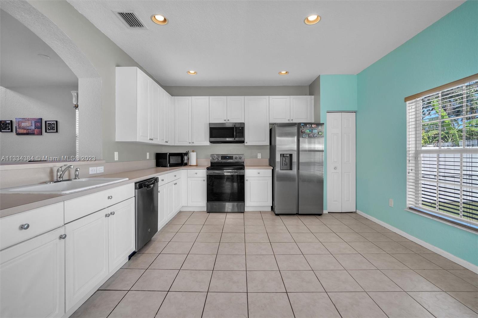 Beautiful and spacious single-family home in the desirable Monarch Lakes development in Miramar. Soaring two story high ceiling as soon as you enter. This home is very spacious, has plenty of natural light, high volume ceilings and neutral tile throughout the first floor and wood floors upstairs. Great layout for the Living, dining and Family room with an open concept kitchen with new SS appliances overlooking living room. Large master bedroom with hardwood floors and a walk-in closet; master bathroom with roman tub, standing shower, and dual sinks. Split floor plan upstairs. Backyard is completely fenced - in with covered siting area great for entertainment. Close to highways I-75 and Turnpike, shopping stores and malls, Great schools, and recreation parks.