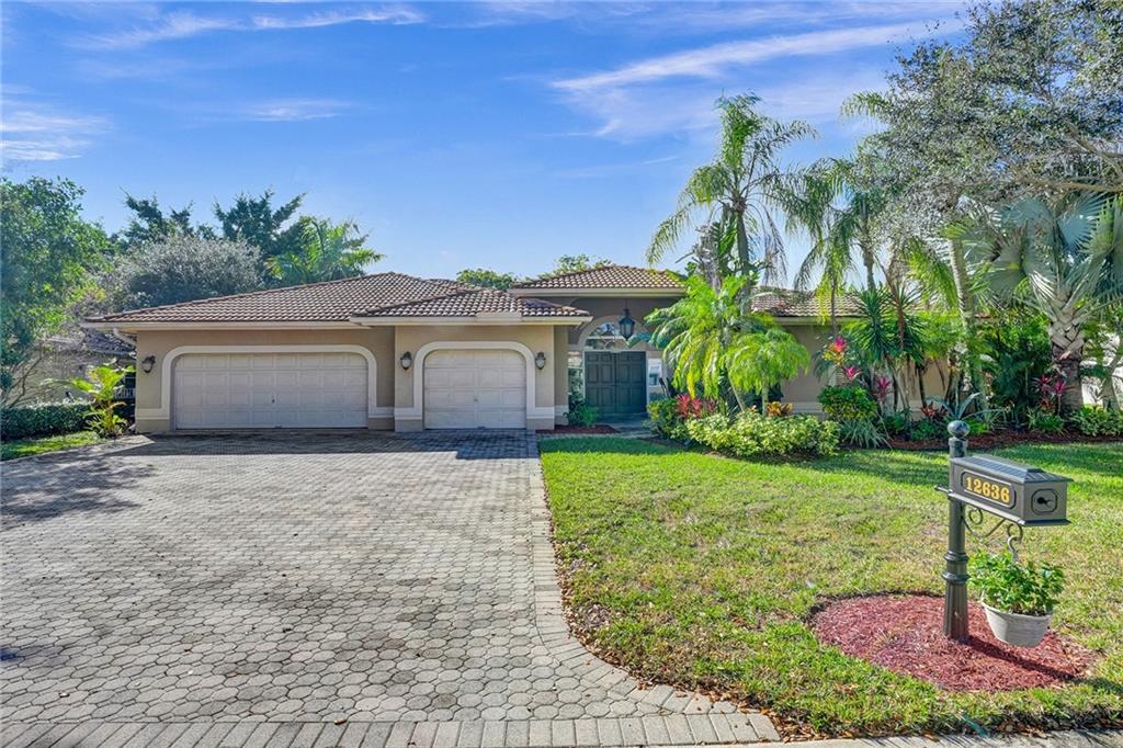 Enjoy the lifestyle that we all look for in South Florida. Stunning courtyard 15X30 pool home, 5 bedrooms, 3 1/2 bathrooms which includes the mother in law suite/guest house. 3 car garage, split bedrooms, jack & jill bathroom. Enjoy the open concept perfect for entertaining family and friends. 15ft" ceilings, tons of natural light, walk-in closets, covered back patio to enjoy your morning coffee. Quite cul-de-sac street, 24 hour gated community, which offers golf course/tennis courts, basketball, pickleball and playground in the highly sought after Eagle Trace community. "WELCOME HOME"