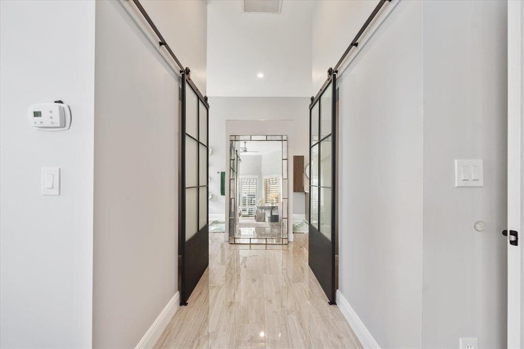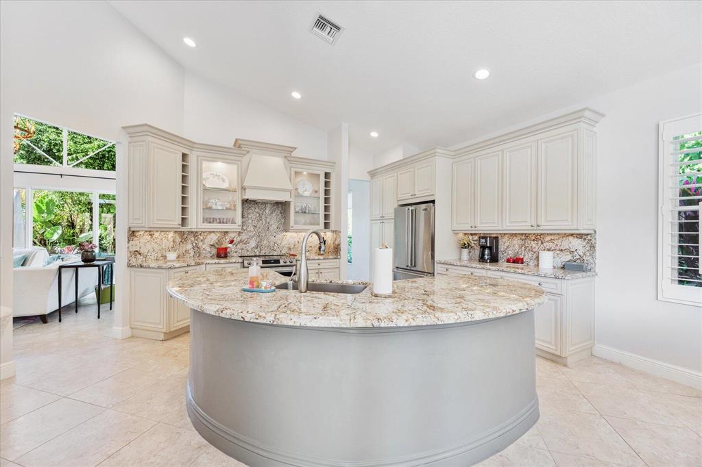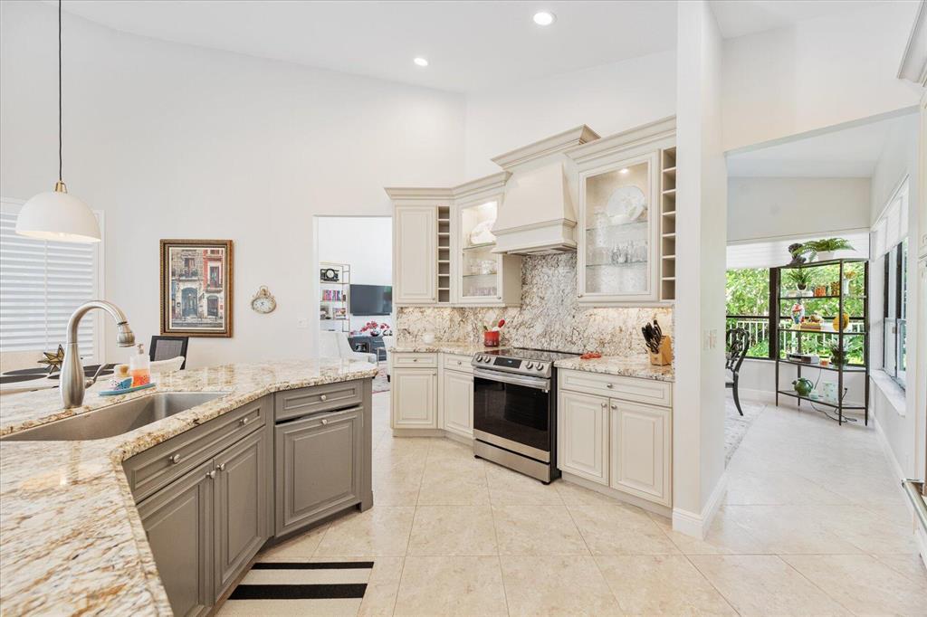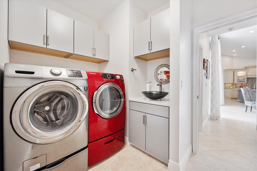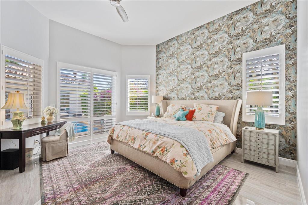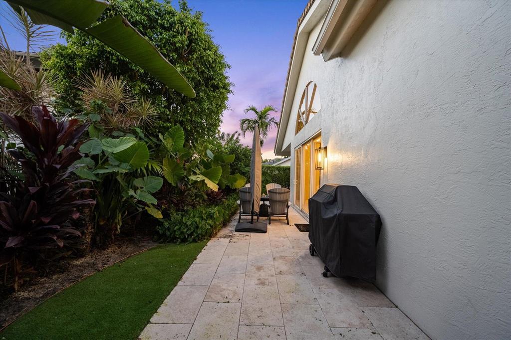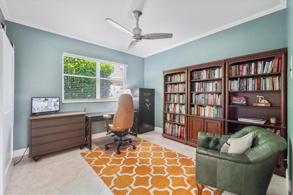 Private & beautiful one story courtyard home w/ a heated saltwater pool. Main house is 2 BR/2.5BA plus a 1 BR/1BA guest house, ideal for a student, in-law, or an office. Open floorplan with split bedrooms, high ceilings and many updates including renovated bathrooms, tile floors, open family room to the kitchen with a breakfast area, Newer appliances; a Viking refrigerator, Samsung range and a Maytag dishwasher, Hurricane sliders, Travertine marble pavered courtyard and driveway. Roof is only 7 years old. Spacious master bedroom suite w/ two Large walk in closets and a grand bathroom with a free standing tub, walk in shower and separate vanities. Nice laundry room w/ Samsung front loader washer & dryer and sink. Security System and Yale locks. Club membership is optional!!