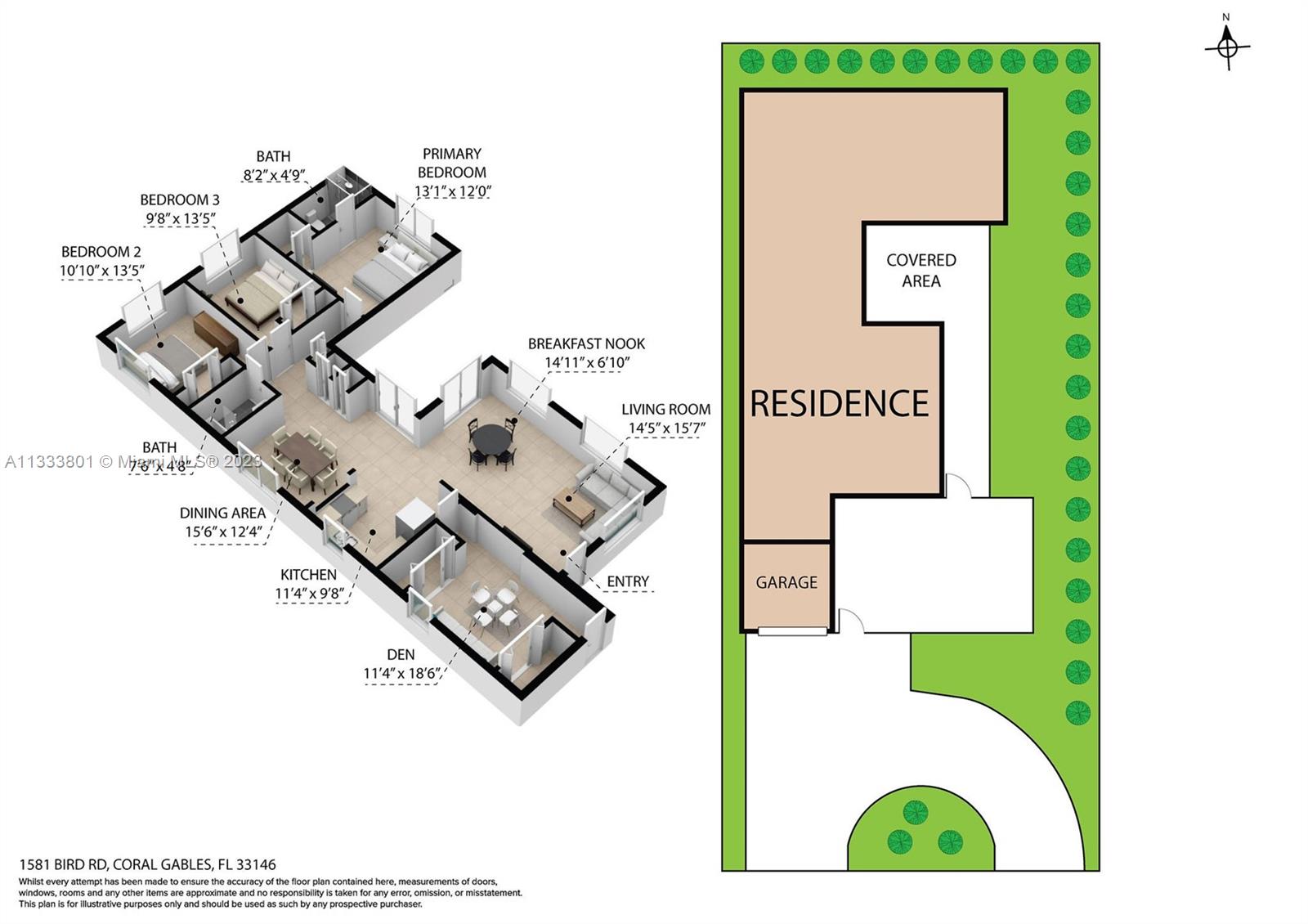 Immaculate home in Coral Gables central area close to the Biltmore, on Bird Road. Walk to shops and restaurants, including Milam's Market, Matsuri sushi, plus in the "ever so popular" David Fairchild Elementary school district! Don't judge a book by its street name - This home is quiet, well maintained, and substantially updated! The roof was replaced in Sept. 2021, plus has new air cond. system, updated kitchen and bathrooms, and travertine marble flooring. Nice master suite with walk-in closet. Work from Home! Den /office in encl. garage. Great layout, accordion shutters for all windows. Ample fenced yard space is to the east of the property, with room for pets and play. Outdoor patio for BBQ and relaxation. This is a wonderful home, and well-priced for a no-nonsense sale.