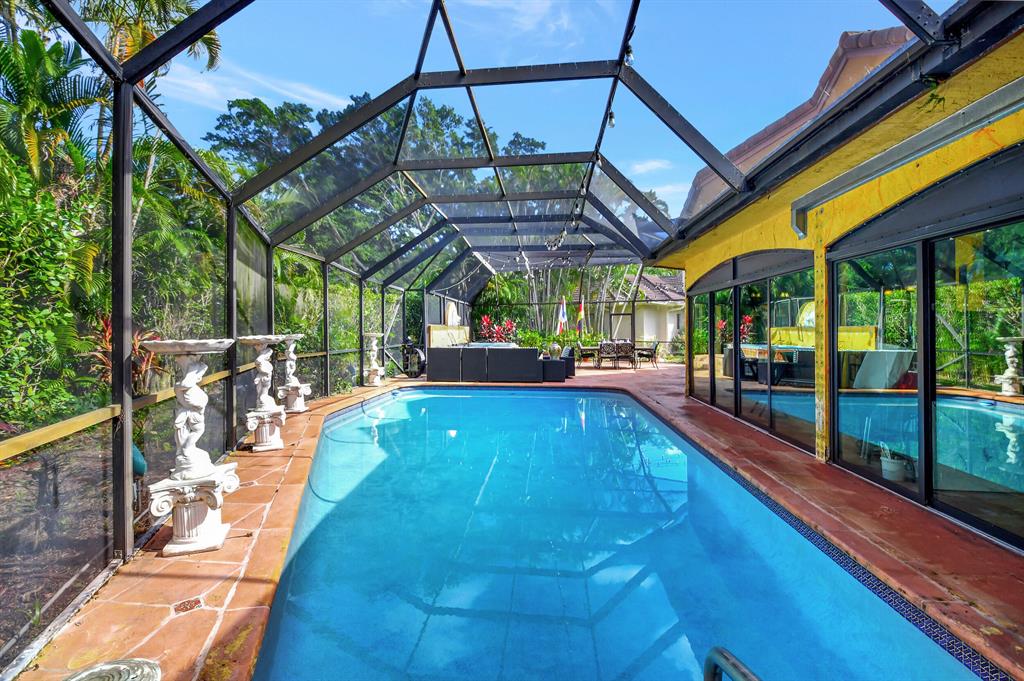 Impossible to replicate, this private, custom built estate home in Broken Sound is one of those collector-quality homes. Located in Water Oak Estates at over 3000 SF, this 3 bedroom + library or 4th bedroom, 3.5 bath, home is grandly scaled for lavish entertaining while offering intimate spaces for everyday. Inside you will find coral stone fireplaces, a gourmet kitchen with oak cabinets, large breakfast area and snack bar. The master suite includes a one of a kind oversized closet, dual sinks, a soaking tub and large walk-in shower. This home offers an indoor/outdoor lifestyle with enclosed lanai or art studio, a screened free from heated pool, spa, and summer kitchen. This is a unique and magnificent estate you do not want to miss!