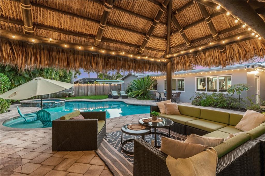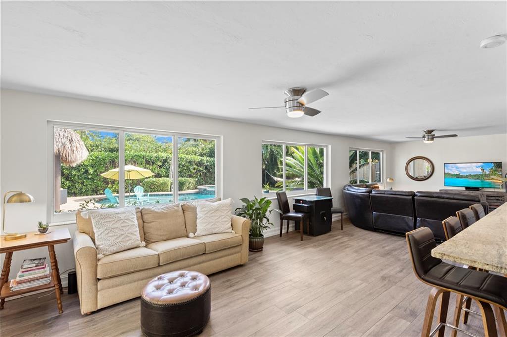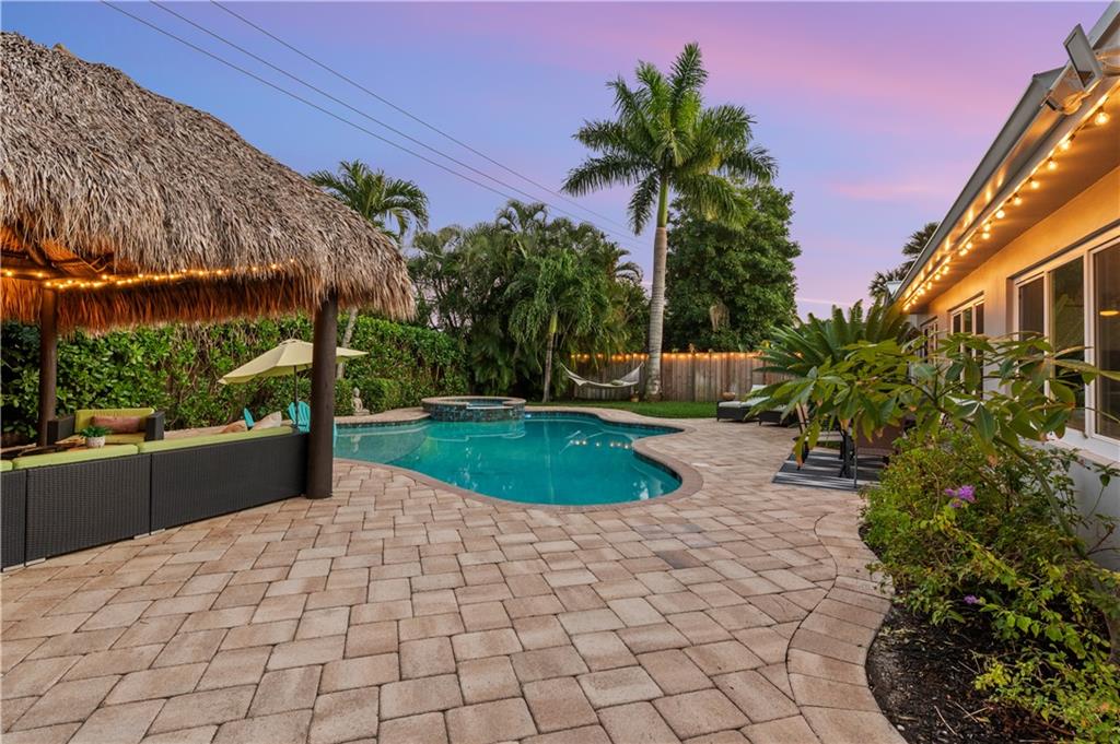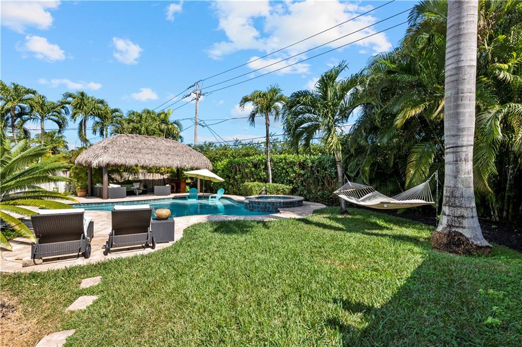 Beautiful Tropical Oasis nestled in the Prestigious Imperial Point area. Move-in-ready home features a tropical landscape, large swimming pool with sun shelf, oversized in-ground hot tub flowing into the pool, outdoor heated pool shower and covered bar. Spacious 3 bed 2 bath home offers two dining areas, large walk-in pantry accessible to kitchen, beautifully updated kitchen with granite countertops, top of the line appliances, large breakfast bar for seating, indoor laundry room, multiple living areas, wood look tile, updated bathrooms, recess lighting and so much more. This home comes with a metal roof and hurricane impact doors and windows. New exterior paint and landscaping gives the perfect curb appeal. All cast iron piping has been replaced with PVC. This home is ideal!