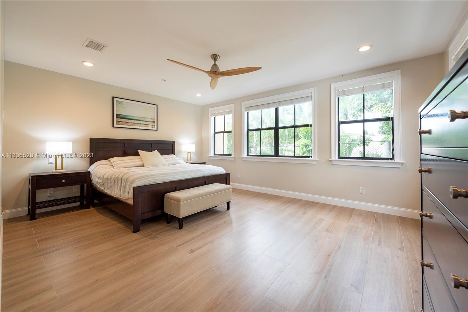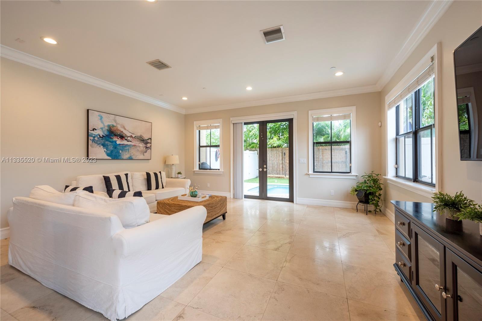 Nestled against the backdrop of swaying palms and the glow of orange/pink sunsets find this stunning tri-story end unit townhome located in sought after Coral Ridge. Inside you're greeted by soaring ceilings & a bright, flowing layout. The kitchen will bring out your inner chef w/new smart appliances, well planned quartz work surfaces & island. The second floor contains the primary bedroom w/dual walk-in closets, a spa-like bath w/jetted tub to help melt the day's stress away and a 2nd bedroom that spills onto an open-air balcony. Up the stairs or via the elevator, the 3rd floor has a bedroom w/vaulted ceiling, a full bath as well as an open living area and huge wrap around porch. Just off the main level a private pool rounds out this fantastic property. NO HOA & daily rentals allowed!
