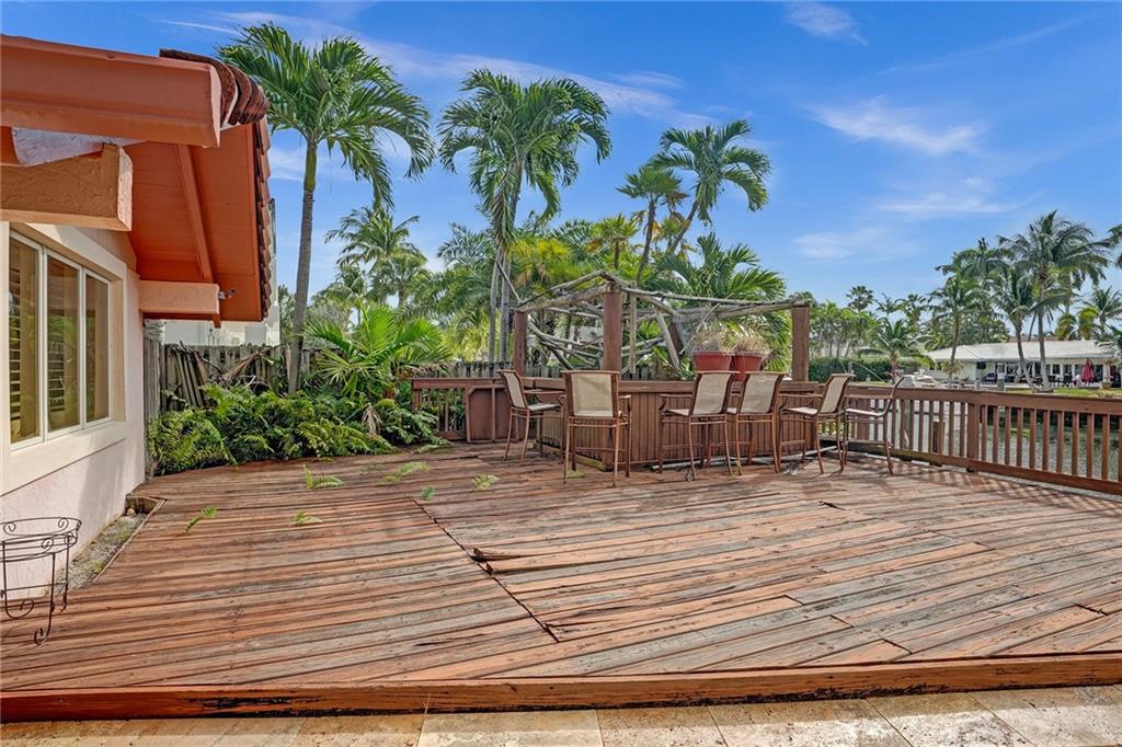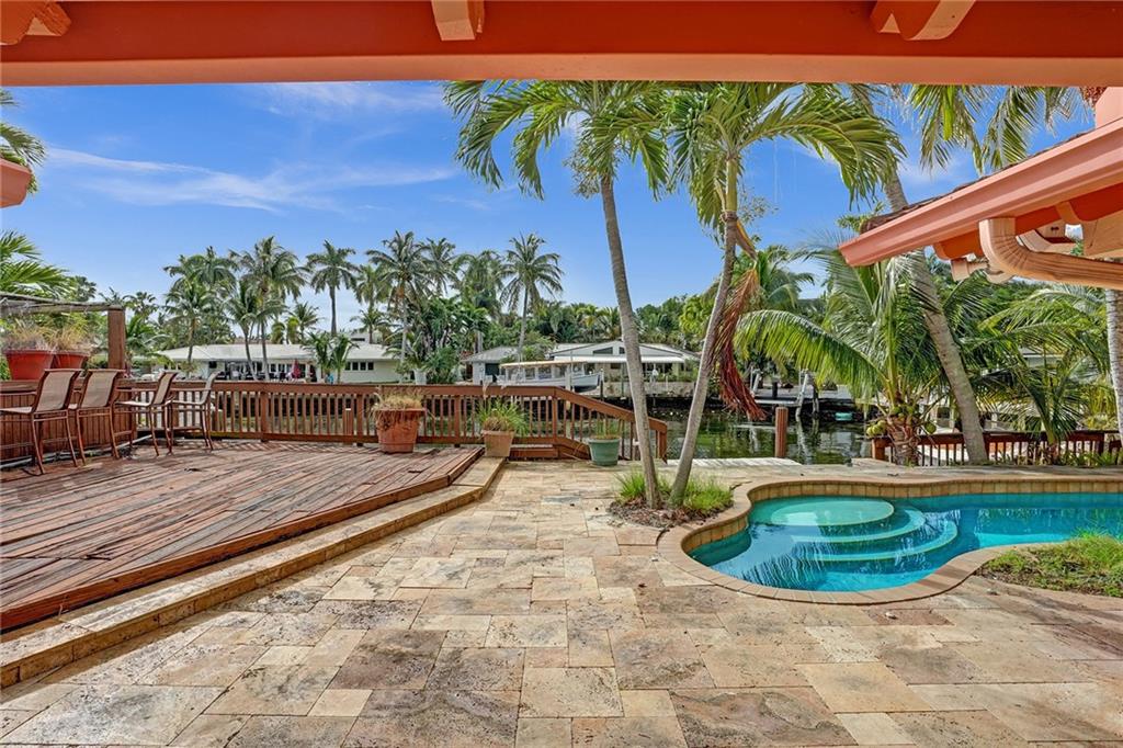Great opportunity to add value to this waterfront in Coral Ridge! Located on one of the wider canals (approximately 115 feet) and offers 70' of Deepwater. Amazing vaulted ceilings in the living areas and bedrooms. This home is a true 3 bedroom, 3 bath & offers two primary suites. Large laundry room and large 2 car garage. Main primary suite overlooks the pool with spacious walk in closet & bath. This is a great house to renovate as it already has an open floorplan, a split bedroom plan and tons of light. Hurricane Impact windows and doors. Bayview school district.