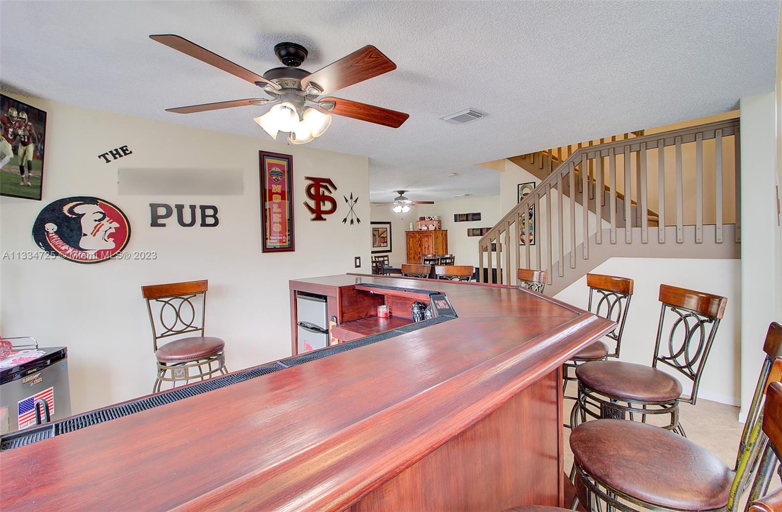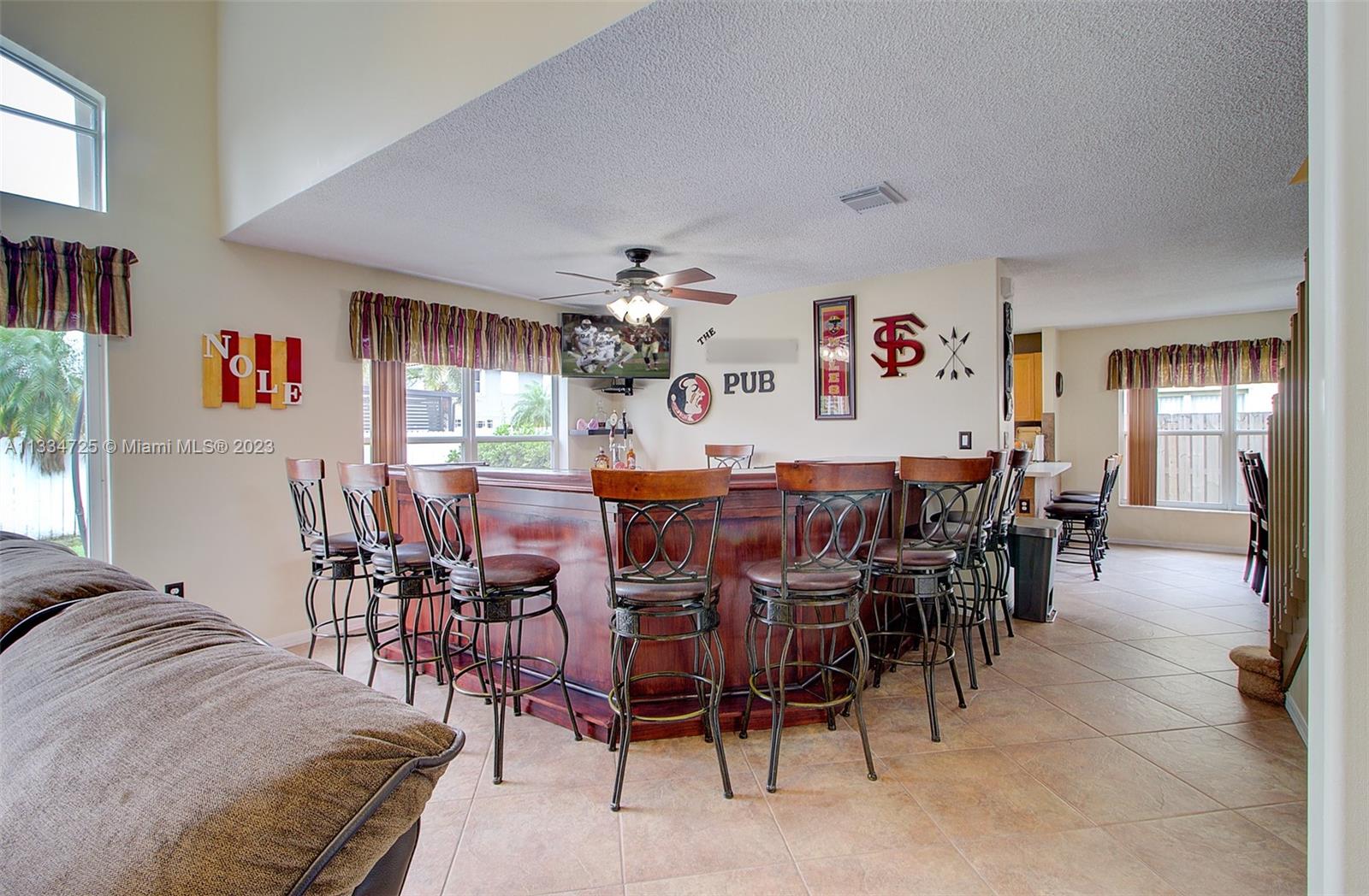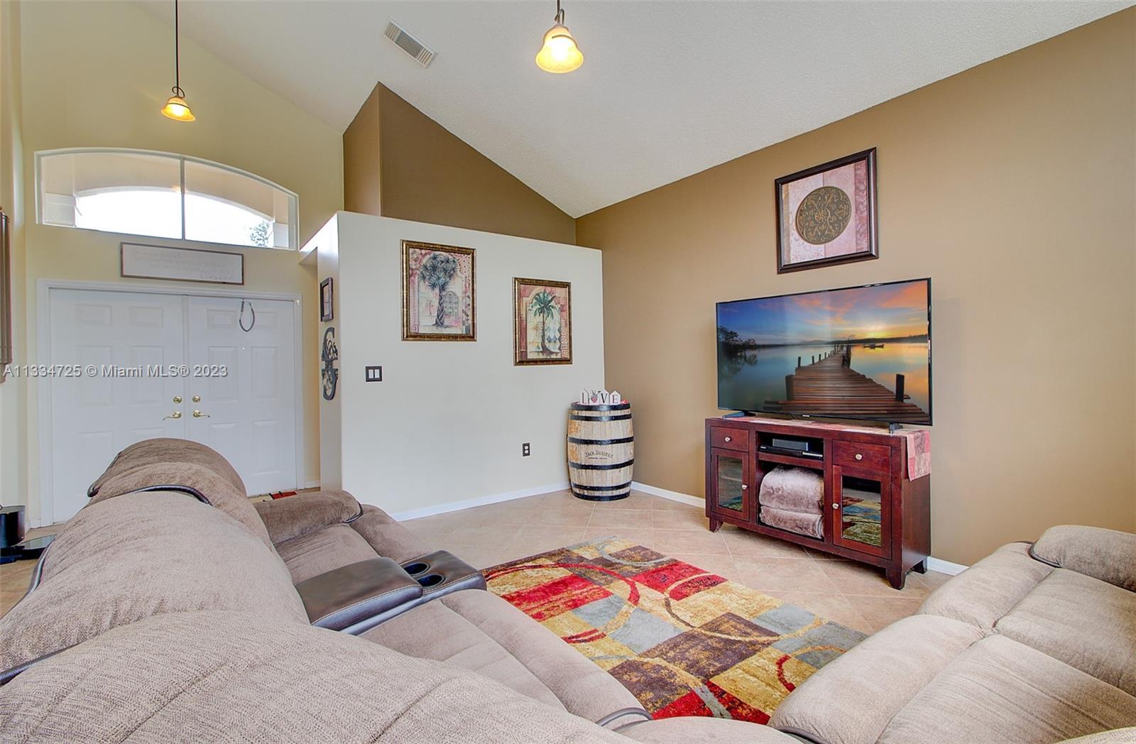 Amazing 2-story single-family home in beautiful, gated community of Keystone Lake in Western Pembroke Pines. CBC construction, 3 bedrooms, 2.5 bathrooms with loft easily convertible to 4th bedroom. With over 2000 sq. feet of living space and a lot size of over 7000 sq. feet, this home is perfect for families. The property boasts a new roof (2019) and hurricane shutters/panels throughout. New refrigerator and dishwasher (2022), microwave, oven, garbage disposal, and washer/dryer. The custom-built bar adjacent to the living room, complete with bar stools, makes this warm and inviting home ideal for entertaining. Large backyard offers ample space for a pool. Neighborhood surrounds a serene 143-acre lake with access to beautiful Chapel Trail Park. Very friendly community served by A+ schools.