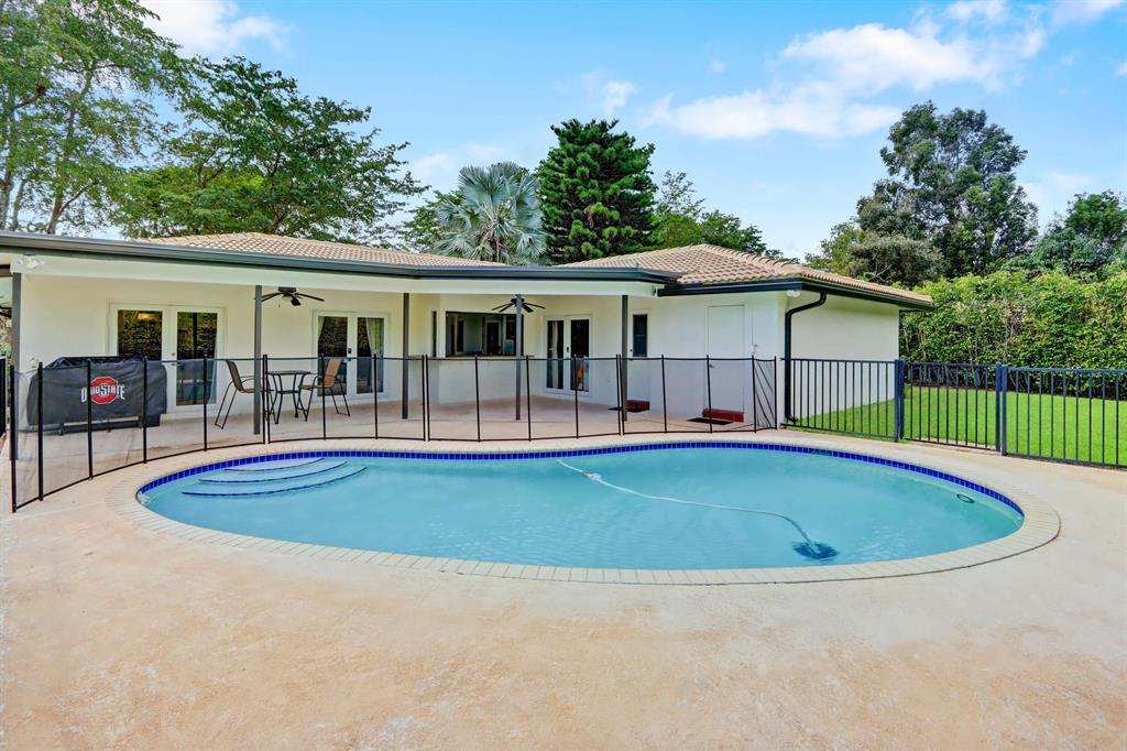A rare find in Millpond, a most desirable community in Boca Raton. This one-story home of 3 bedrooms & 2 1/2 baths located on a quiet cul de sac on over 1/4 acre offers a beautiful sunny oversized fenced backyard with a large pool. This home features hardwood flooring; flat walls,knockdown on ceilings. The kitchen offers dark wood cabinets, granite counters & backsplash,stainless steel appliances. The remodeled primary & secondary bathrooms feature white self-closing cabinets,marble counters, porcelain flooring & subway tiles in the showers. Roof-2021; AC-2019,ceiling fans-2019,new door hardware-2022;travertine porch-2022;updated irrigation system-2020;security system-2019 with ring doorbell,floodlights,3 keypads,motion & window sensors,CO detector;keyless entry at front, garage & side do