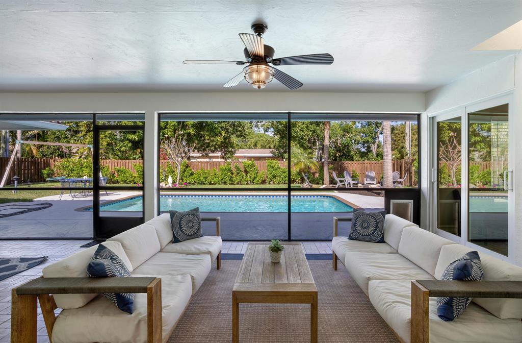 Quietly nestled on an expansive lot in the illustrious enclave of Palm Beach Farms in Boca Raton, this stunning four-bedroom, three-bathroom Coastal estate features striking oversized pool, built-in firepit, and a sprawling screened-in loggia, idyllic for enjoying the sunny South Florida lifestyle. With verdant tropical flora spanning the residence's front and back yards, this charming estate impresses at every turn.