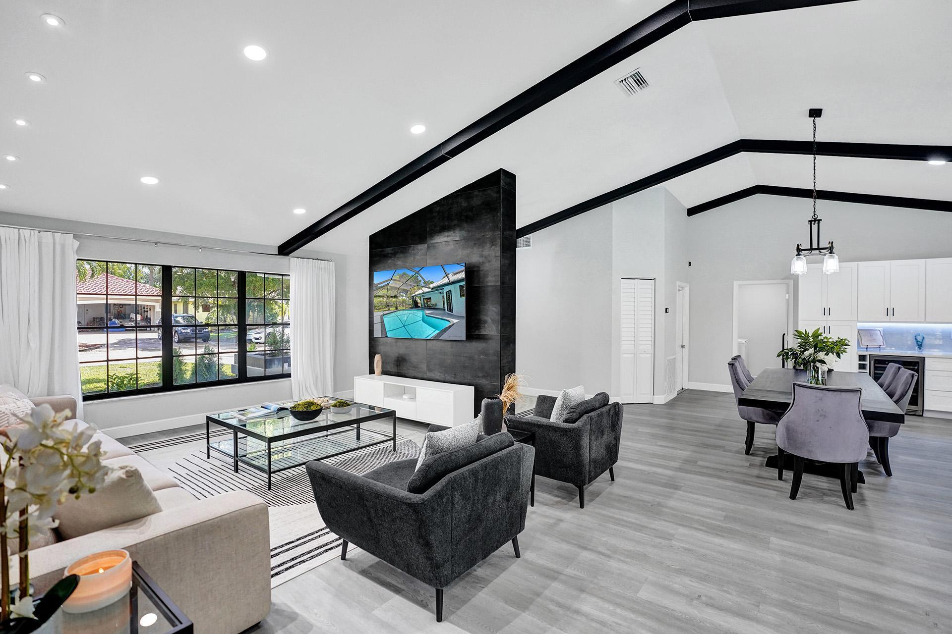 Situated On A Spacious Corner Lot In The Exclusive Family Friendly Neighborhood Of Hidden Hammocks Sits This One-Of-A-Kind, Completely Renovated Modern Beauty With Coastal And Farmhouse Vibes. This Jaw-Dropping Furnished Pool Home Offers Unmatched Scale, Clean Lines And Custom Finishes. Experience South Floridas Indoor/Outdoor Living At Its Finest Here. As You Walk Through Your Double Front Doors You Are Welcomed With Soaring Ceilings With Mahogany Beams And Immense Natural Light. The Main Living Area Includes A New Oversized And Comfy Couch, Massive Dining Room Table All Opened To The Chefs Kitchen With Quartz Countertops, White Custom Cabinets, Top Of The Line Stainless Steel Appliances & Temperature Controlled Wine Cooler. Experience Privacy And Luxury In Your Spacious Modern Primary