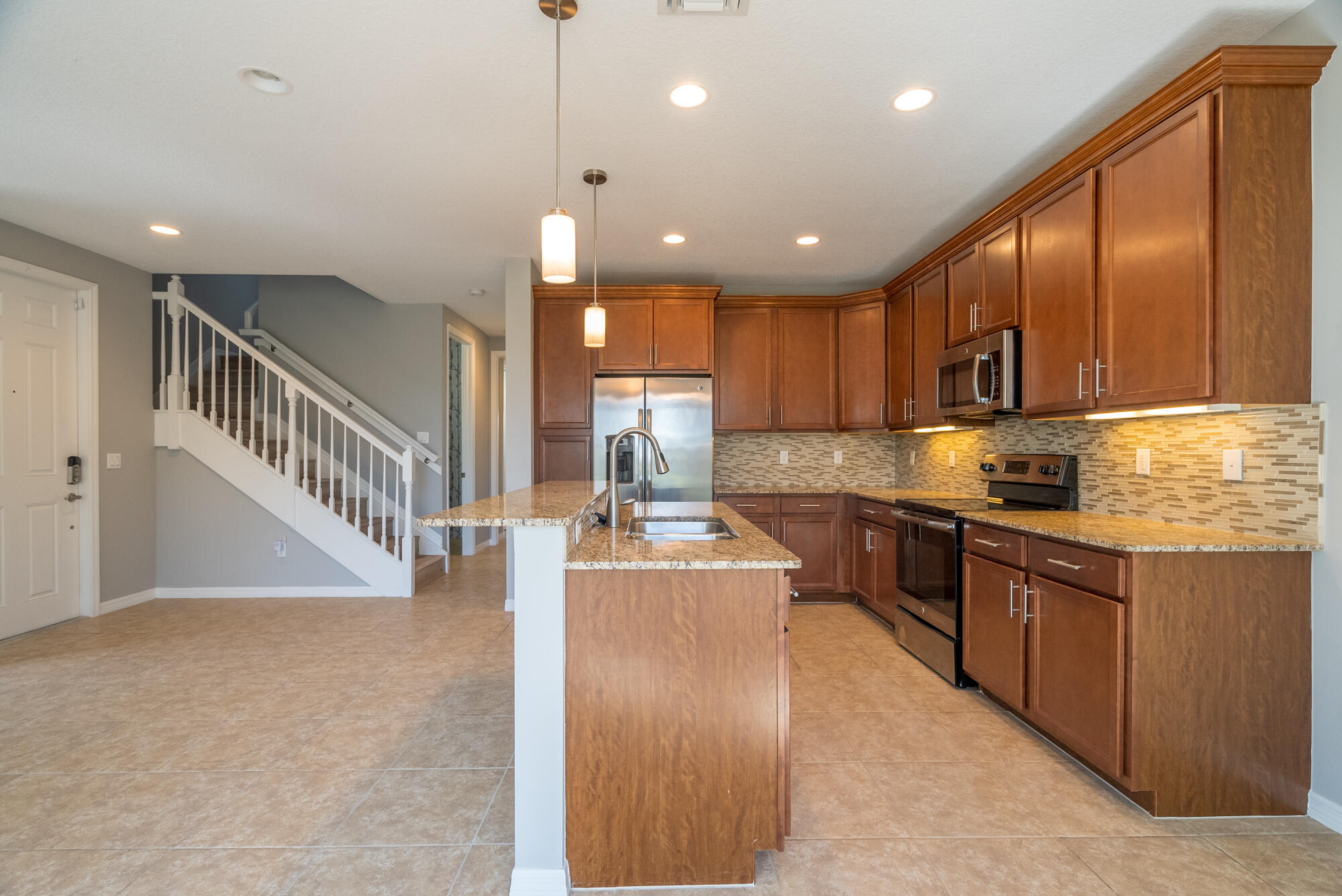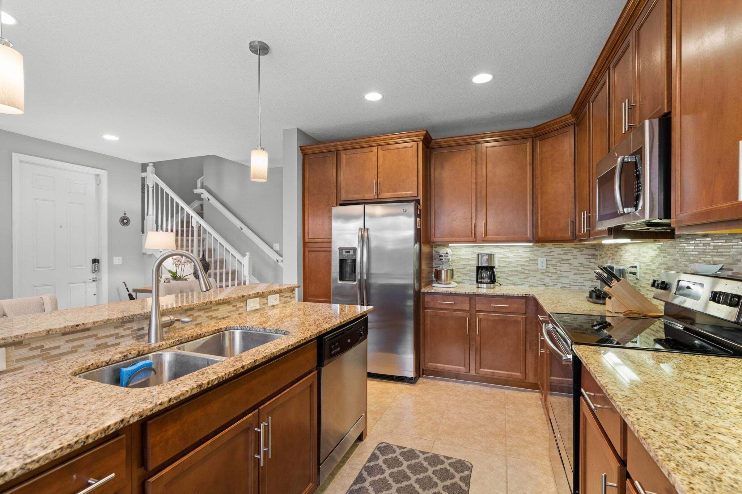 This beautiful 4 Bedroom 3.5 Bathroom Newer Construction Townhouse is complete w/hurricane-impact glass, New Luxury Vinyl Floors and is freshly painted. Open the front door and step into the open living room which connects seamlessly to the kitchen & patio, perfect for entertaining. On the first floor, you will also find an en-suite bedroom, 1/2 Bathroom & access to the garage. On the second floor is the spacious Master Bedroom, 2 additional bedrooms & the laundry closet. The Master Bedroom lacks no closet space with 2 walk-in closets and a large linen closet. The Master Bathroom is complete with dual sinks, a glass-enclosed shower and tub. Not to mention, the open patio is larger than most due to this being a corner unit. The community also features a pool, fitness center & guest parking.