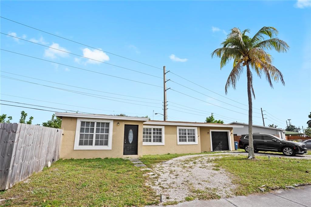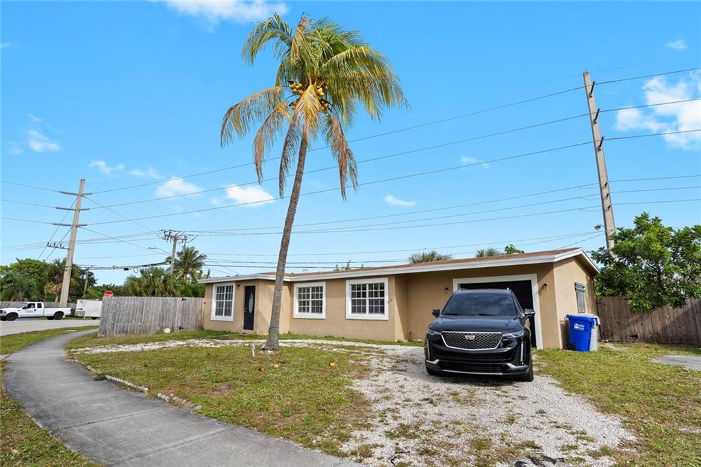 Great single family home nestled on a HUGE oversized fenced in corner lot. This property is located just West of Federal Highway and features tile flooring throughout, stainless steel appliances and large garage with tons of storage. This large corner lot has plenty of room for expansion, pool addition or parking a boat/RV. This home is currently tenant occupied. Perfect for owner user or investor.
