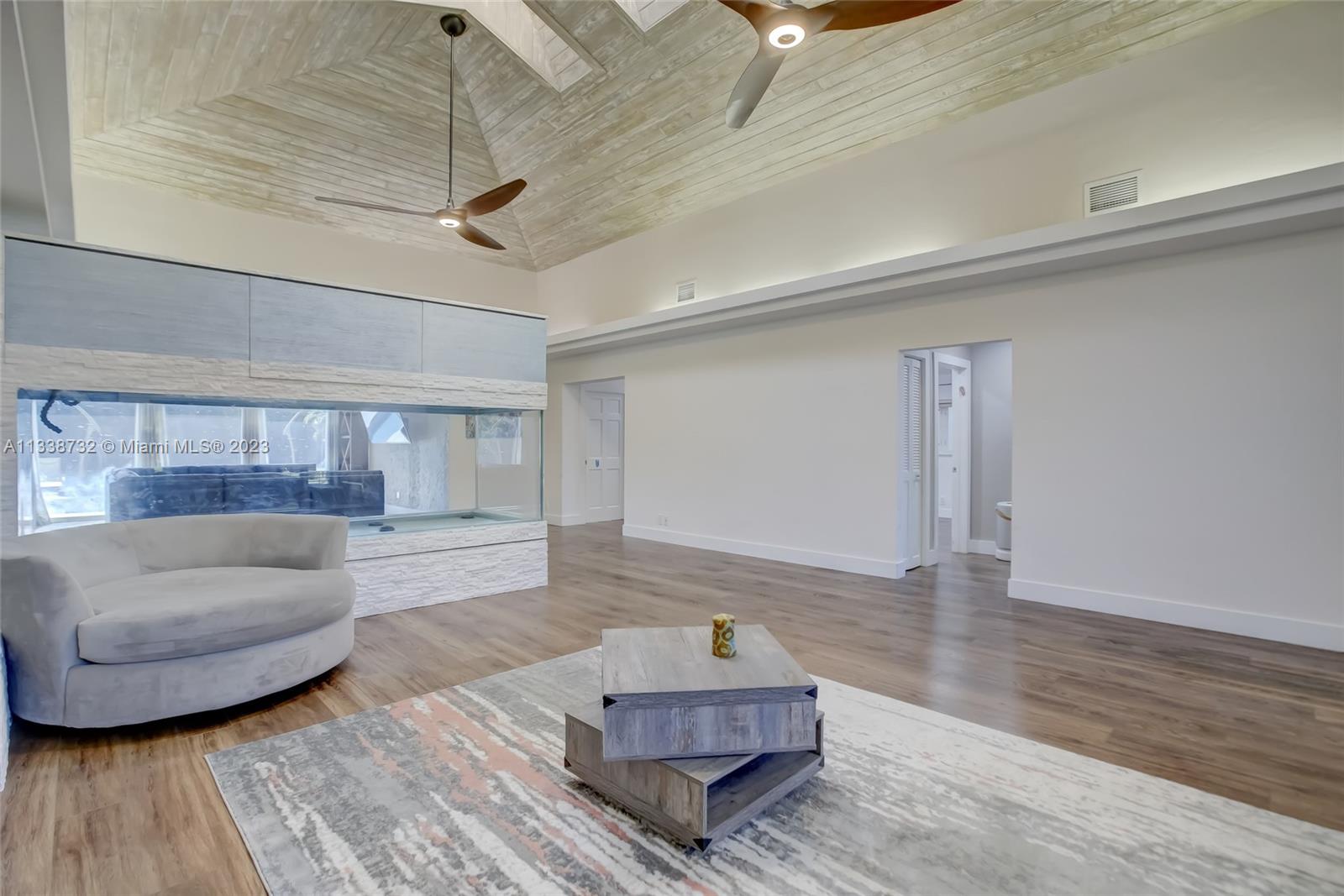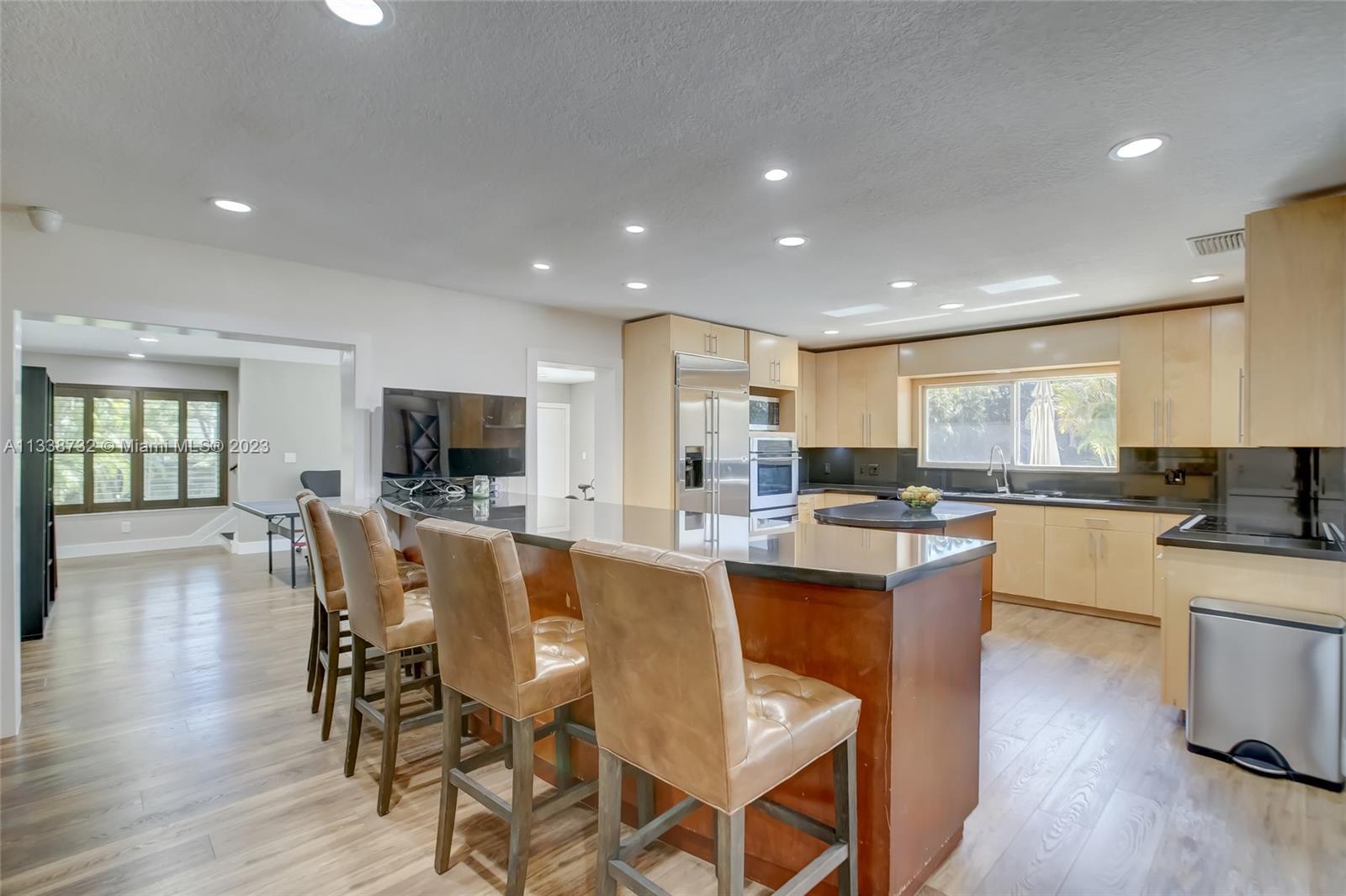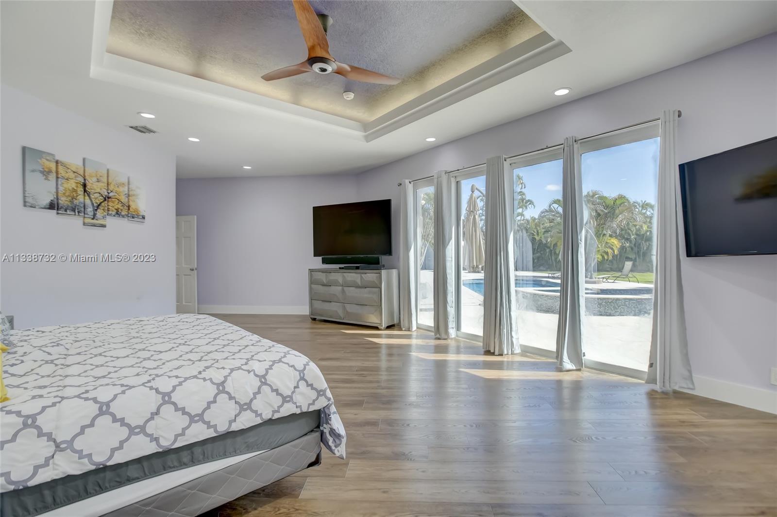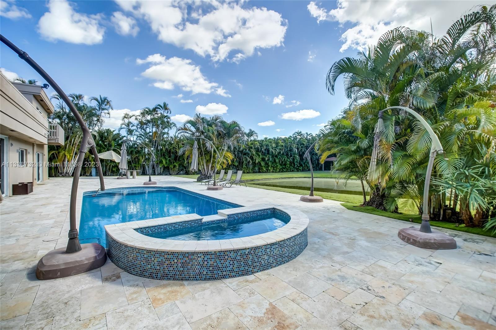 Private gated estate is an entertainers dream home on 1.5 acres of land in the heart of Davie. 5/3.5 baths + a bonus room that can be an office or gym featuring neutral laminate flooring in all main living areas and bedrooms. Huge open spaces including oversized great room with stone wall, and fireplace. Eat in kitchen with extended snack bar, granite counters, and wood cabinets. Expansive first floor master suite with 2 big walk-in closets, and master bath that features dual sinks, soaking tub, and step-in shower. Big secondary bedrooms with redone bathrooms. Amazing salt water pool and spa surrounded by endless travertine pavers. Impact windows except for the glass block. Expansive driveway for all of your cars, toys, boats, or RV. No HOA, minutes from 595 and 75.