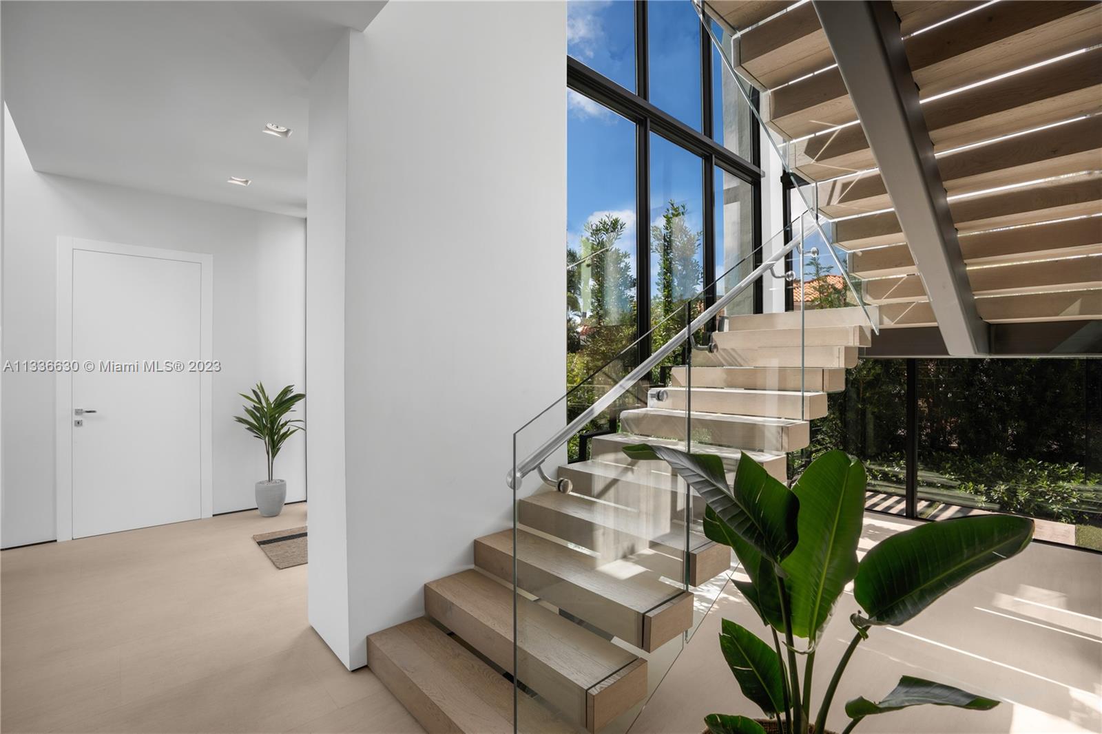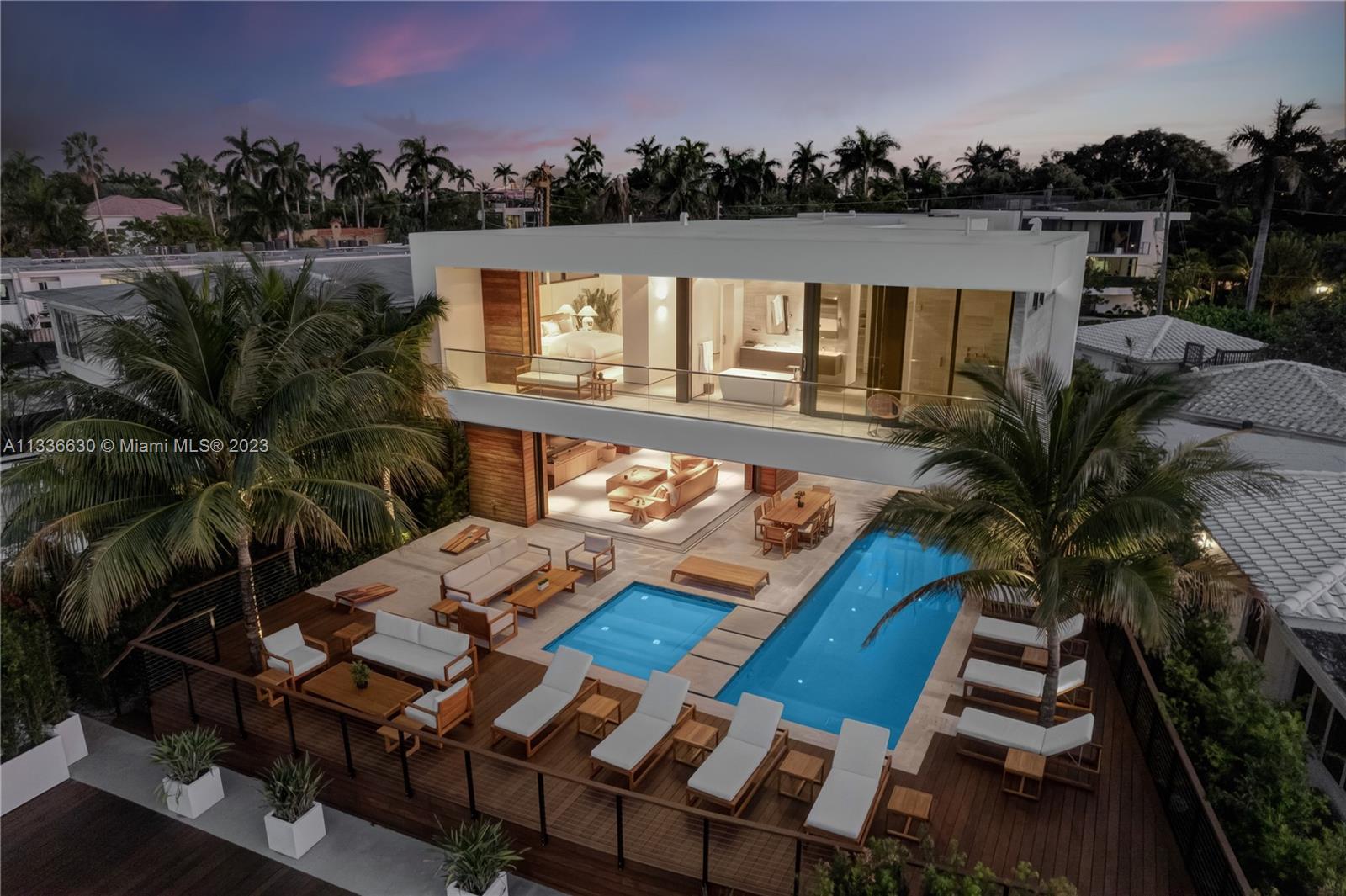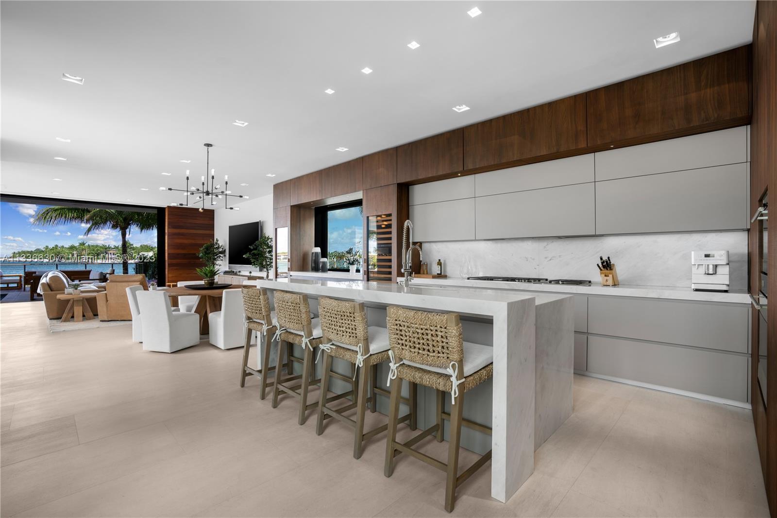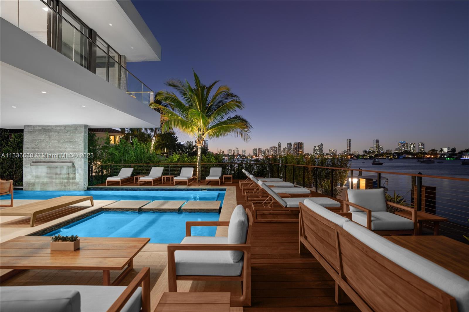 Stunning tropical modern home with westerly sunset views located on prestigious Hibiscus Island with 24/7 police guarded gated entrance. Wide bay Biscayne views upon entry to this luxury home, masterfully designed in 2017 by award-winning architect Choeff Levy Fischman. Indoor/outdoor living on ground floor is perfect for entertaining with its open dining and family areas, with five bedrooms and office area, spacious master bedroom with dramatic water views. Featuring custom Italian kitchen, oak wood floors, Crestron smart home system, floor to ceiling windows and a two car garage. New Ipe rear deck decking with expansive relaxing outdoor area, and lush landscaping provides resort style oasis rear yard including a salt water pool and spa, and private dock.
