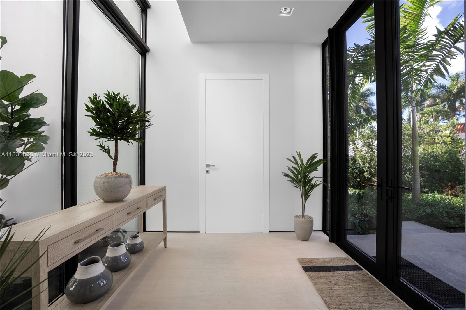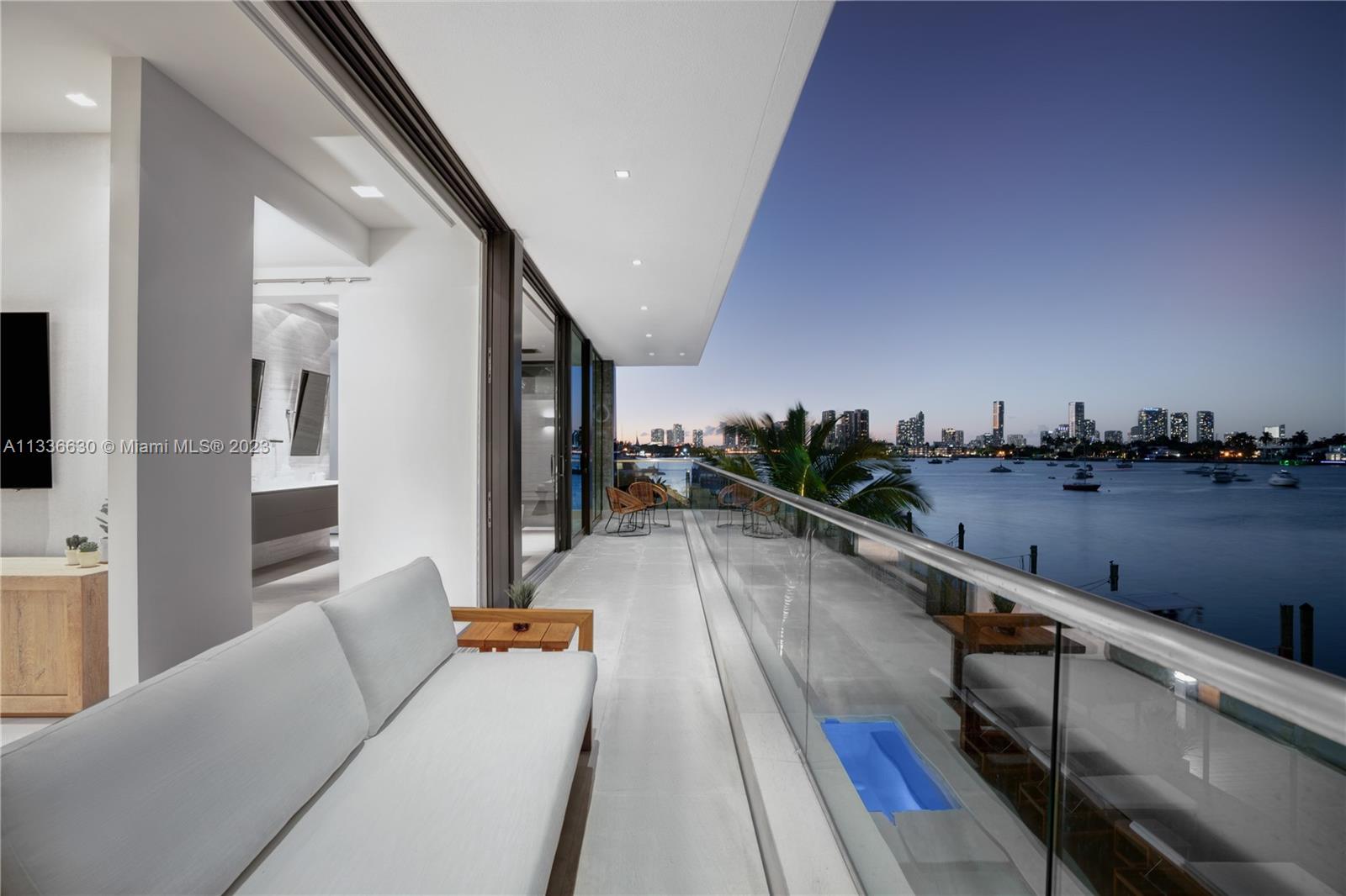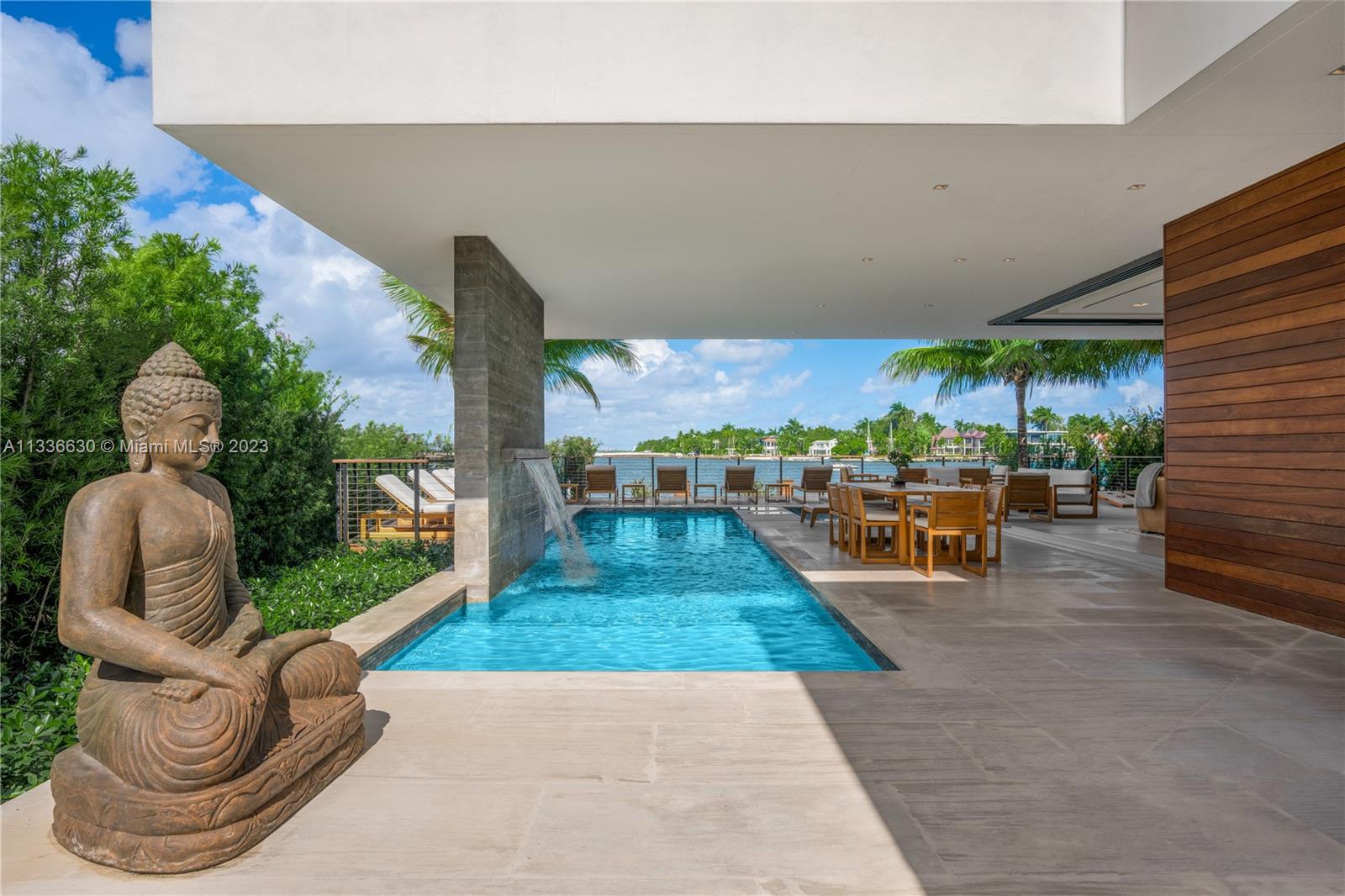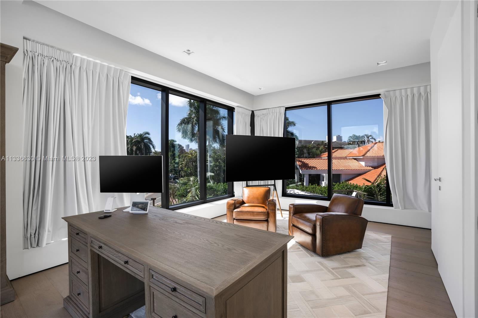 Stunning tropical modern home with westerly sunset views located on prestigious Hibiscus Island with 24/7 police guarded gated entrance. Wide bay Biscayne views upon entry to this luxury home, masterfully designed in 2017 by award-winning architect Choeff Levy Fischman. Indoor/outdoor living on ground floor is perfect for entertaining with its open dining and family areas, with five bedrooms and office area, spacious master bedroom with dramatic water views. Featuring custom Italian kitchen, oak wood floors, Crestron smart home system, floor to ceiling windows and a two car garage. New Ipe rear deck decking with expansive relaxing outdoor area, and lush landscaping provides resort style oasis rear yard including a salt water pool and spa, and private dock.
