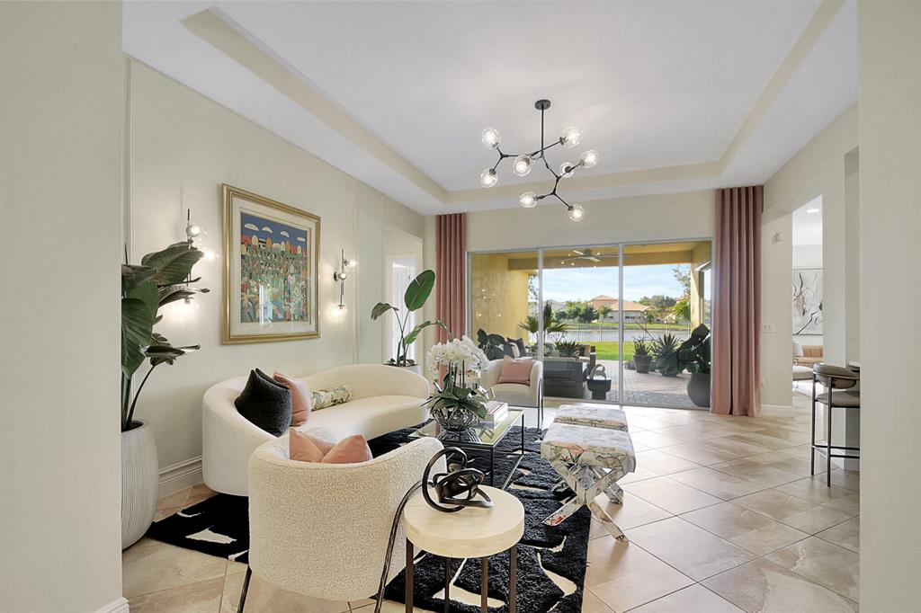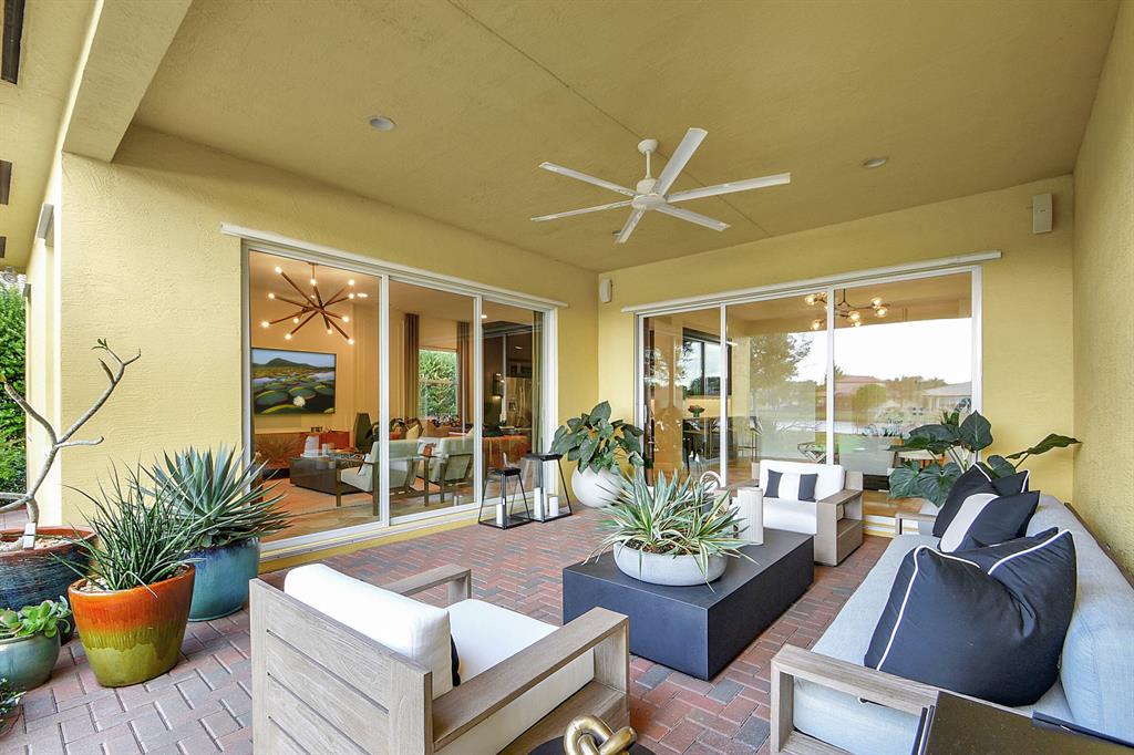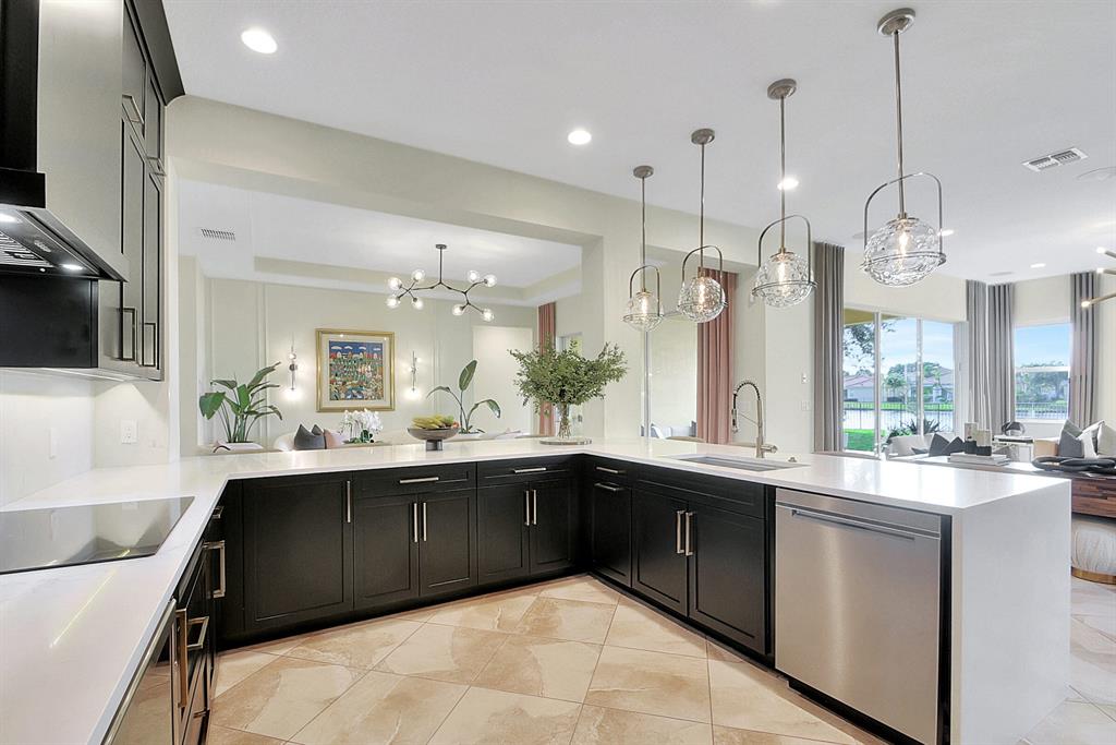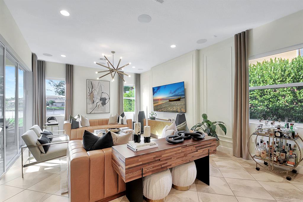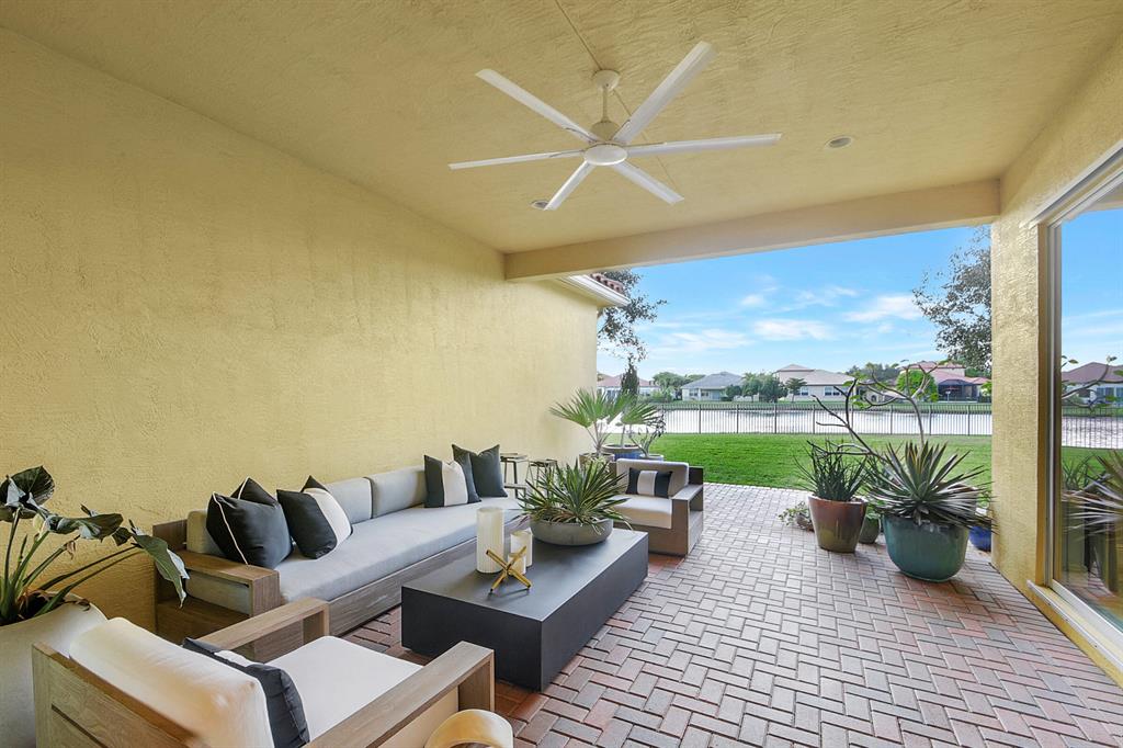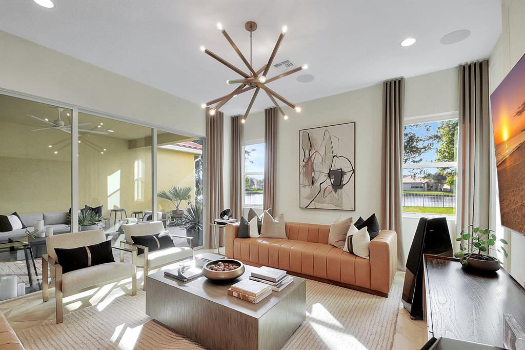 Decorator's masterpiece & elegance defines this home. 2 Master Suites! 4/4/2 + Den + 16x18 Covered Patio. Waterfront on 1/4 Acre Fenced LOT. Professionally designed & appointed. 12-10 Ft ceilings, custom Drapes, European cabinets w/pull-out drawers, luxury light fixtures(exclude dining rm chandelier), customized walk-in closets. Hide-away Home-Office in the DEN. 7 Chan blt-in KLIPSCH HTheater + THX & Marantz Receiver. Wrap-around Quartz counters & full backsplash, double oven, double wide extra deep refrigerator, Wine Fridge, Nest thermostat, built-in Pest control system thru-out, Wood Flrs in Bdrms, tile elsewhere. Tons of natural light. We are close to Downtown West Palm, PBIAirport, ALL shopping & restaurants, 2 major Hospitals, the Beach, 300 Acres park,Tpk & I95. Low HOA as well.