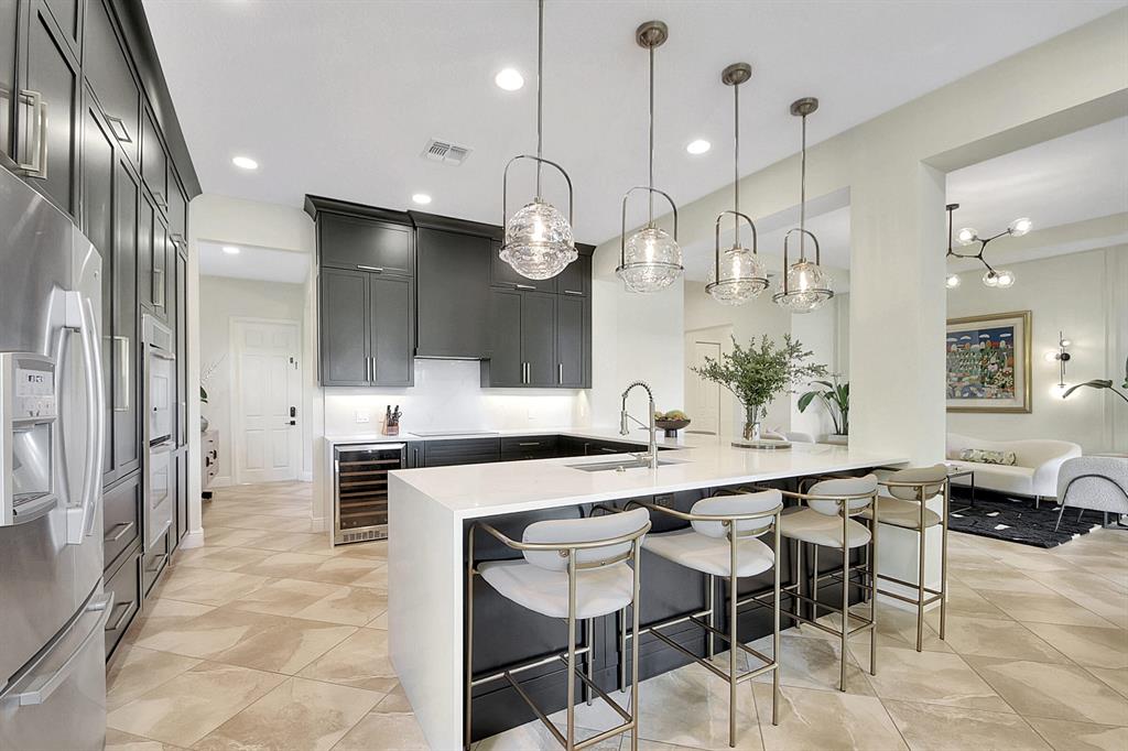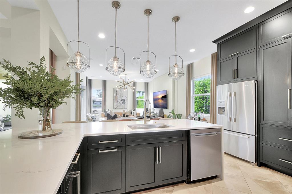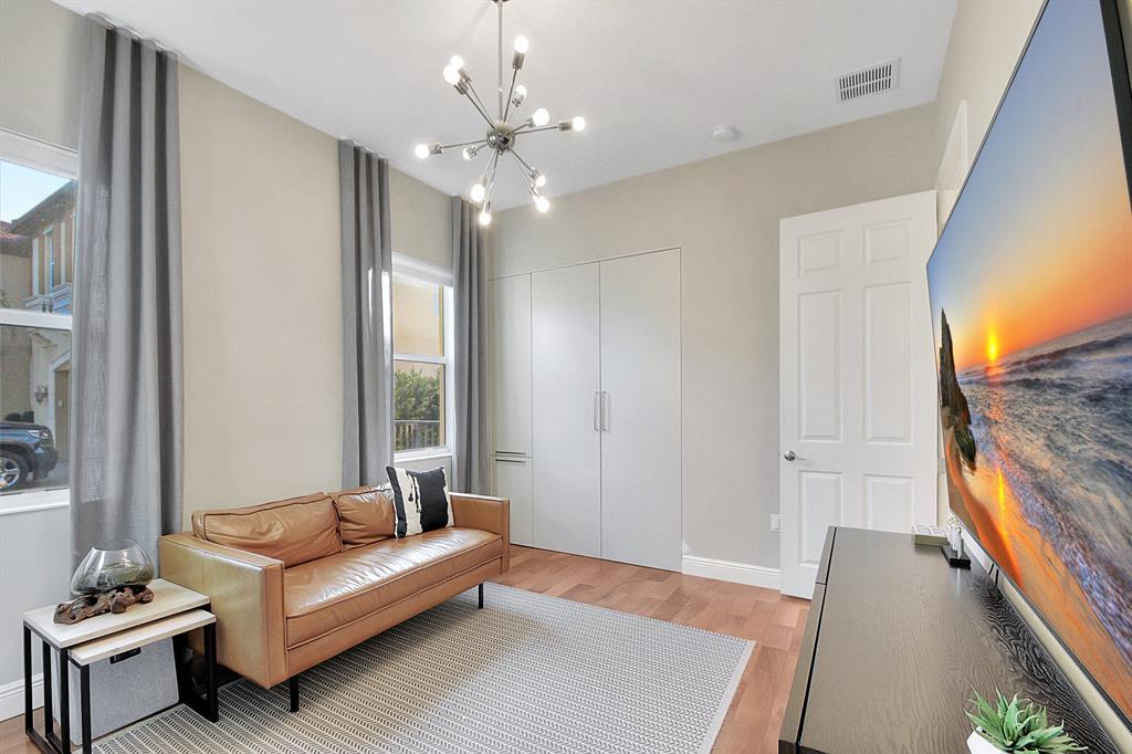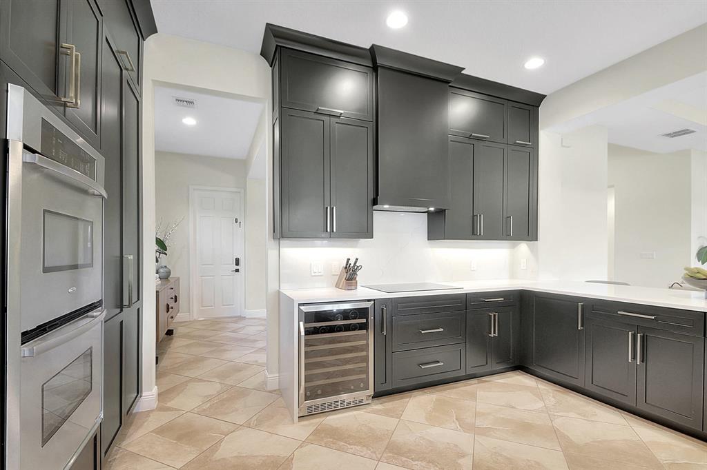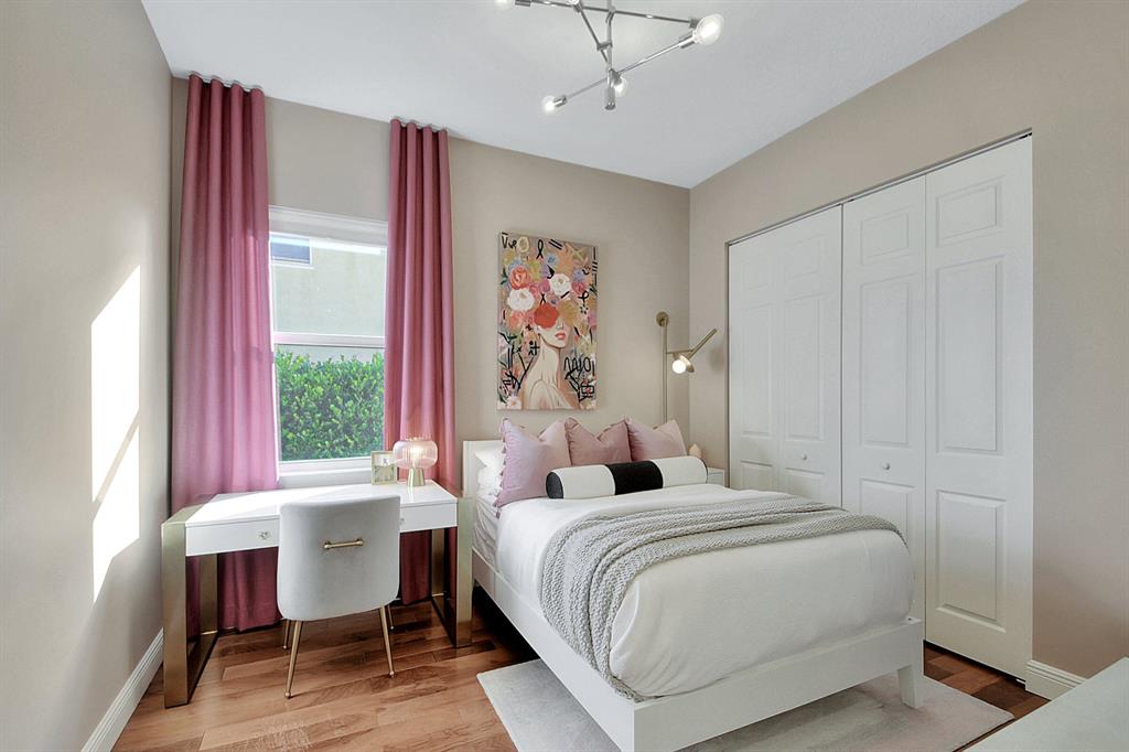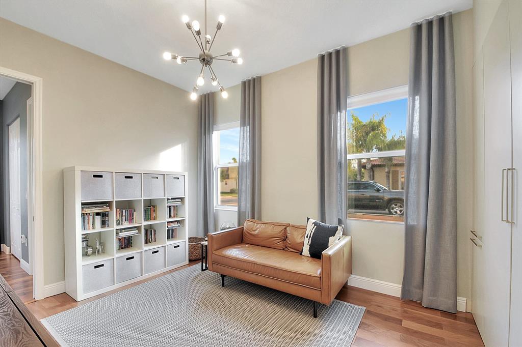 Decorator's masterpiece & elegance defines this home. 2 Master Suites! 4/4/2 + Den + 16x18 Covered Patio. Waterfront on 1/4 Acre Fenced LOT. Professionally designed & appointed. 12-10 Ft ceilings, custom Drapes, European cabinets w/pull-out drawers, luxury light fixtures(exclude dining rm chandelier), customized walk-in closets. Hide-away Home-Office in the DEN. 7 Chan blt-in KLIPSCH HTheater + THX & Marantz Receiver. Wrap-around Quartz counters & full backsplash, double oven, double wide extra deep refrigerator, Wine Fridge, Nest thermostat, built-in Pest control system thru-out, Wood Flrs in Bdrms, tile elsewhere. Tons of natural light. We are close to Downtown West Palm, PBIAirport, ALL shopping & restaurants, 2 major Hospitals, the Beach, 300 Acres park,Tpk & I95. Low HOA as well.