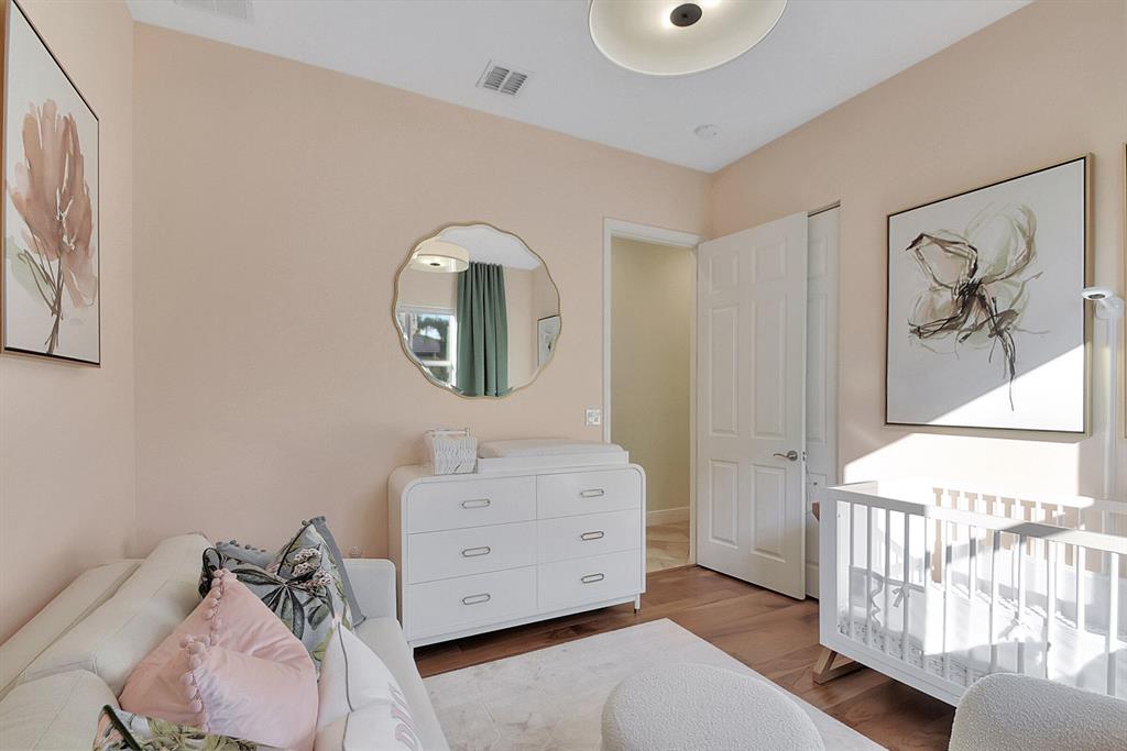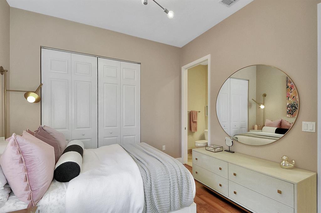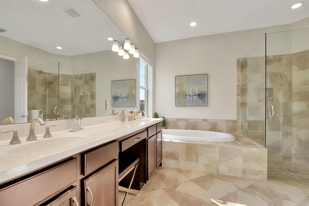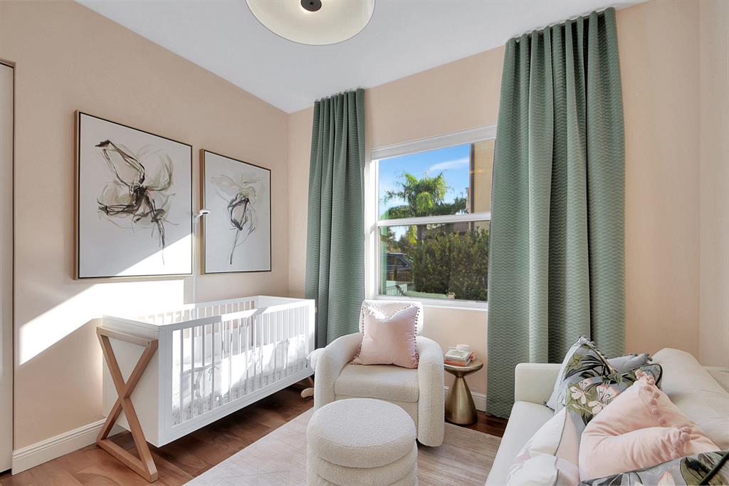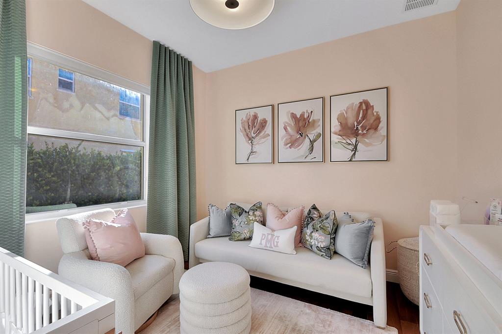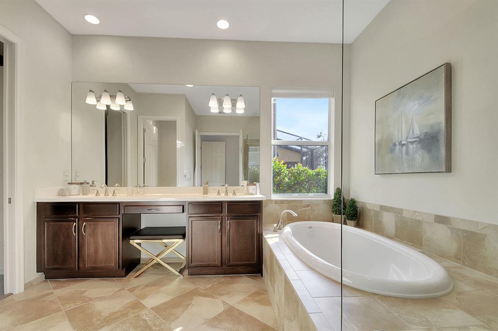 Decorator's masterpiece & elegance defines this home. 2 Master Suites! 4/4/2 + Den + 16x18 Covered Patio. Waterfront on 1/4 Acre Fenced LOT. Professionally designed & appointed. 12-10 Ft ceilings, custom Drapes, European cabinets w/pull-out drawers, luxury light fixtures(exclude dining rm chandelier), customized walk-in closets. Hide-away Home-Office in the DEN. 7 Chan blt-in KLIPSCH HTheater + THX & Marantz Receiver. Wrap-around Quartz counters & full backsplash, double oven, double wide extra deep refrigerator, Wine Fridge, Nest thermostat, built-in Pest control system thru-out, Wood Flrs in Bdrms, tile elsewhere. Tons of natural light. We are close to Downtown West Palm, PBIAirport, ALL shopping & restaurants, 2 major Hospitals, the Beach, 300 Acres park,Tpk & I95. Low HOA as well.