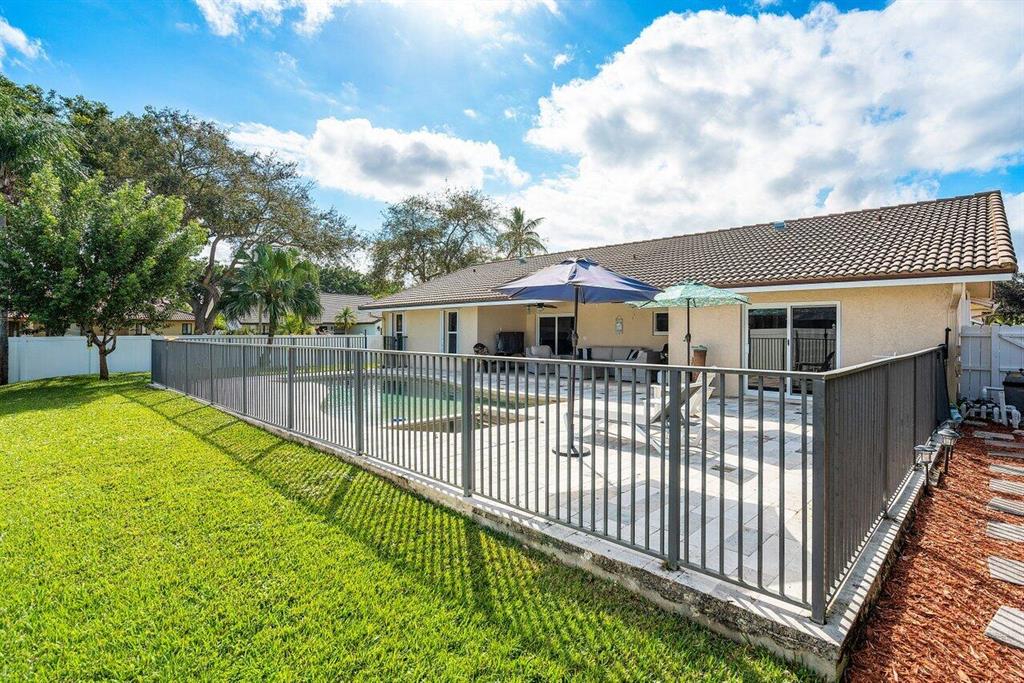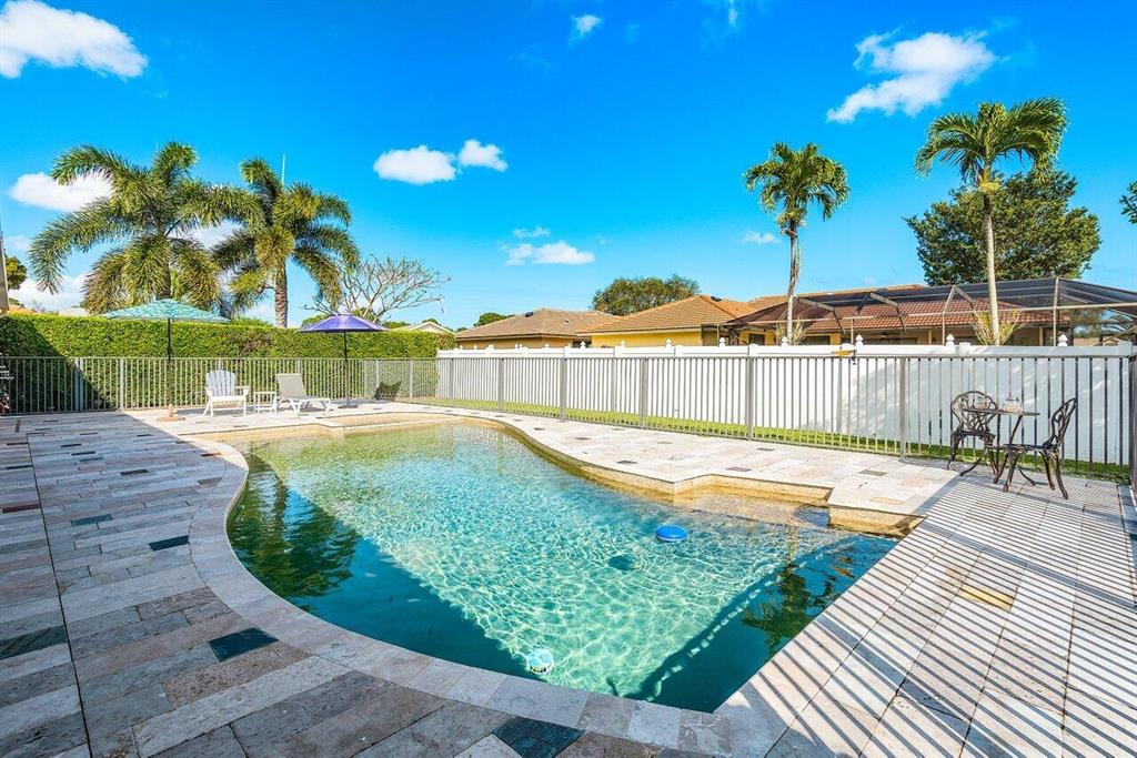 Don't miss this stunning and immaculate single family pool home in the heart of Boca Raton in The Pines of Boca Del Mar! Recent renovations are all throughout the home from the open gourmet kitchen to the beautifully remodeled modern master bath. Impact sliders lead out the travertine patio (patio furniture and TV will convey with the home). Freshly painted interior, laminate flooring, new window blinds, accordion shutters, hurricane impact front door and garage door. AC replaced within last 5 years, all newer appliances and new washer and dryer. The corner-lot backyard is spacious and ready for relaxation with a beautiful in ground pool and spa, grass area and surrounding white PVC fence. Zoned for great schools and close to lots of shopping and restaurants!