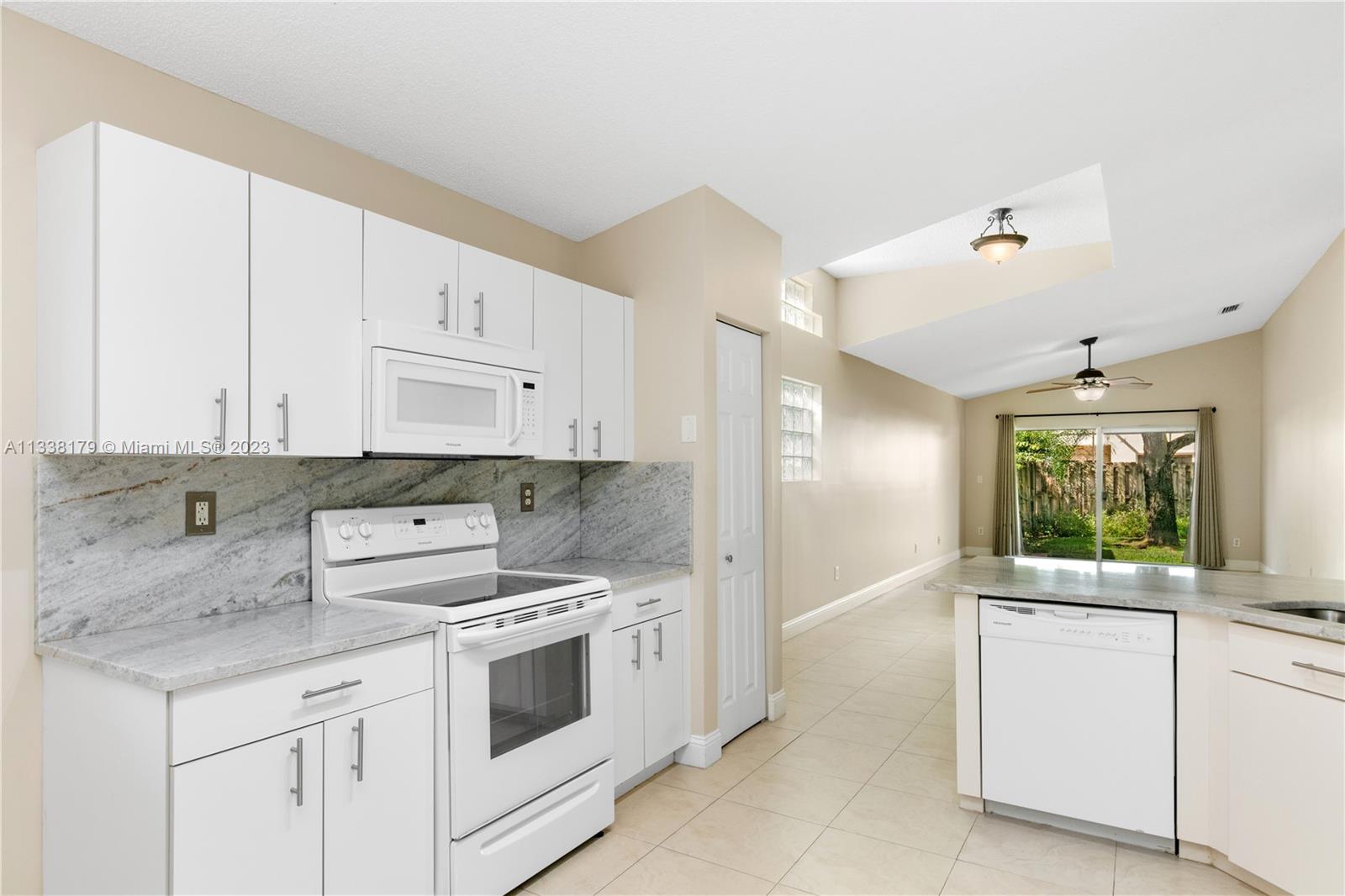 Lovely 3 bedroom, 2 bathroom, 2 car garage home located in coveted Pembroke Isles. This home boasts accordion shutters, a/c 1 year old, water heater 1.5 years old, neutral tile flooring and paint throughout, updated marble kitchen counters, updated master bathroom with frameless glass shower, freshly painted garage, hurricane rated garage door, 6 inch baseboards. Washer/dryer, kitchen disposal, garage motor, alarm panel all less than 2 years old. **ROOF IS ORIGINAL AND WAS JUST CERITIFED AS 7-8 YEARS OF LIFE LEFT.** 24-Hour Attended gatehouse, Fitness Center, Sauna, Tennis, Racquetball, Basketball, Soccer, and Volleyball,3 Swimming Pools W/Jacuzzi, Fishing Piers, Bike Trails, Picnic Areas & Playgrounds. HOA includes High-speed internet, Landscaping, Cable, internet and Alarm monitoring.