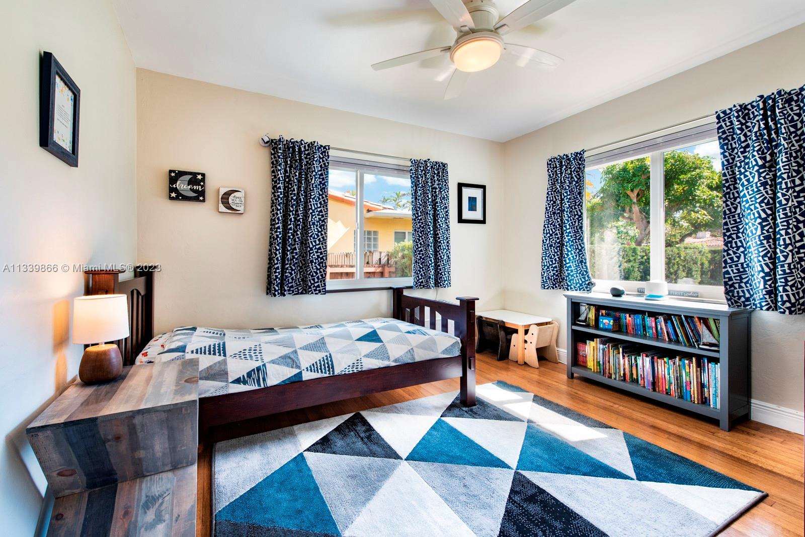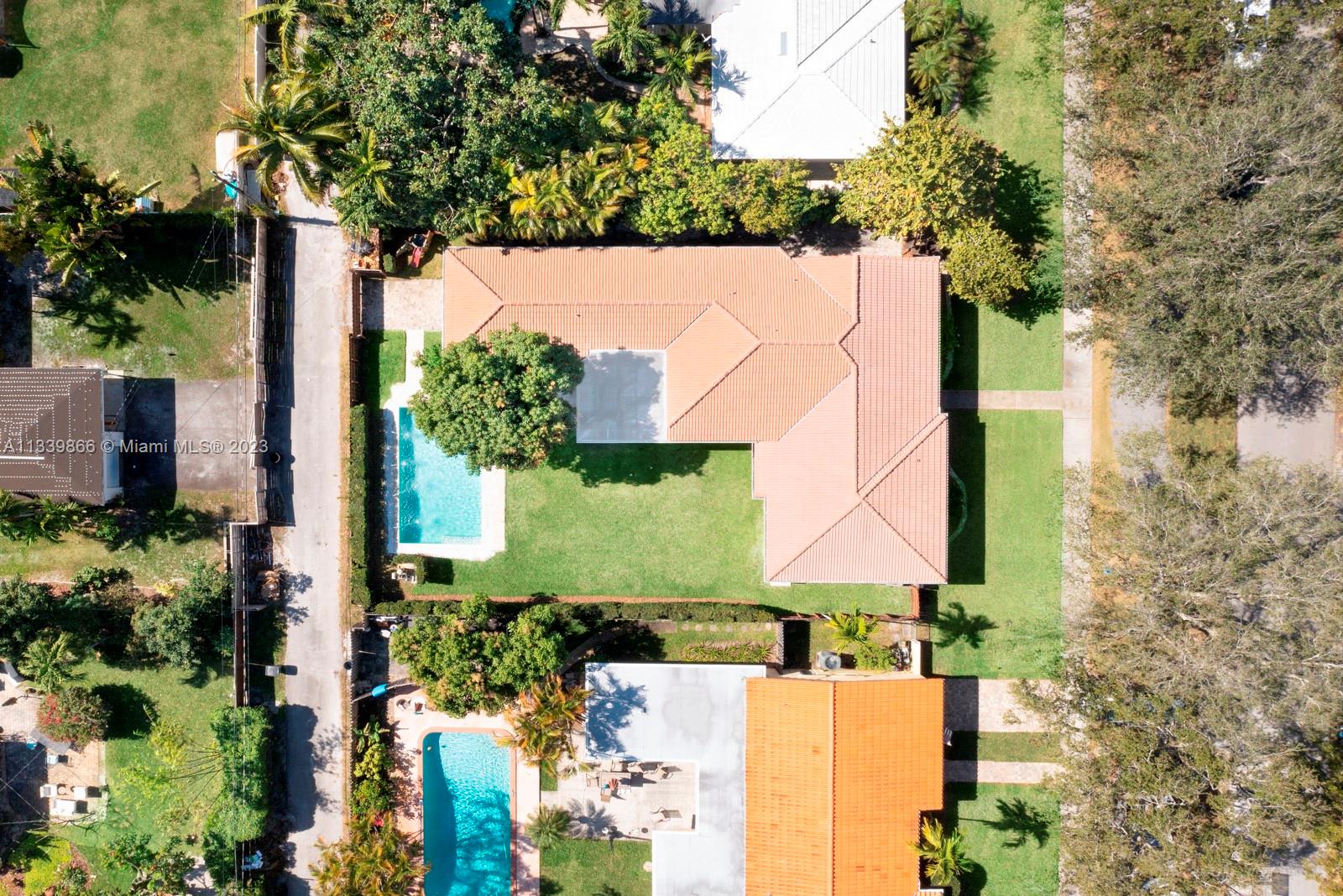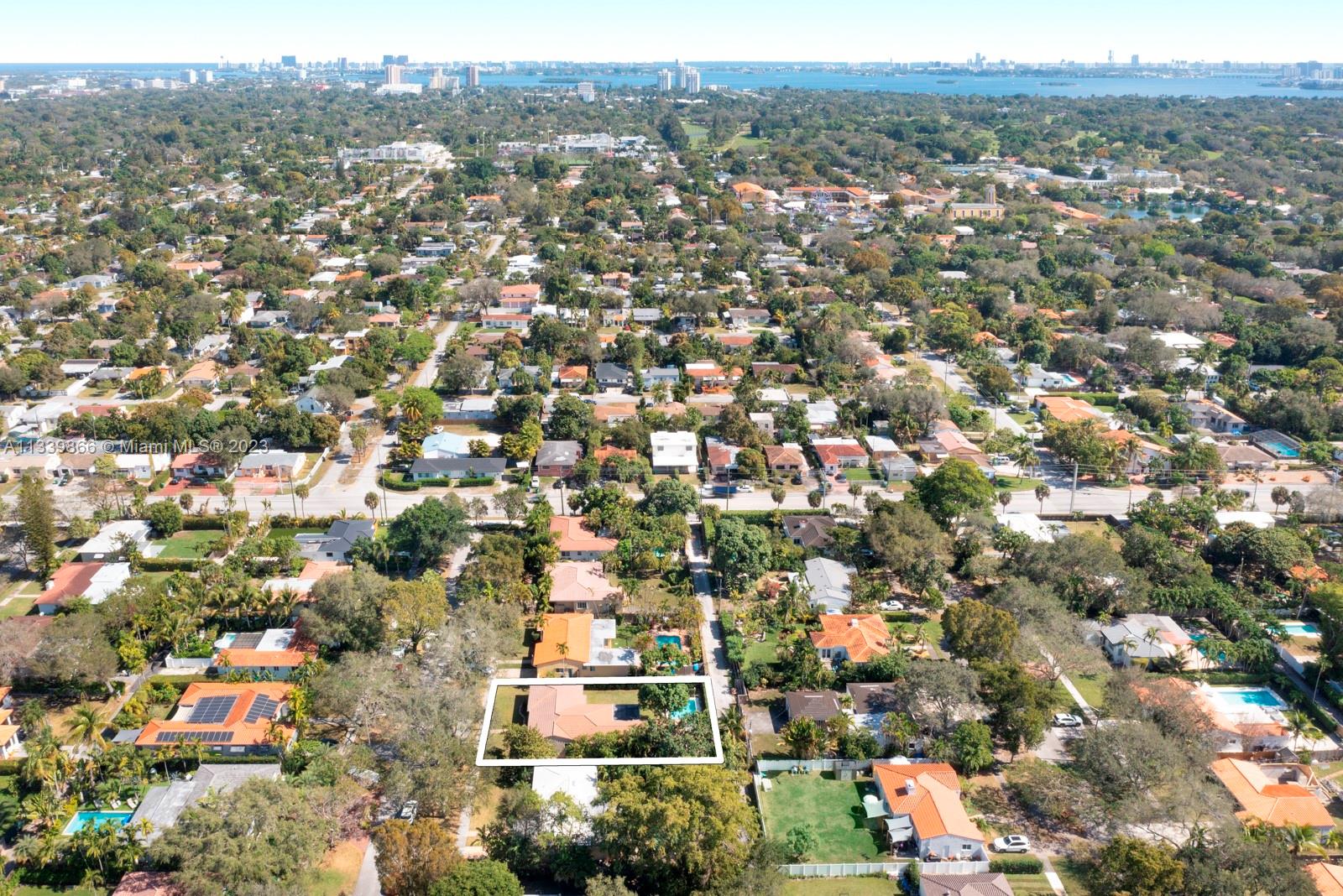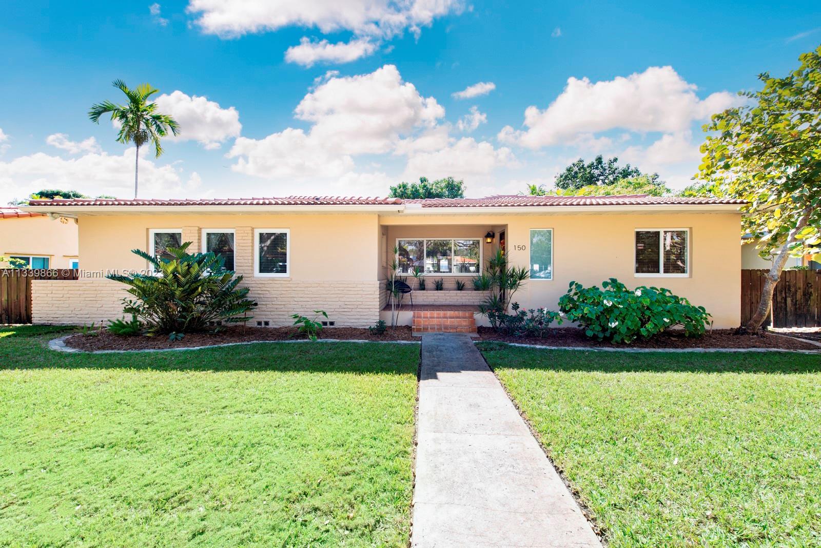 This turn key home is ready to be yours! Amazing entry captures that wow factor as you see through the home to the backyard oasis, complete with patio, sun drenched pool, and mature mango tree. In 2018 the sellers added a large family room, powder room, laundry room, and a new primary bedroom with double walk-in closets. French doors from both the primary and the family room lead to the pool/patio area. Spa-like primary bath with double sinks & oversized shower. Hardwood and porcelain tile floors throughout. This home offers two ensuite bedrooms for ultimate living flexibility. The 1½ car garage includes work bench and built in cabinets. All impact windows with custom window treatments, electric fireplace, tankless water heater, and two zone a/c all in 2018. There is more!!