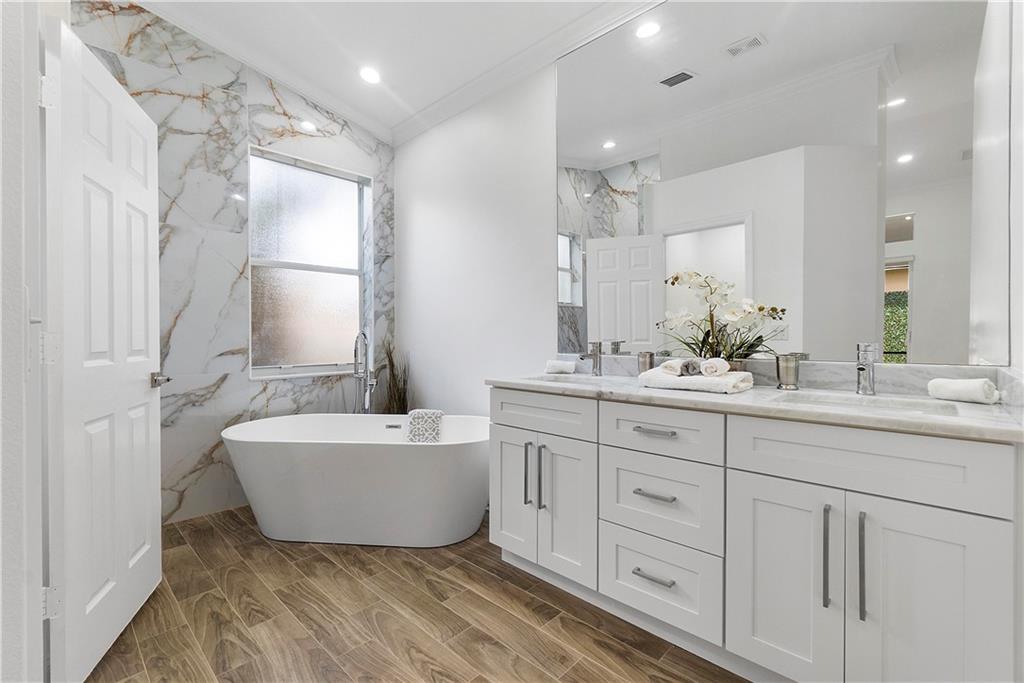 SELLER WILL PAY TO BUY DOWN YOUR INT RATE! Stunning 3BR/2BA/2CG SFH in highly sought-after Villa Sorrento @ Heron Bay! Phenomenal Remodel, WIDE OPEN flr plan, gorgeous design choices. Light & Bright, vaulted/vol ceilings, crown molding, freshly painted, tile throughout, & lrg laundry rm. New gourmet kitchen w/ quartz counters, waterfall, SS appl, hood w/marble backsplash & views of your private backyard. Courtyard entry, split BR plan, large primary suite w/ exquisite master bath incl modern soaking tub, dual sinks, walk-in shower, wood-look tile floors & HUGE walk-in closet. Tranquil & private fully enclosed yard w/lrg screened patio & plenty of outdoor space for a pool or kids to play. Home Warranty inc. roof, appl., electrical, plumbing & more! Resort-style amenities, 24 hr. Gated Comm.